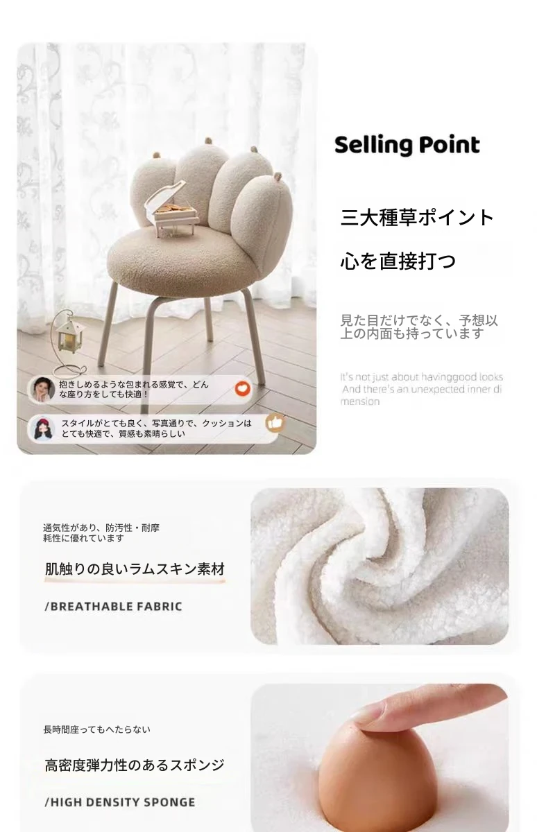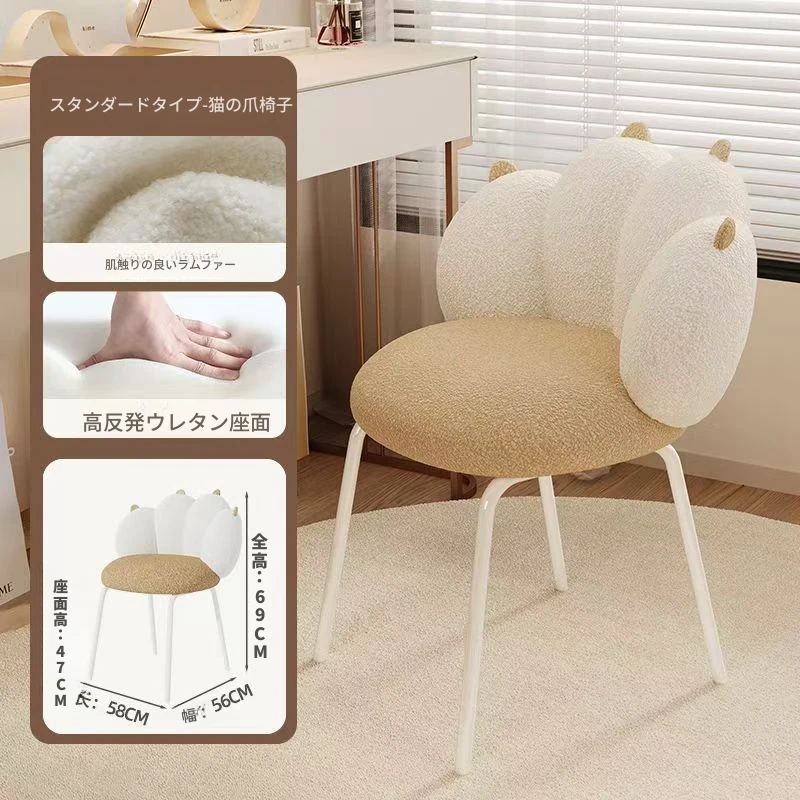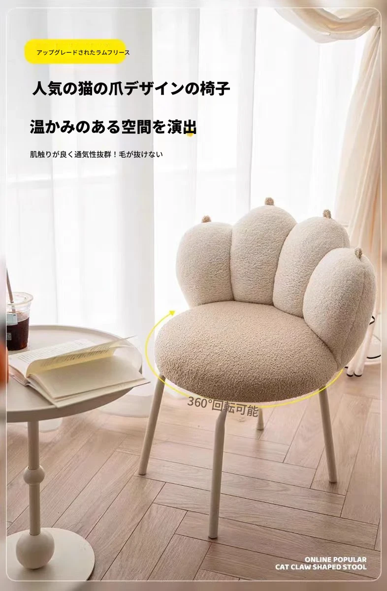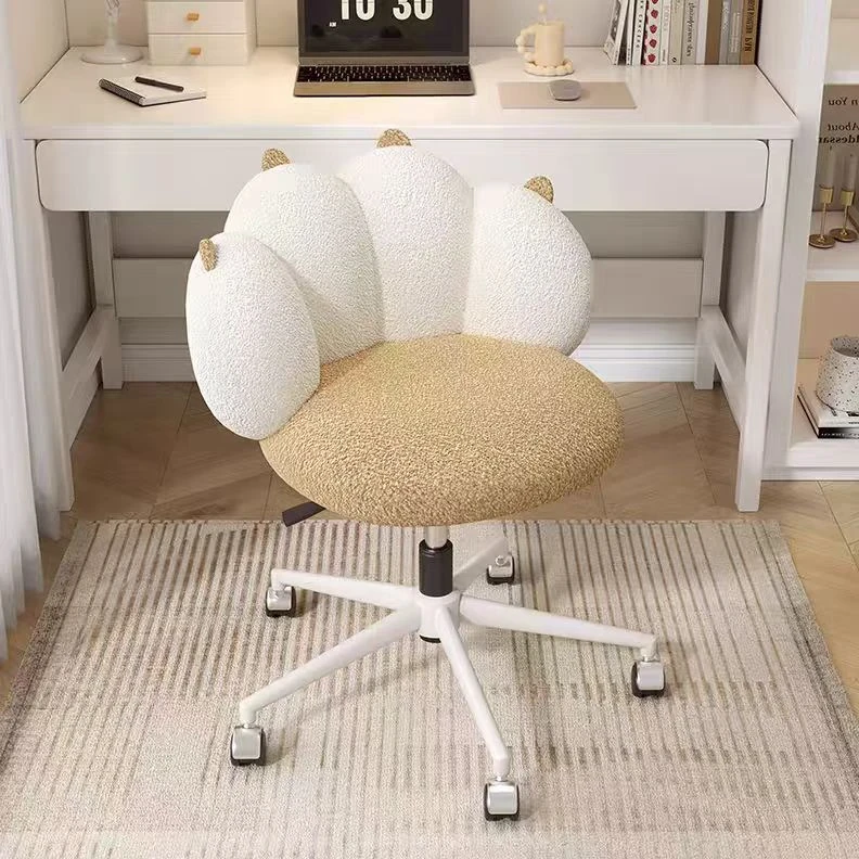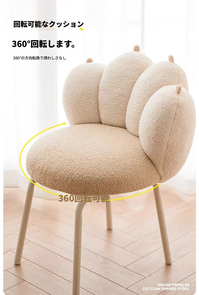 高級感あふれるキャメルファーのカジュアルチェア|小さな部屋に最適なライトラグジュアリー|回転&高さ調節可能なドレッサーチェア|クリーミーな風合いで、快適な書斎や寝室にぴったり!