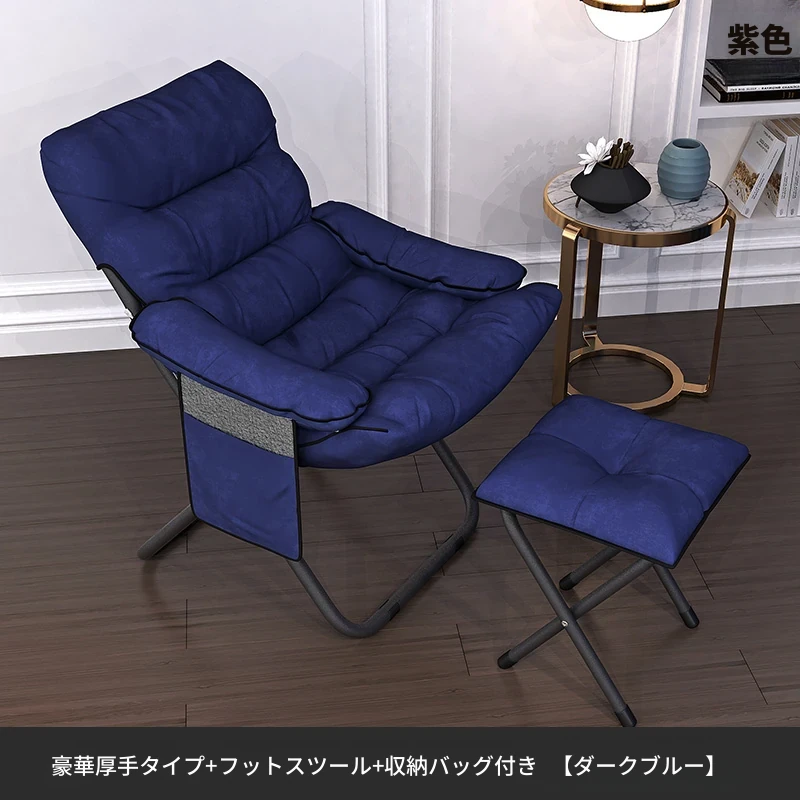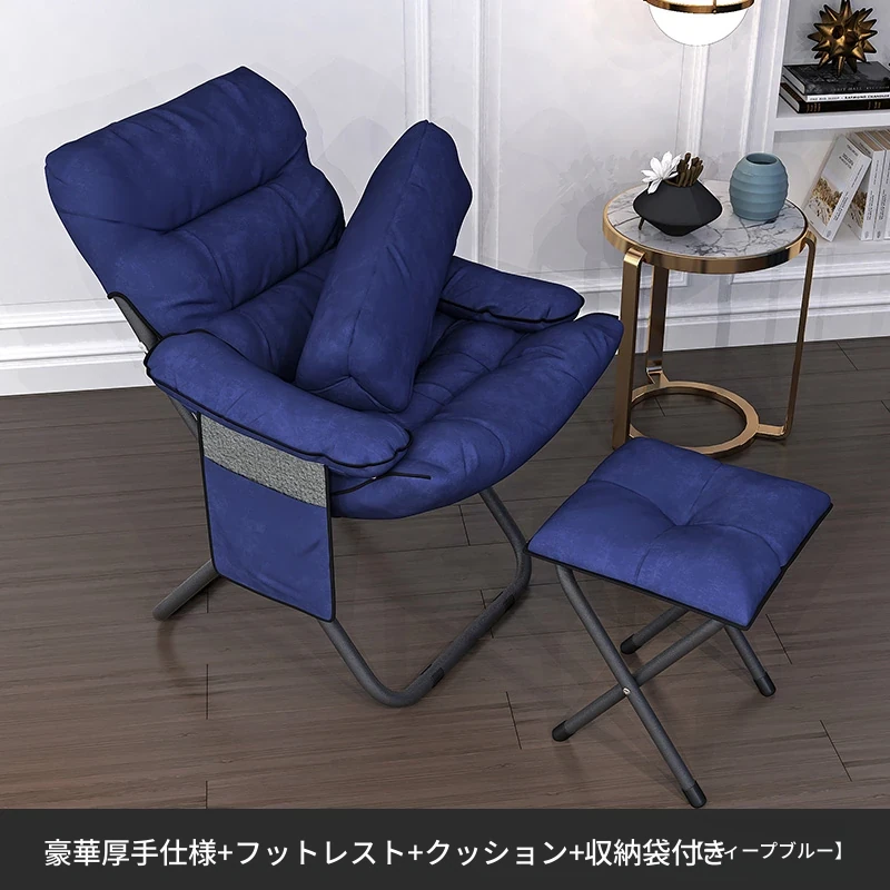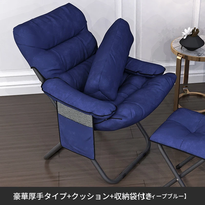 豪華厚手タイプ+足置き+クッション-深い青色(収納袋付き)