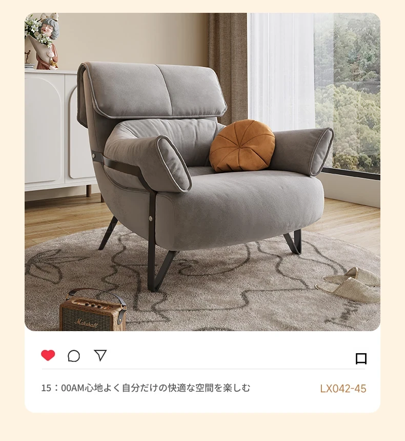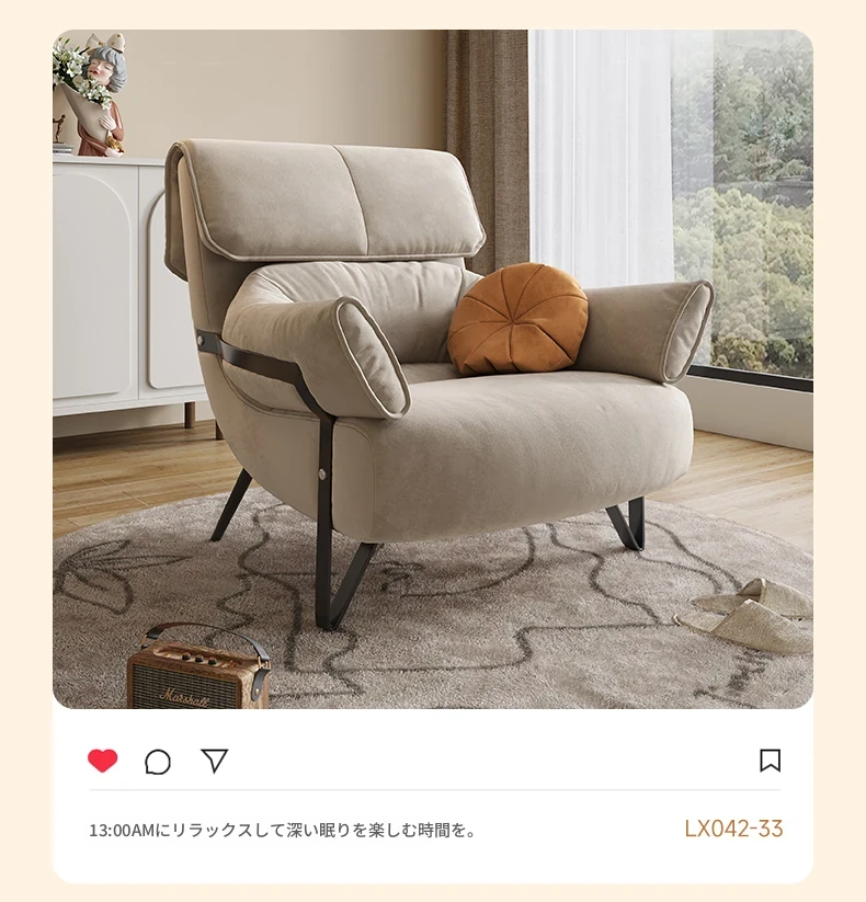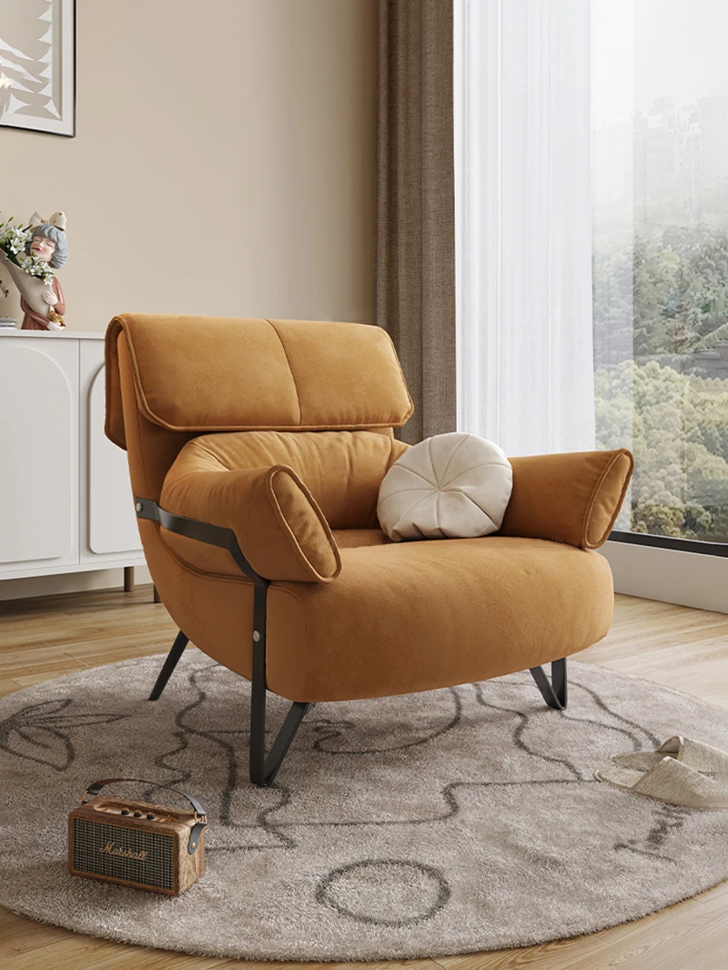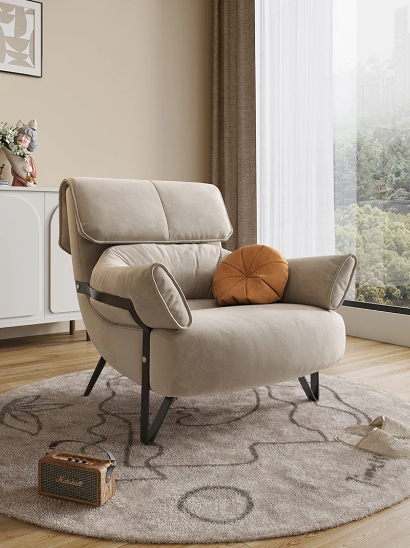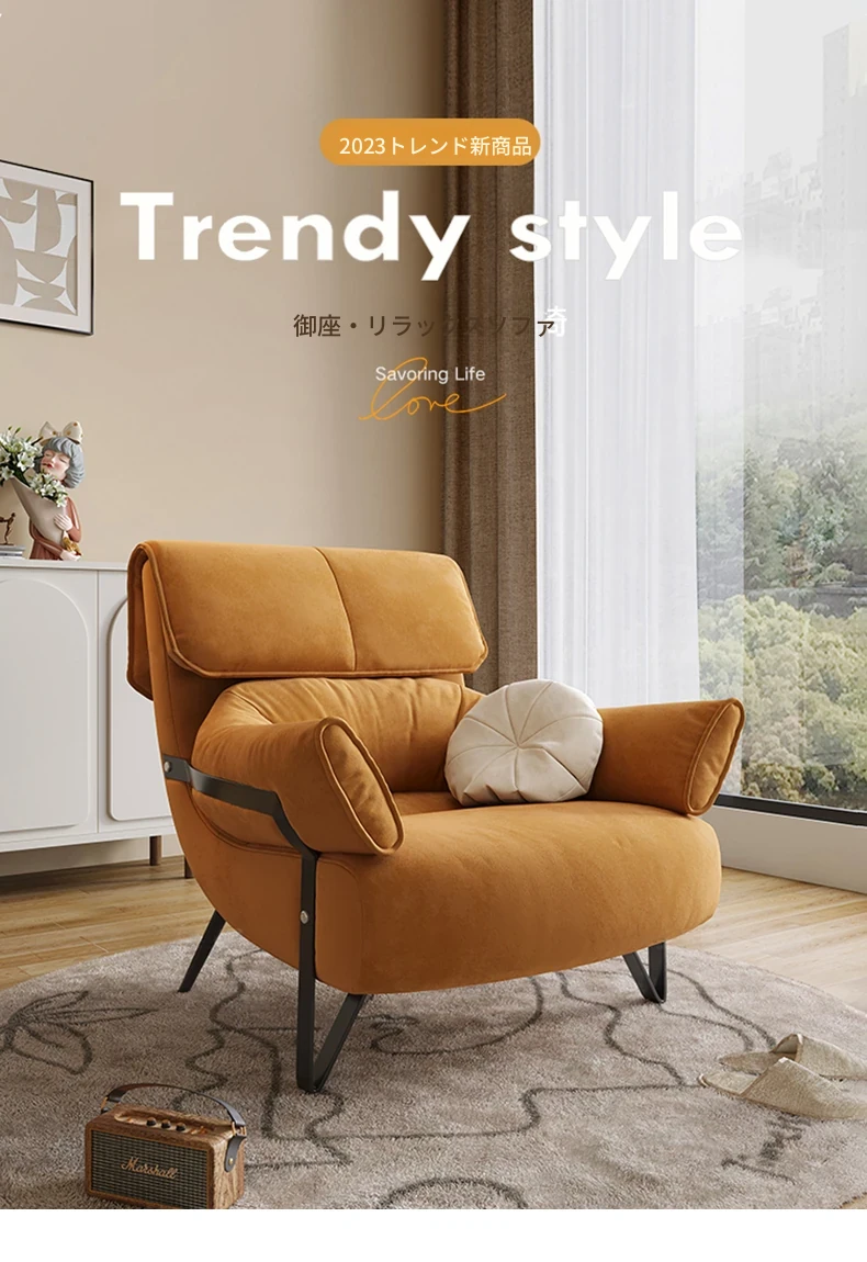 デザイナーのリビング用モダン一人掛けソファ、コンパクトなイタリアンラグジュアリー、バルコニーや主寝室に最適なリラックスチェア。おしゃれで快適な空間を演出!