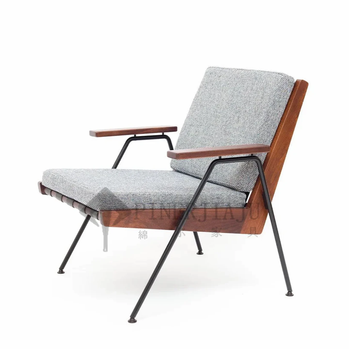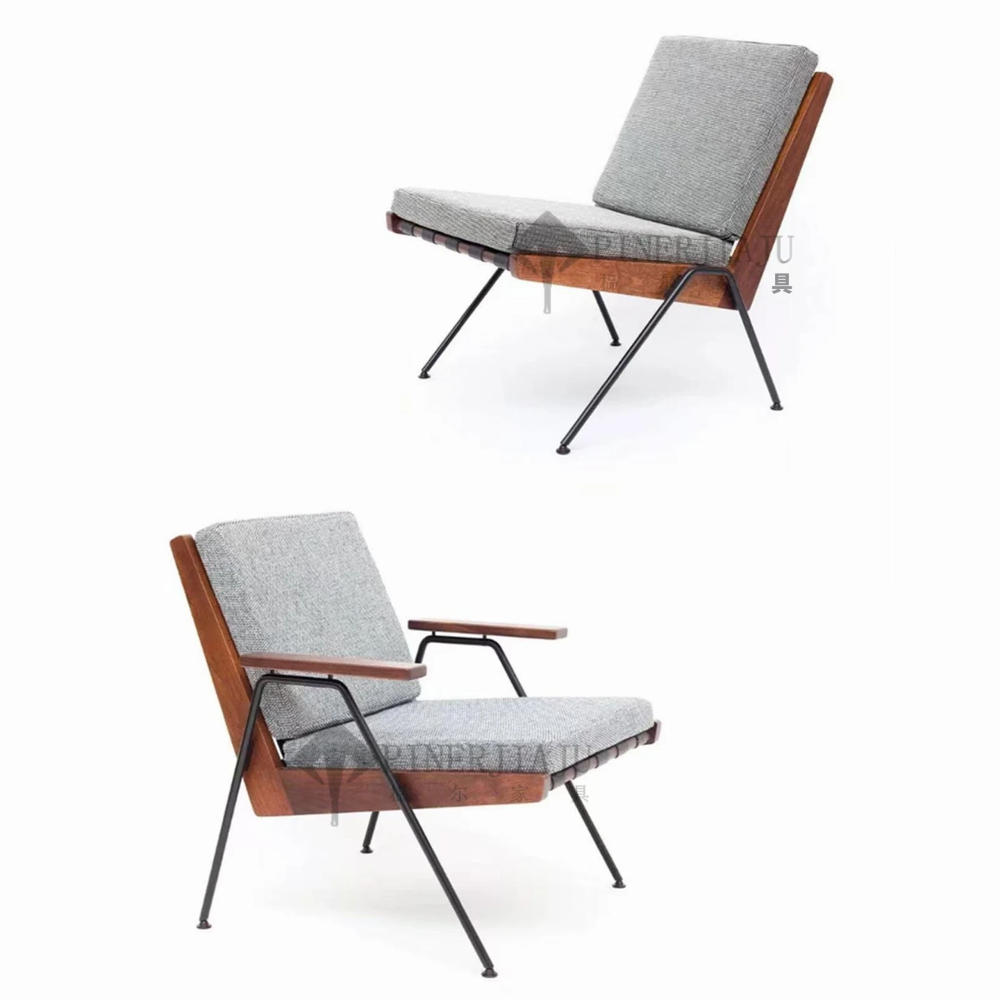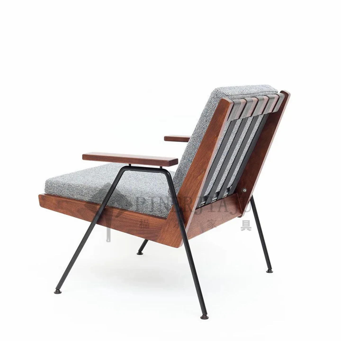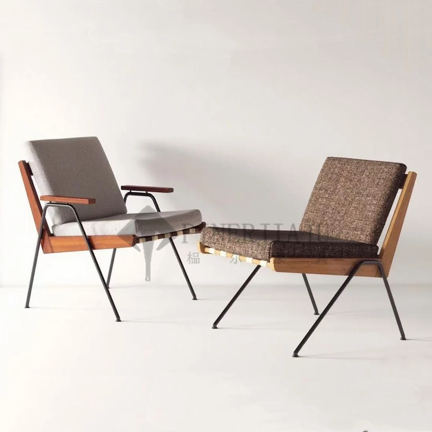 デザイナーの創造力が光る!中古アートアームチェア - メタル&ウッドの高級ソファチェア、ホテルやクラブのラウンジ、販売オフィスの受付にも最適!おしゃれで洗練された空間を演出します。