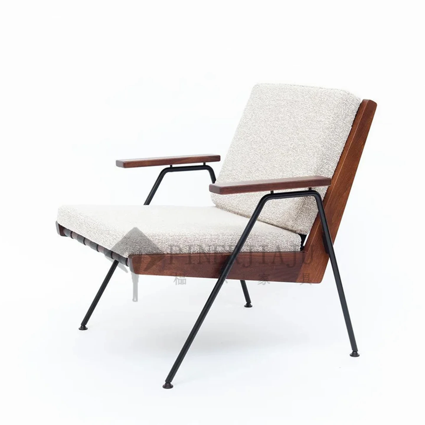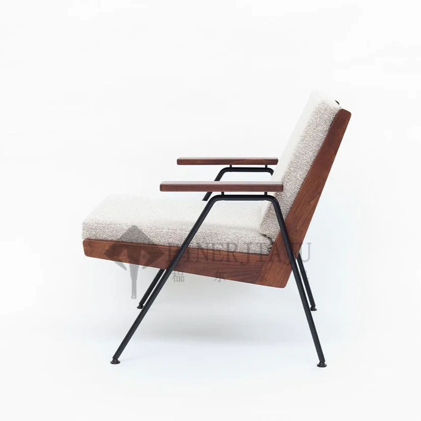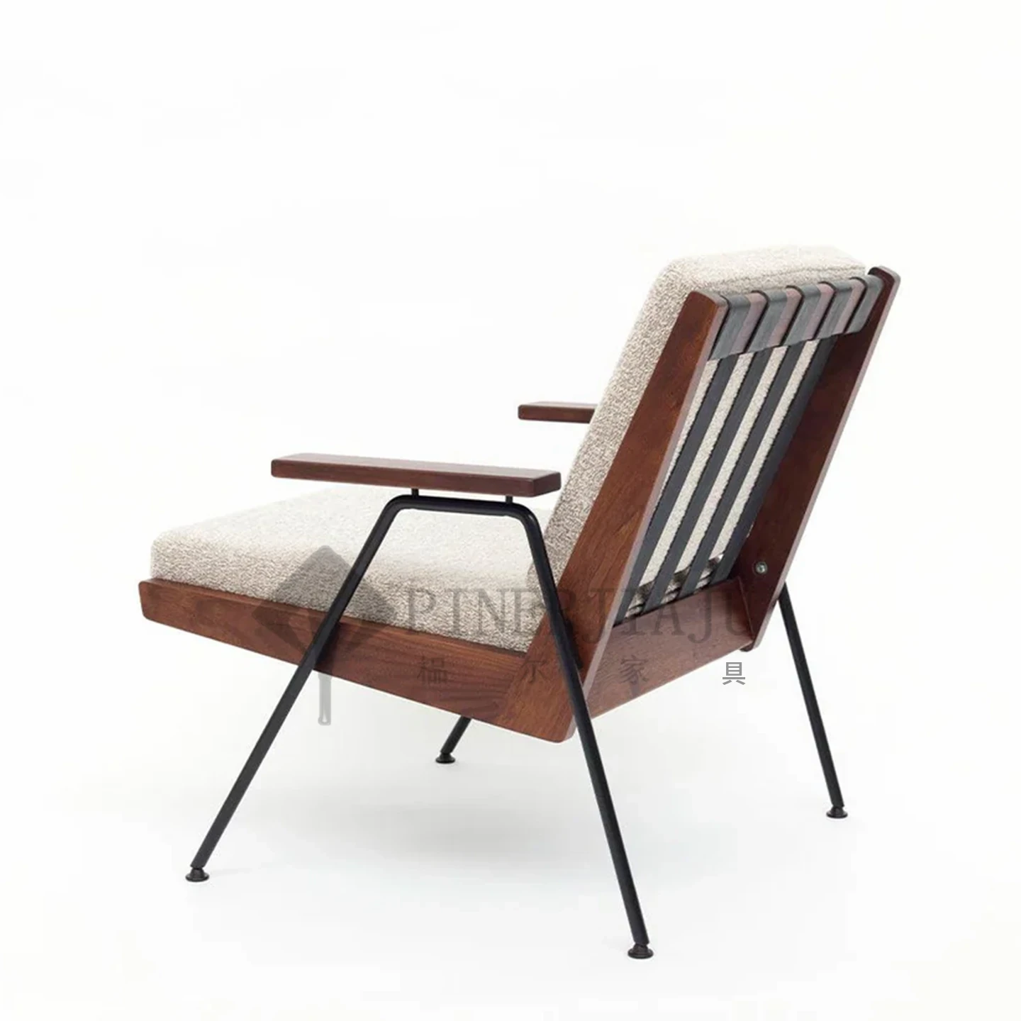 デザイナーの創造力が光る!中古アートアームチェア - メタル&ウッドの高級ソファチェア、ホテルやクラブのラウンジ、販売オフィスの受付にも最適!おしゃれで洗練された空間を演出します。