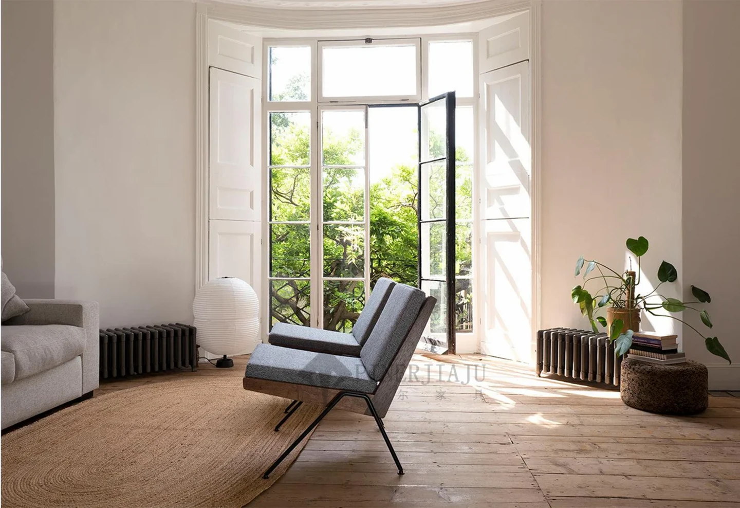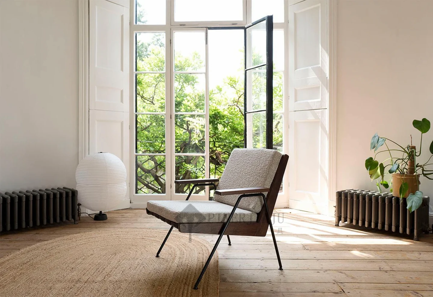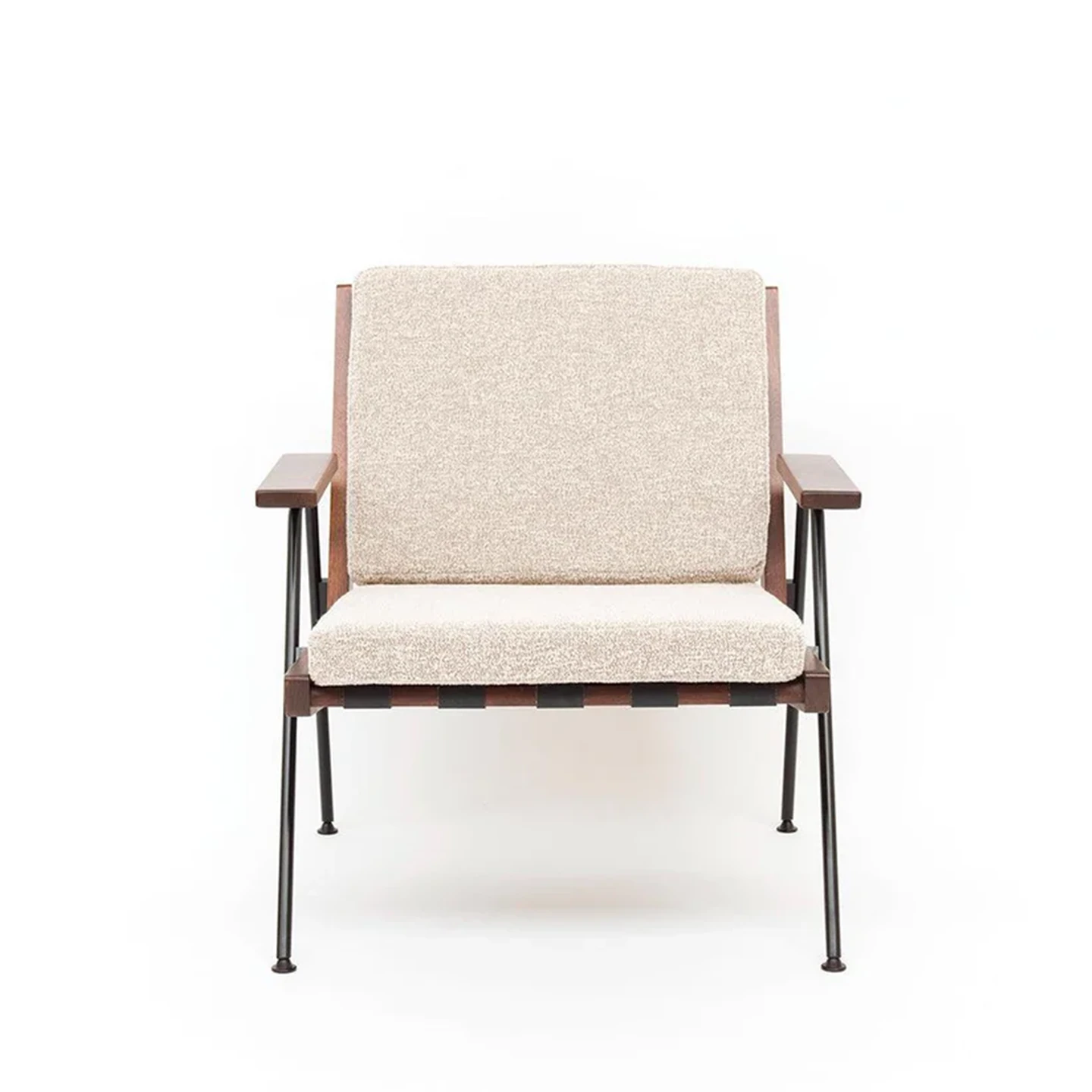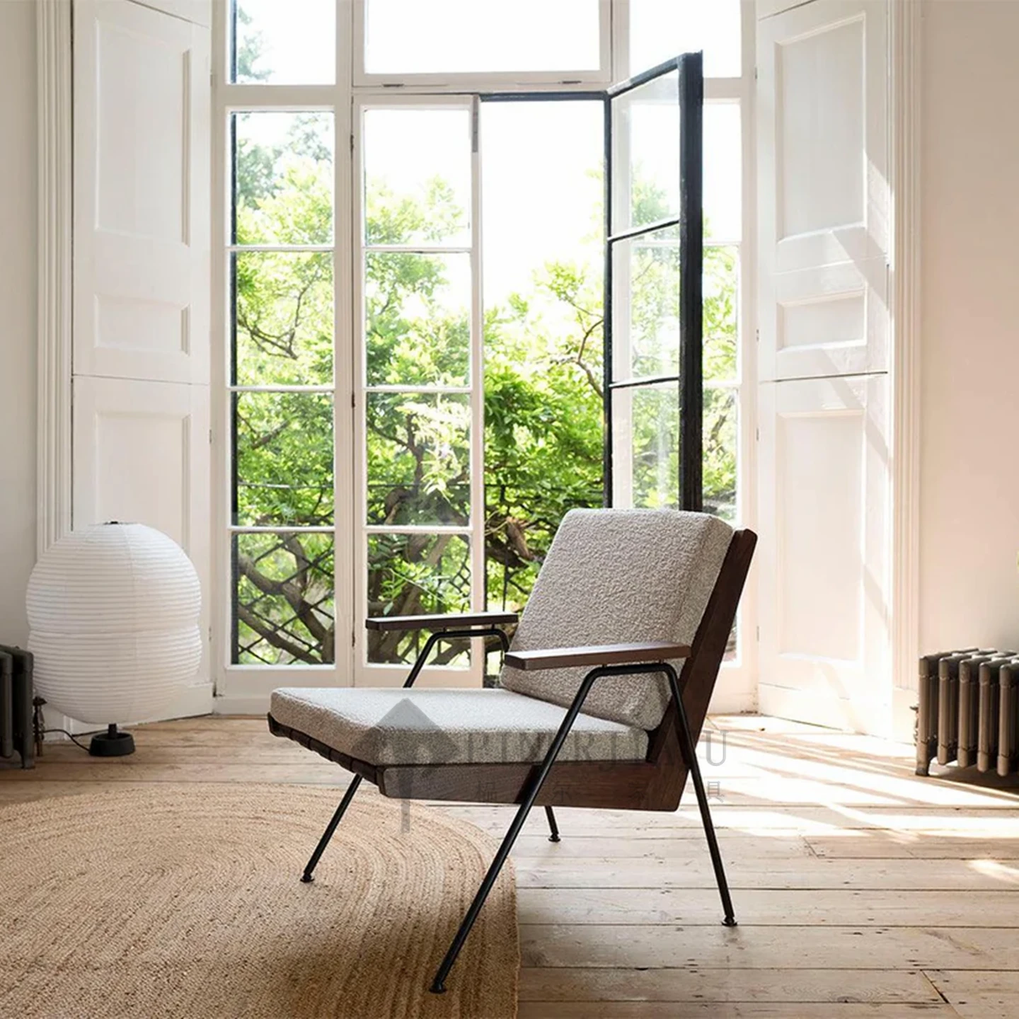 デザイナーの創造力が光る!中古アートアームチェア - メタル&ウッドの高級ソファチェア、ホテルやクラブのラウンジ、販売オフィスの受付にも最適!おしゃれで洗練された空間を演出します。