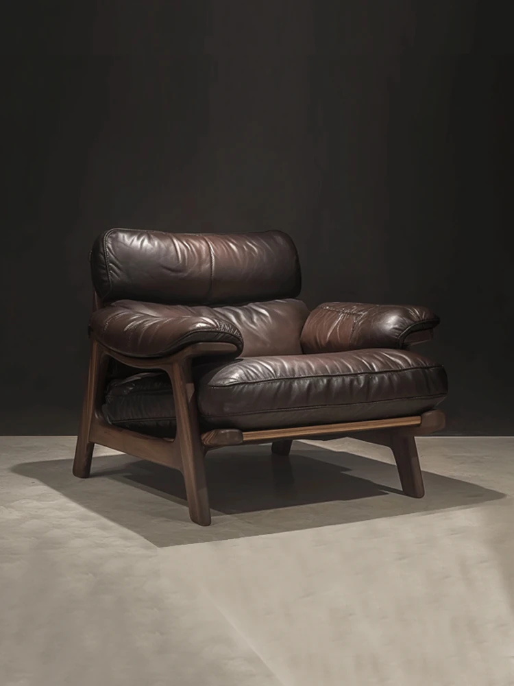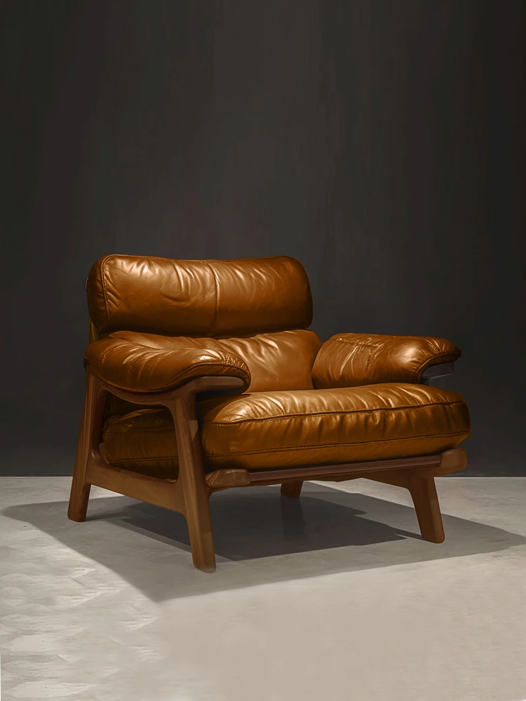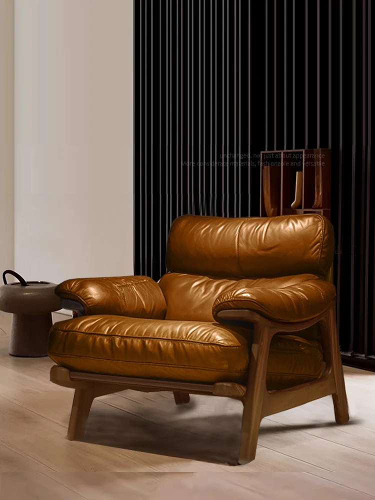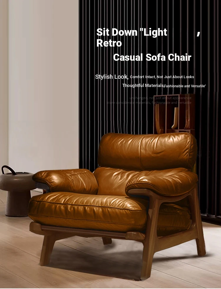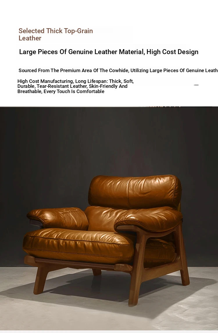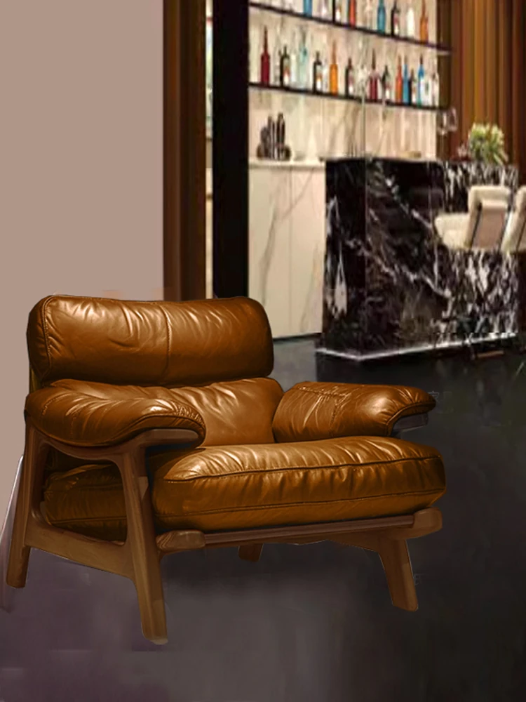 Designer Vintage Style Chair - Top Grain Genuine Leather Bauhaus Single Sofa for Living Room and Balcony, Perfect for Relaxation and Leisure