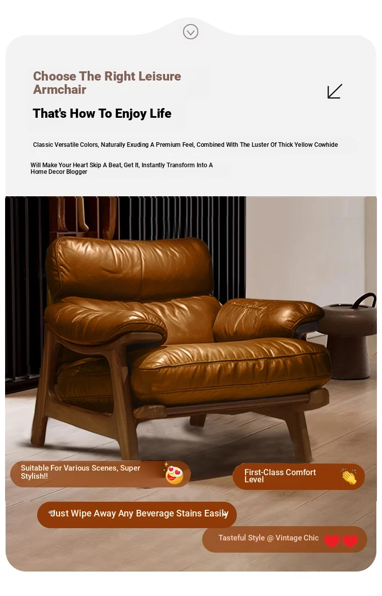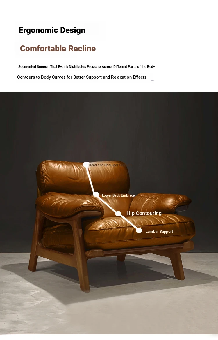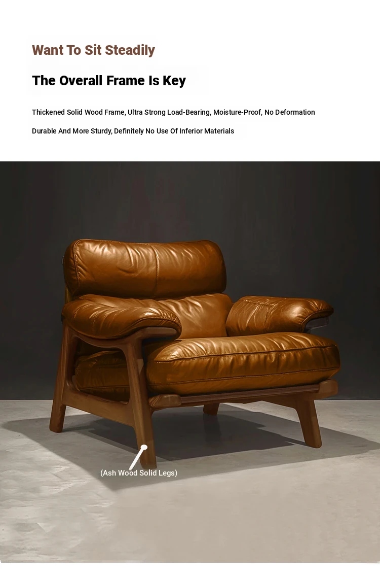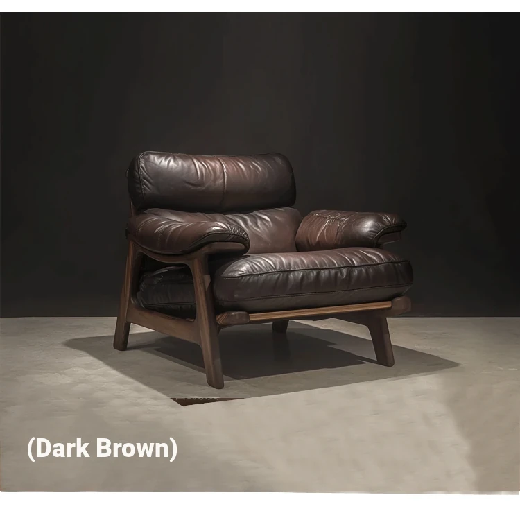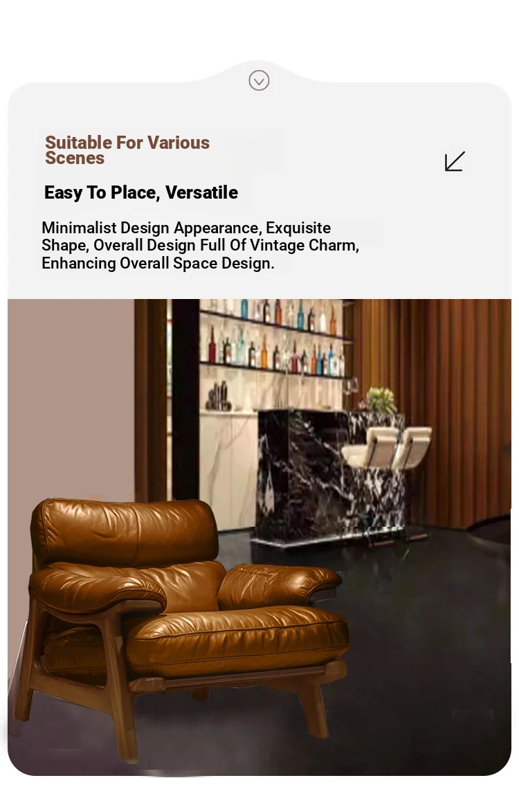 Designer Vintage Style Chair - Top Grain Genuine Leather Bauhaus Single Sofa for Living Room and Balcony, Perfect for Relaxation and Leisure
