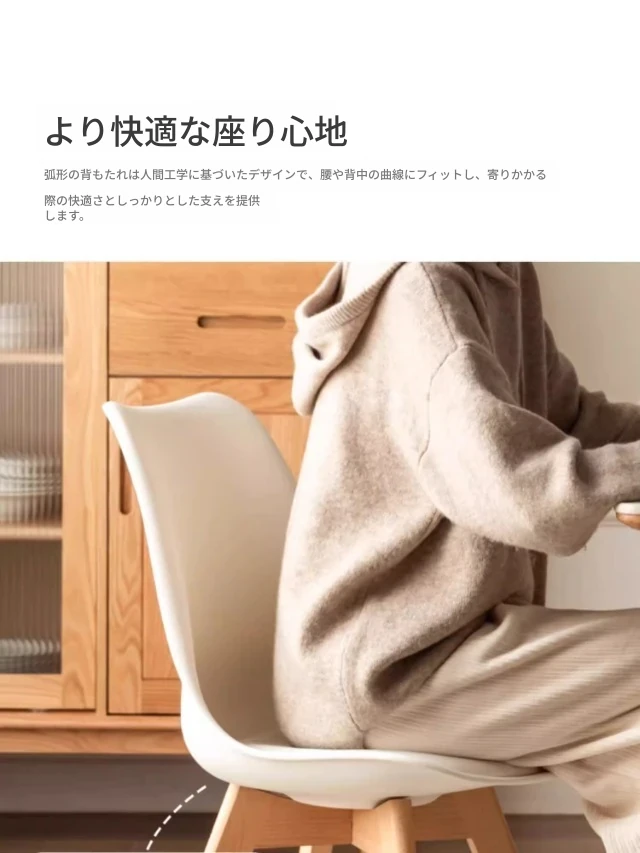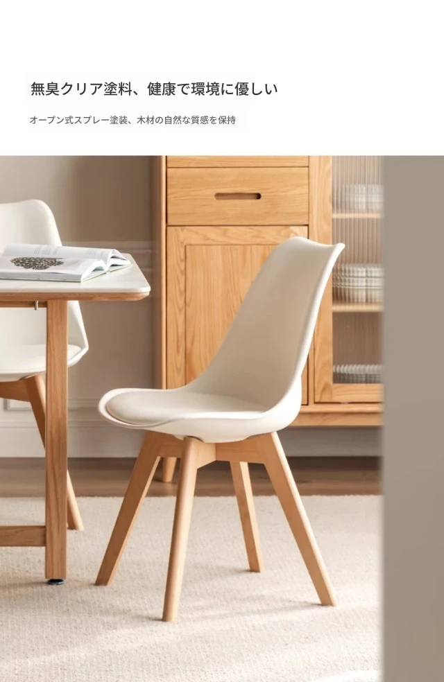 盛世ジャパン風北欧スタイルの無垢材ダイニングチェア - シンプルでスタイリッシュな背もたれ付き、化粧台や食事に最適!リラックスできる居心地の良いデザインで、あなたの生活空間を引き立てます。