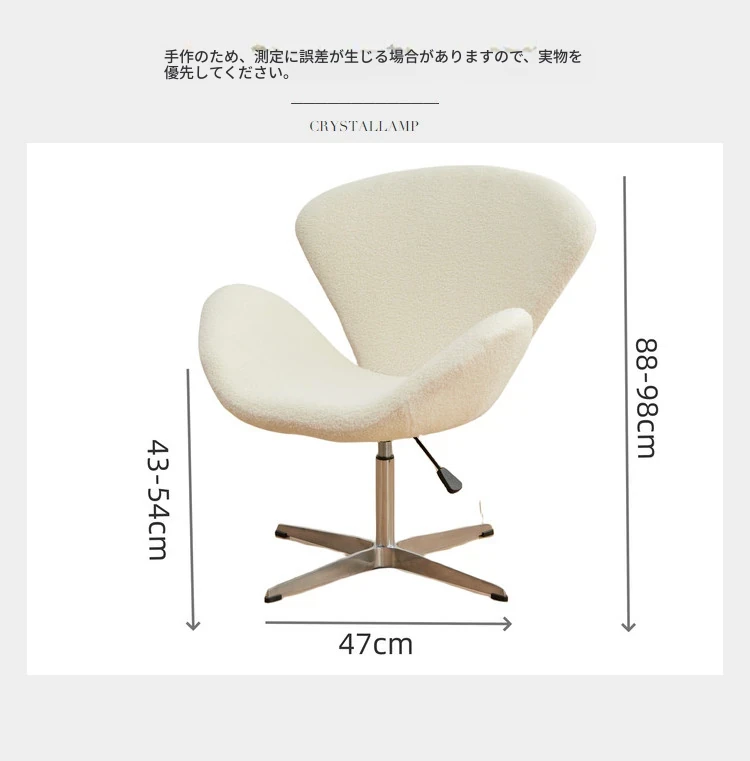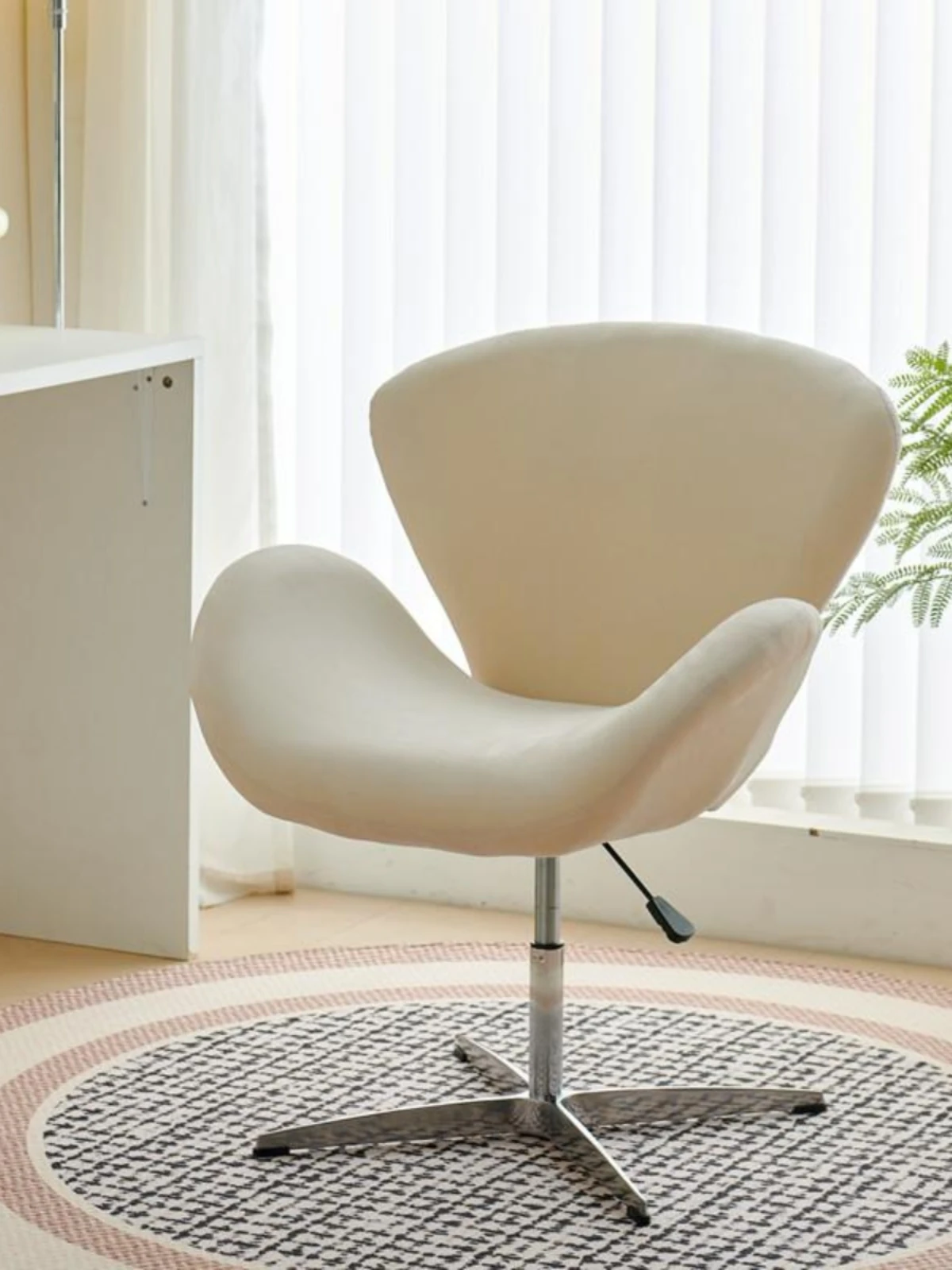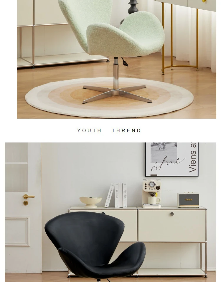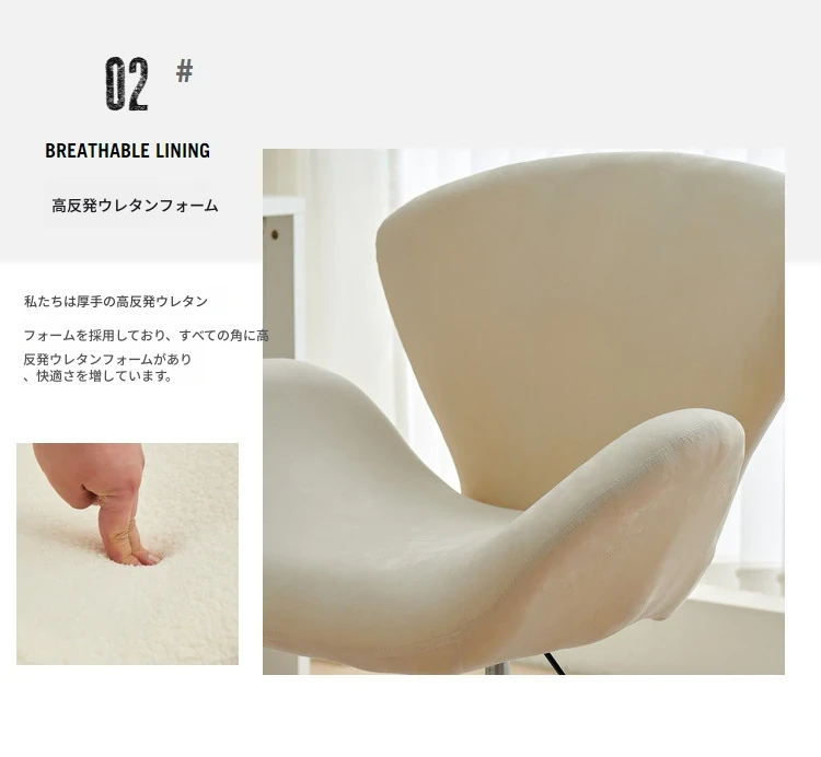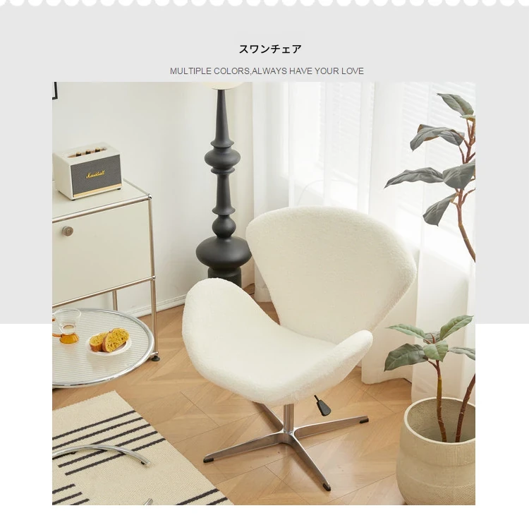 スワンチェア ソファチェア 高さ調節可能 回転式 一人用 リラックスチェア クリーム風デザイン 軽やかさと贅沢さを兼ね備えた創造的なドレッサーチェア メイクアップチェア