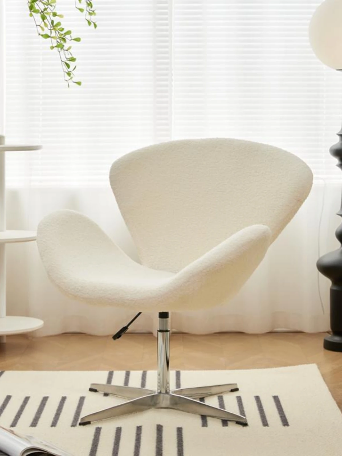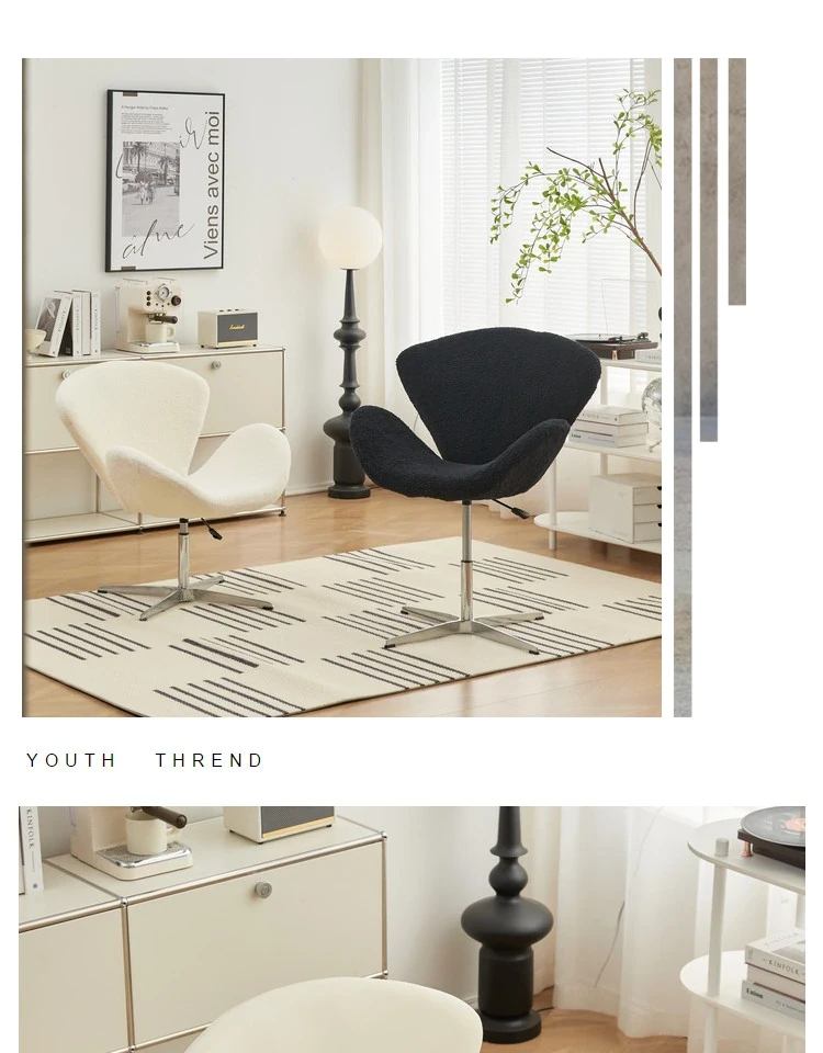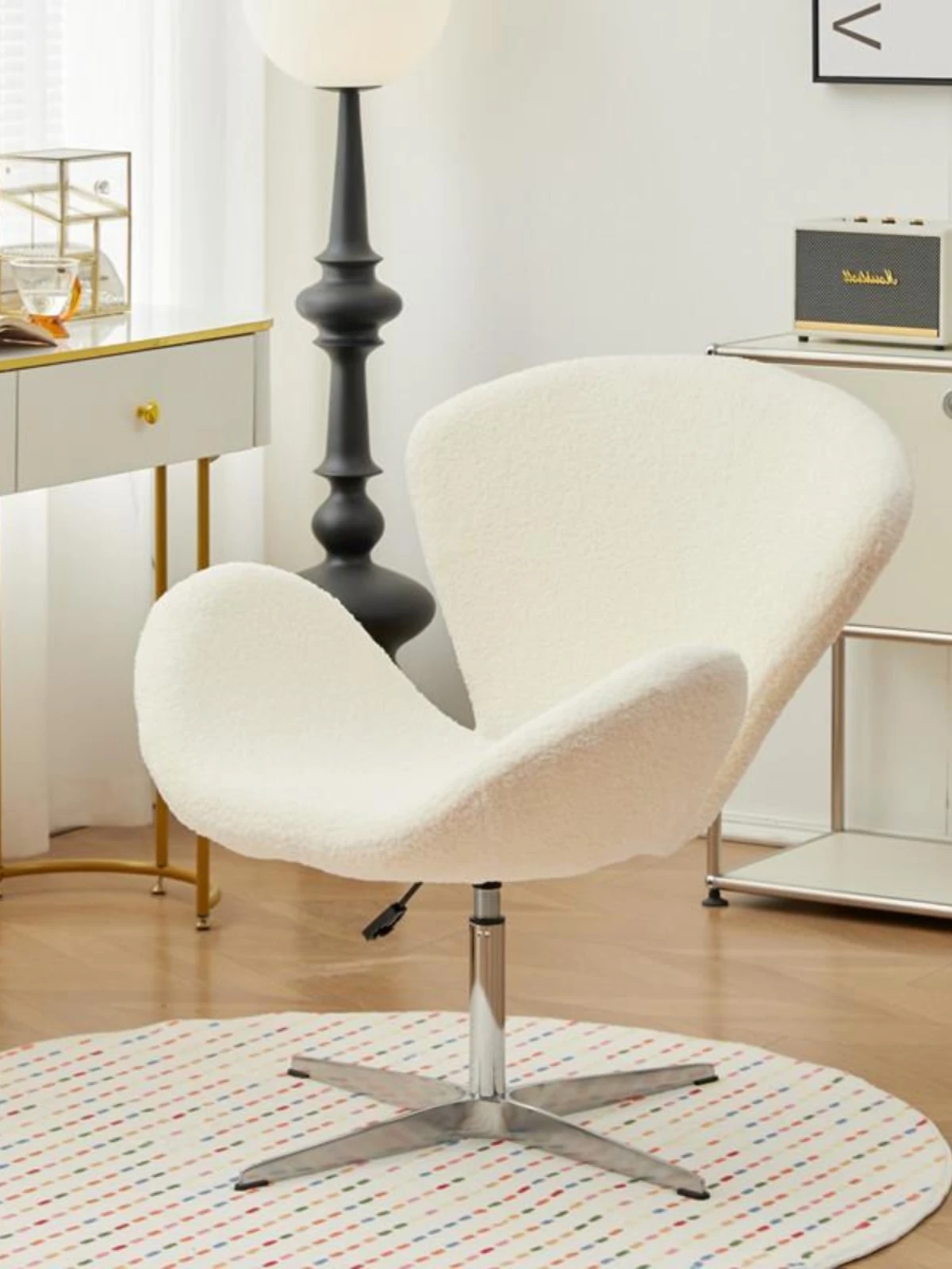 スワンチェア ソファチェア 高さ調節可能 回転式 一人用 リラックスチェア クリーム風デザイン 軽やかさと贅沢さを兼ね備えた創造的なドレッサーチェア メイクアップチェア