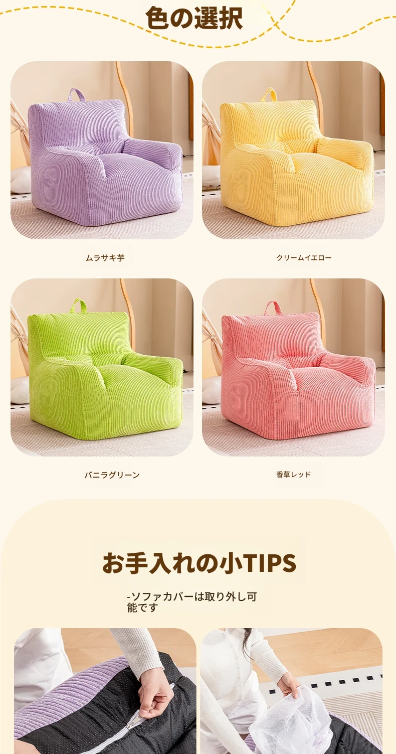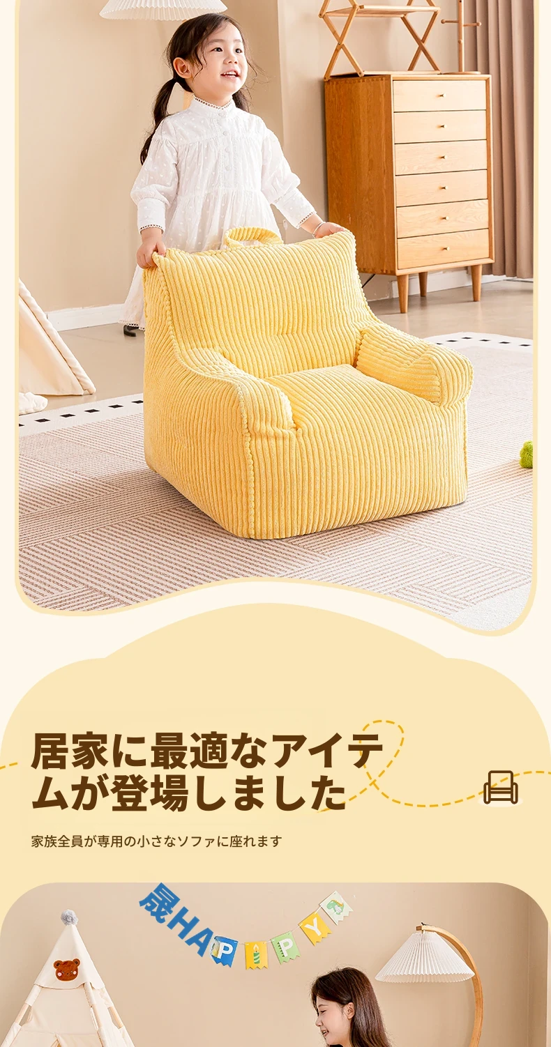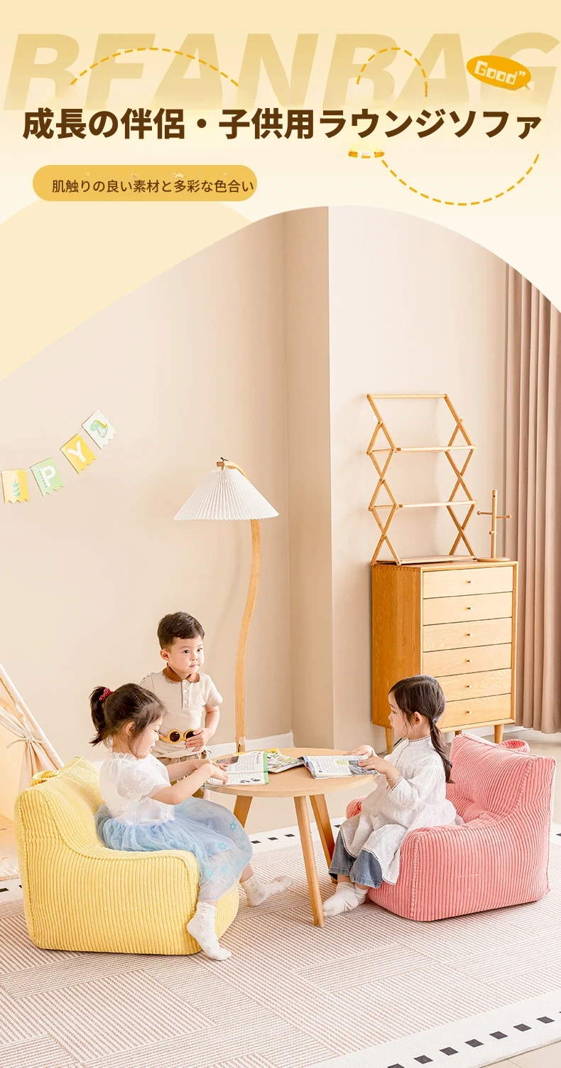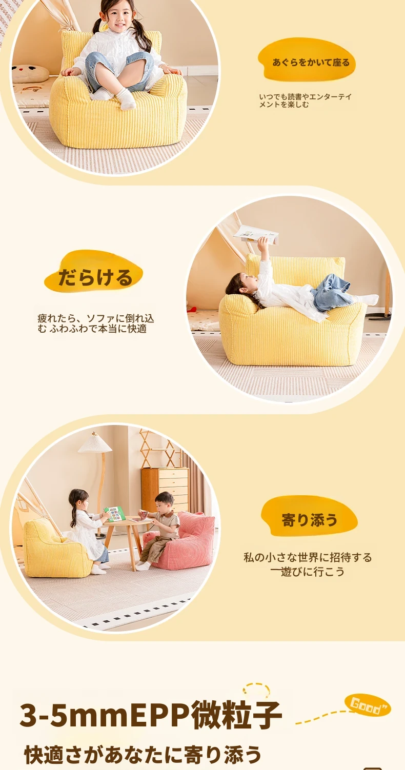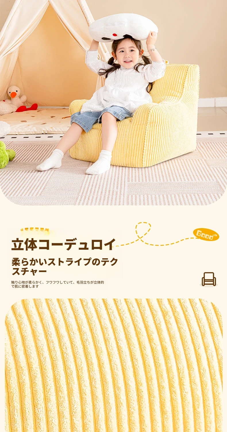 EPP新作!ふわふわコーデュロイの子供用リラックスソファー Bean Bagチェア - 寝室やリビングにぴったりの読書用座椅子で、快適なひとときをお届けします!