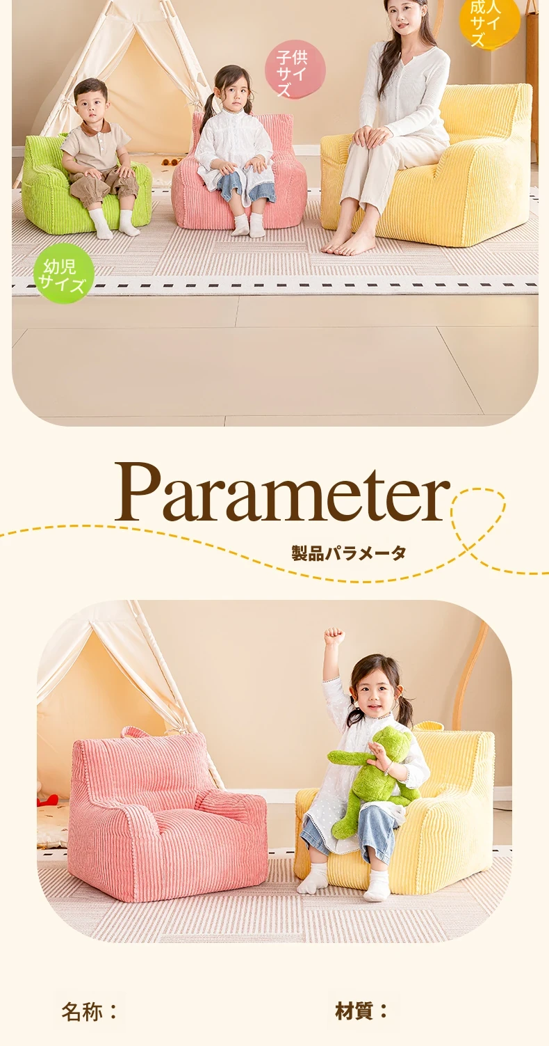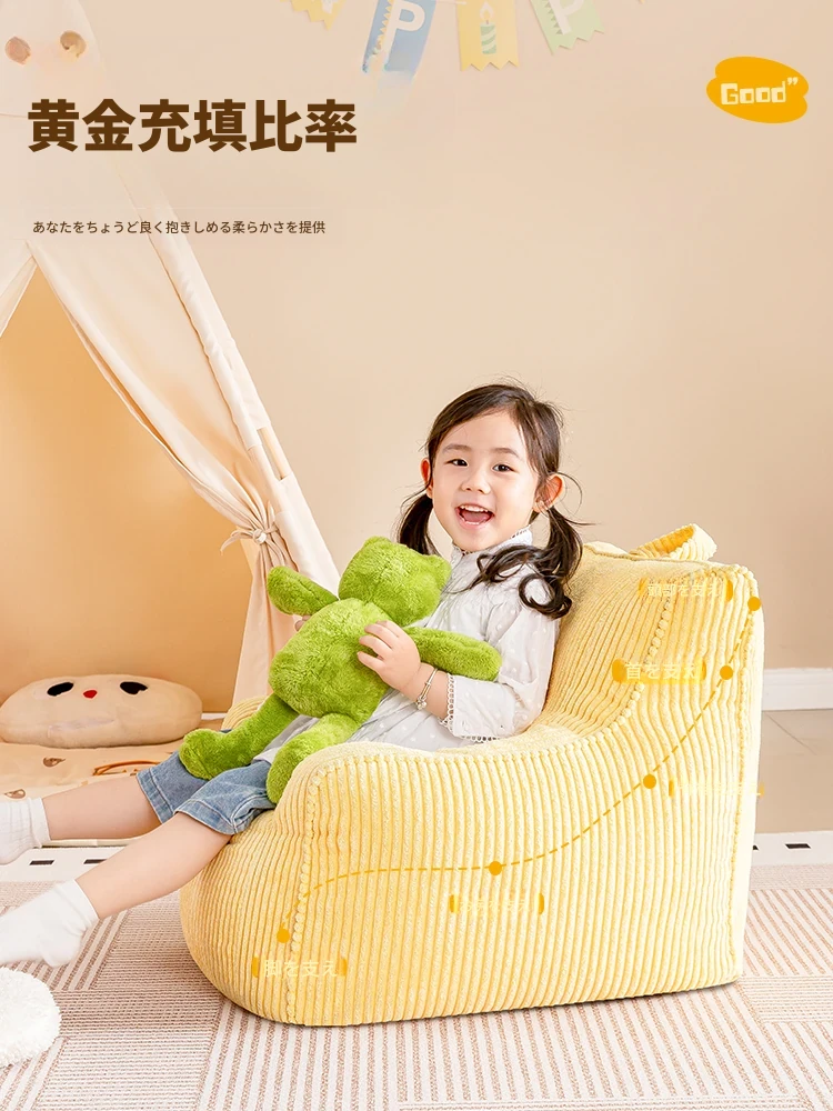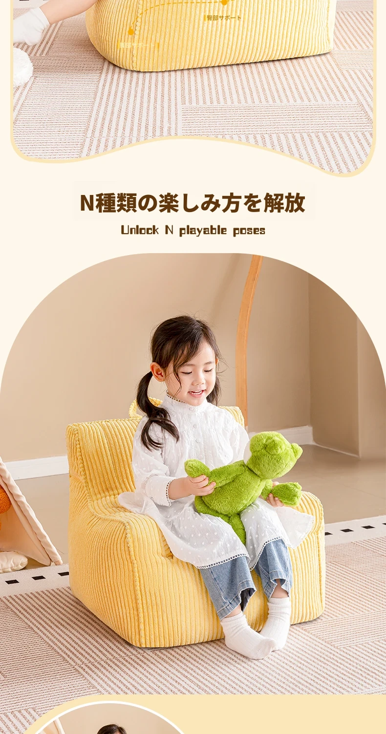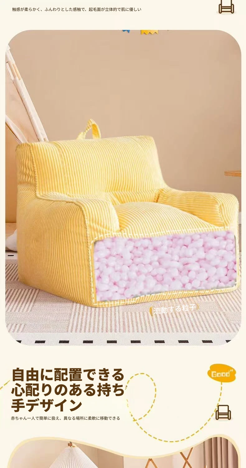 EPP新作!ふわふわコーデュロイの子供用リラックスソファー Bean Bagチェア - 寝室やリビングにぴったりの読書用座椅子で、快適なひとときをお届けします!