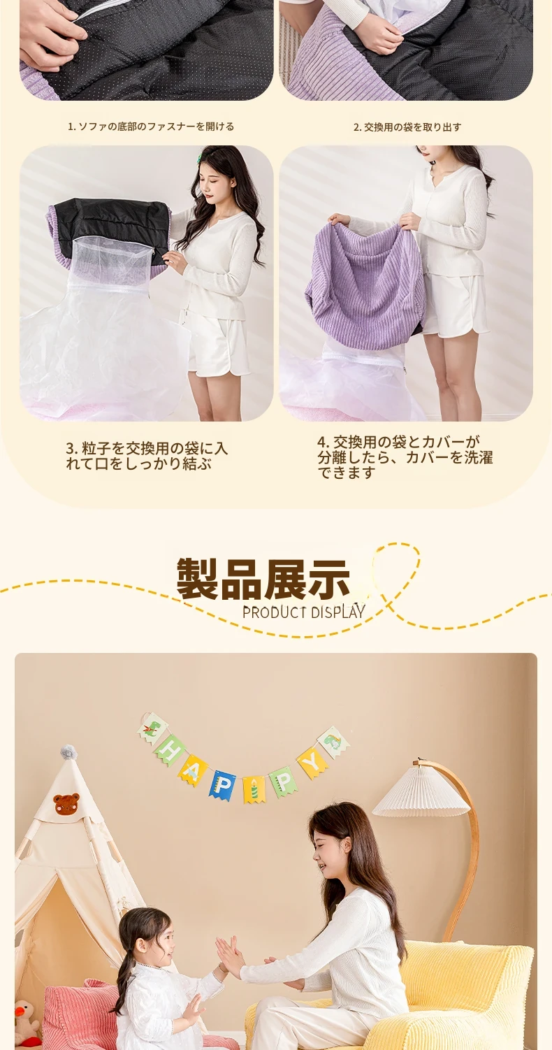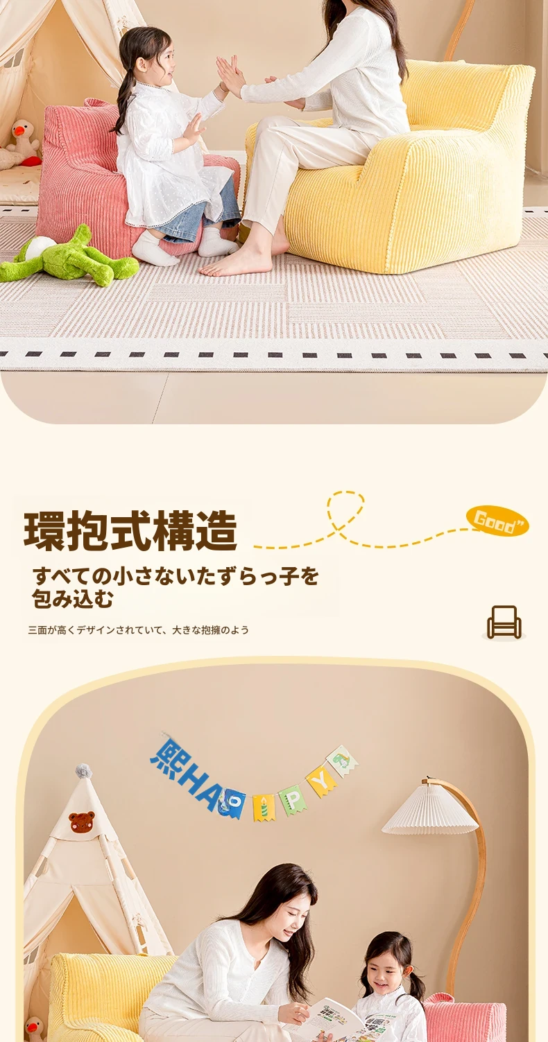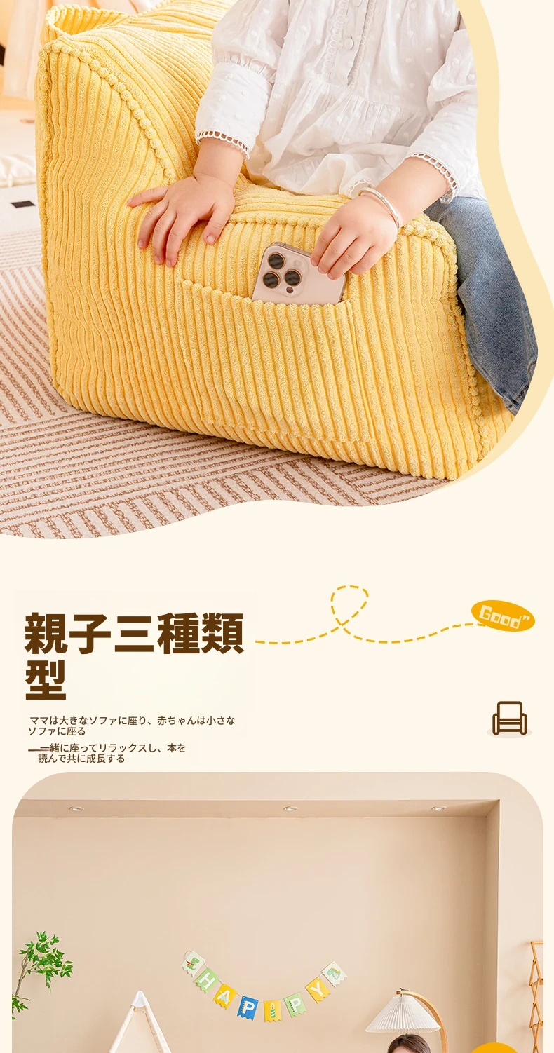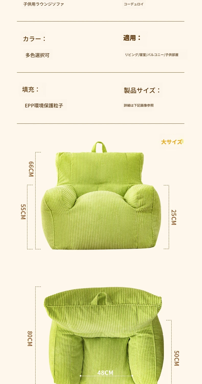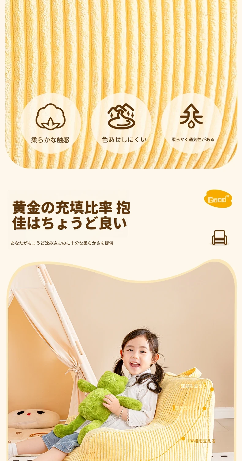 EPP新作!ふわふわコーデュロイの子供用リラックスソファー Bean Bagチェア - 寝室やリビングにぴったりの読書用座椅子で、快適なひとときをお届けします!