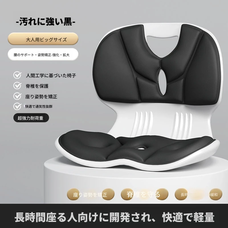 大人用ビッグサイズ【腰サポート矯正 - 強化ビッグ】汚れに強い黒