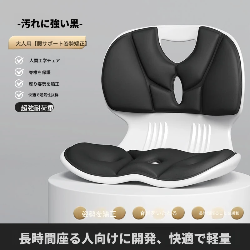 大人用【腰サポート姿勢矯正】汚れに強い黒