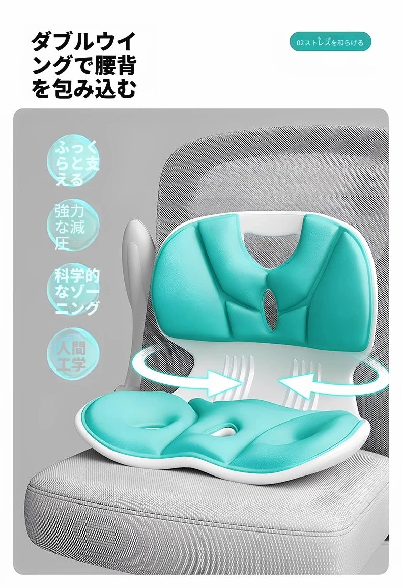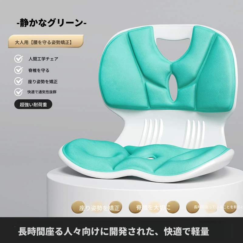 大人用大きめサイズ【腰サポート姿勢矯正-強化大サイズ】静かな緑
