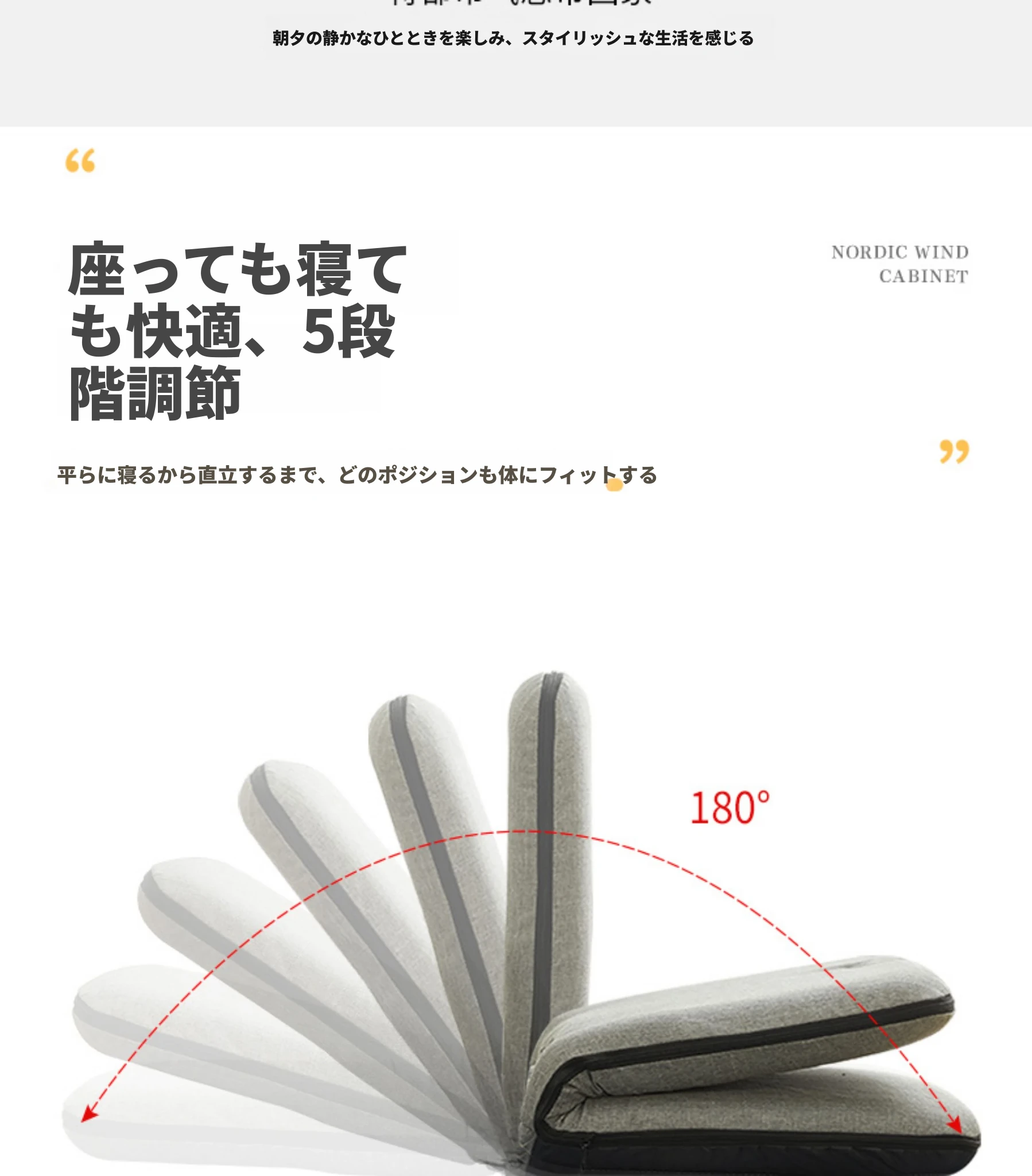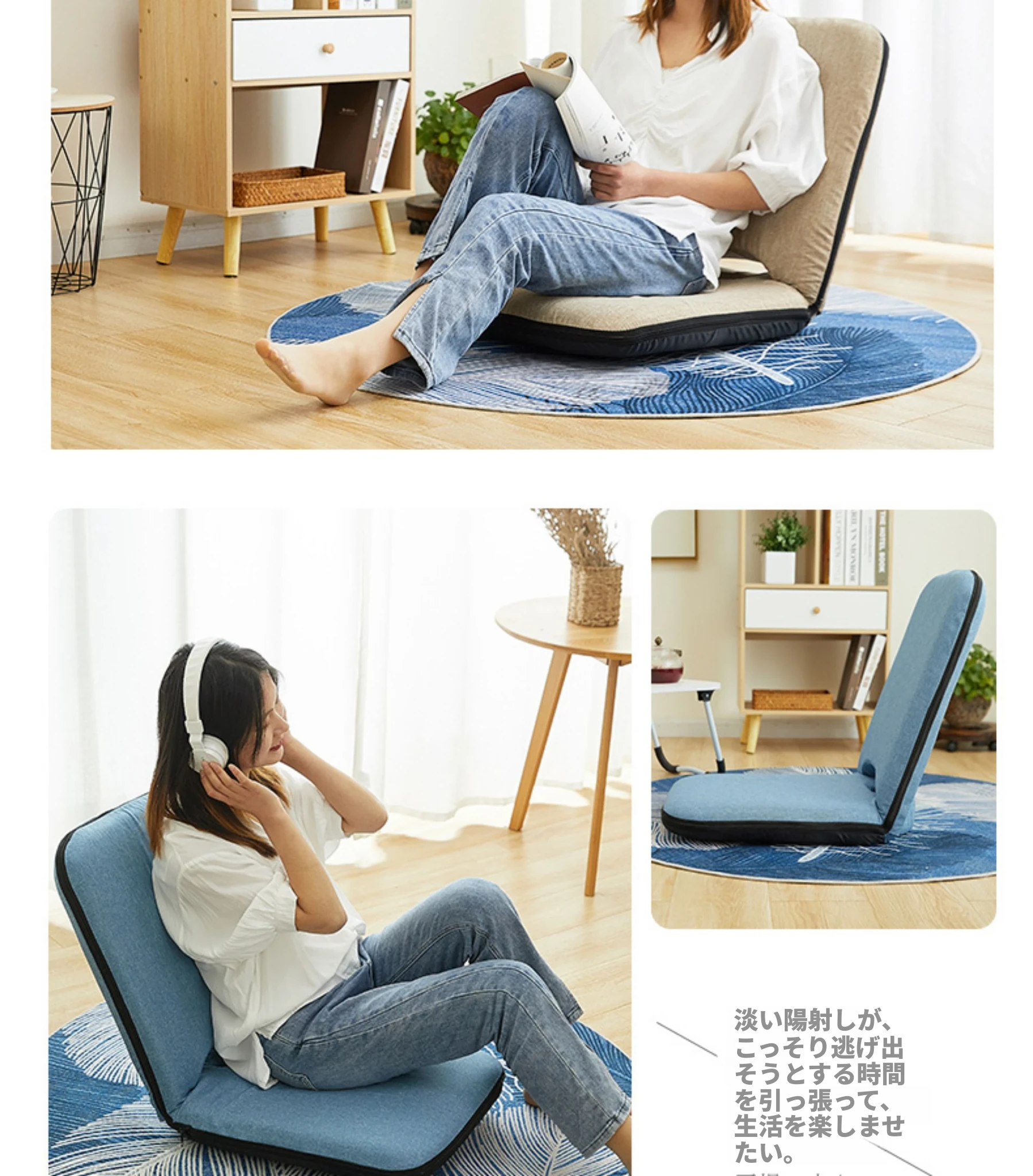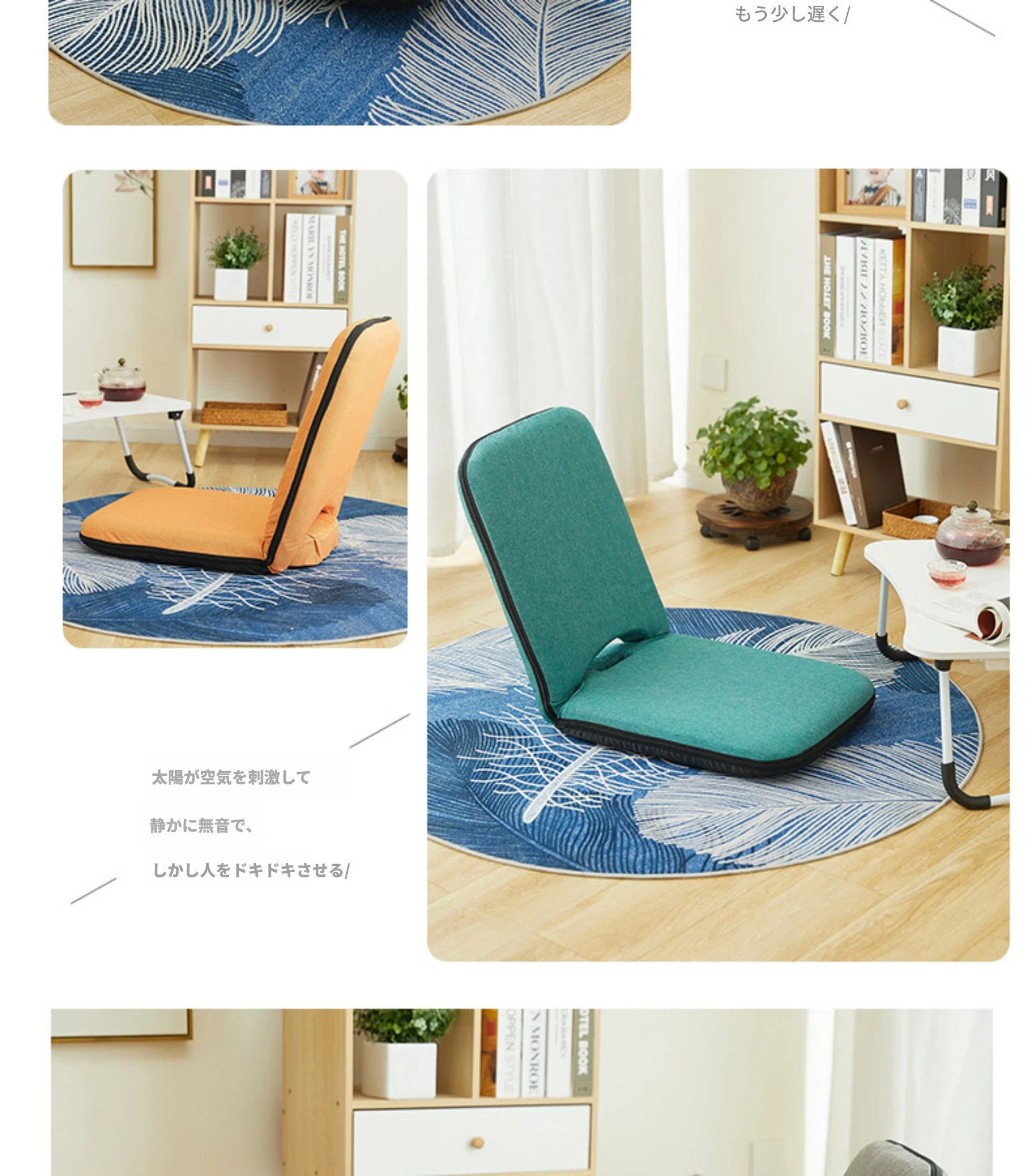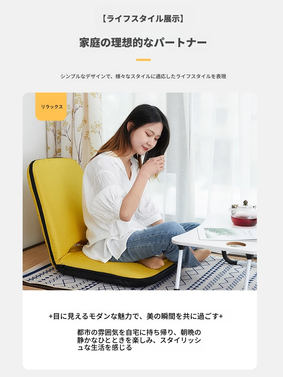 折りたたみ式畳座椅子 - ベッドサイドや窓際に最適!快適なクッションと背もたれが一体化した一人用ソファ。リラックスしたい時にぴったりの多機能デザイン!