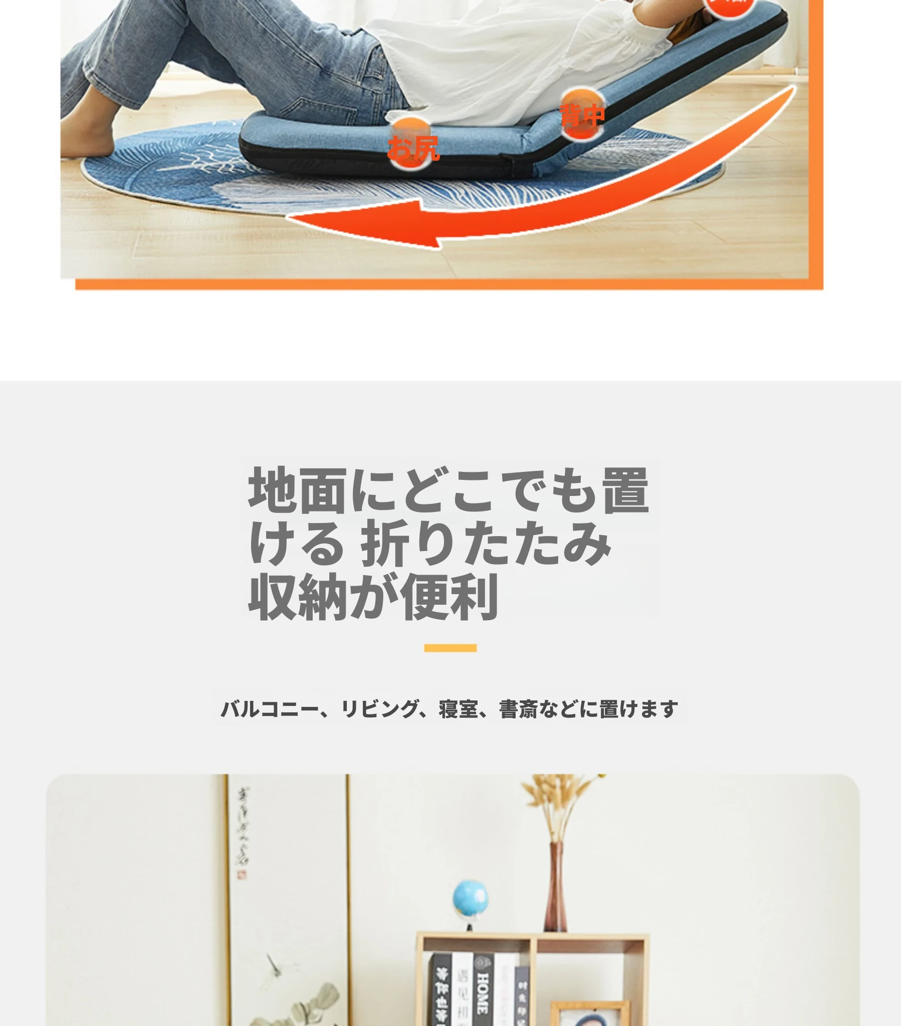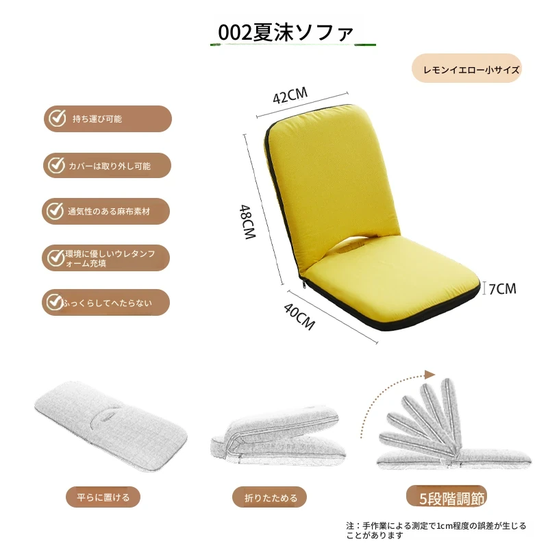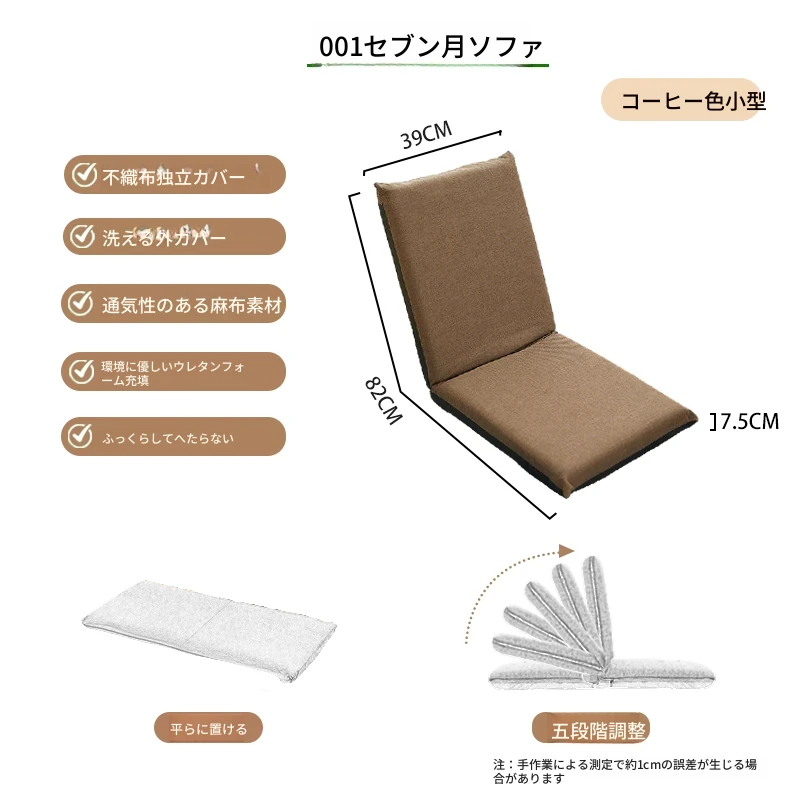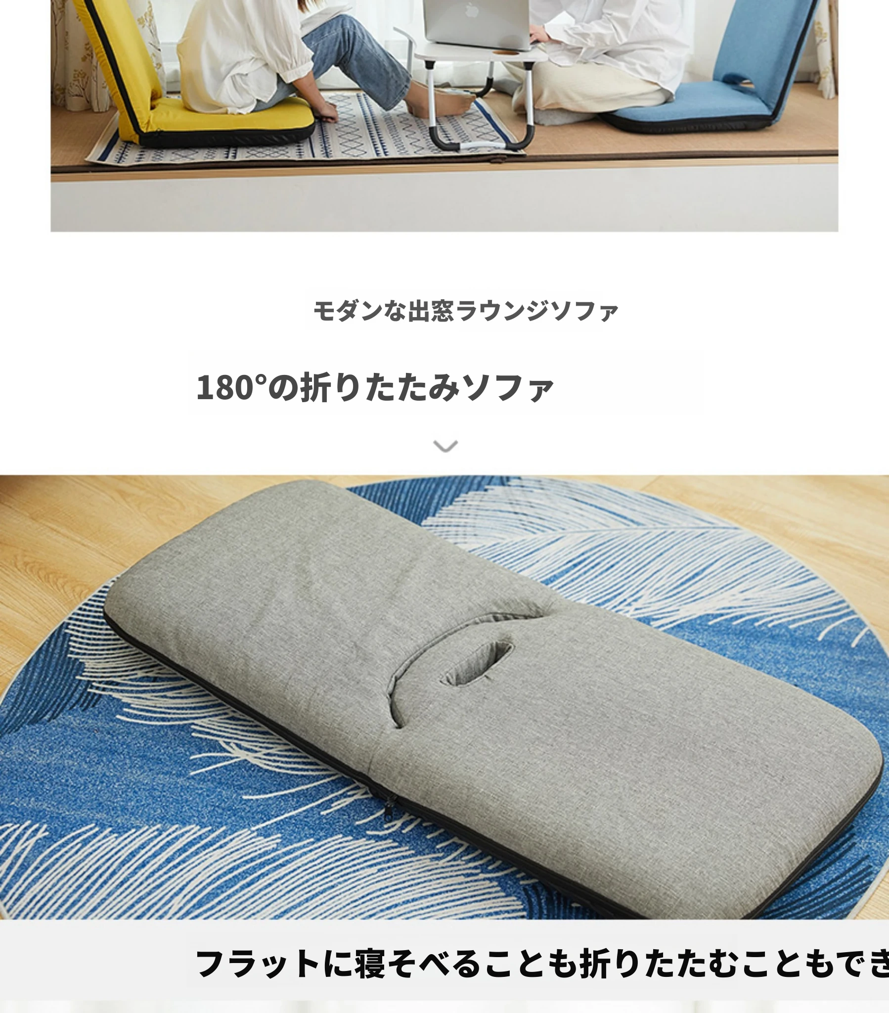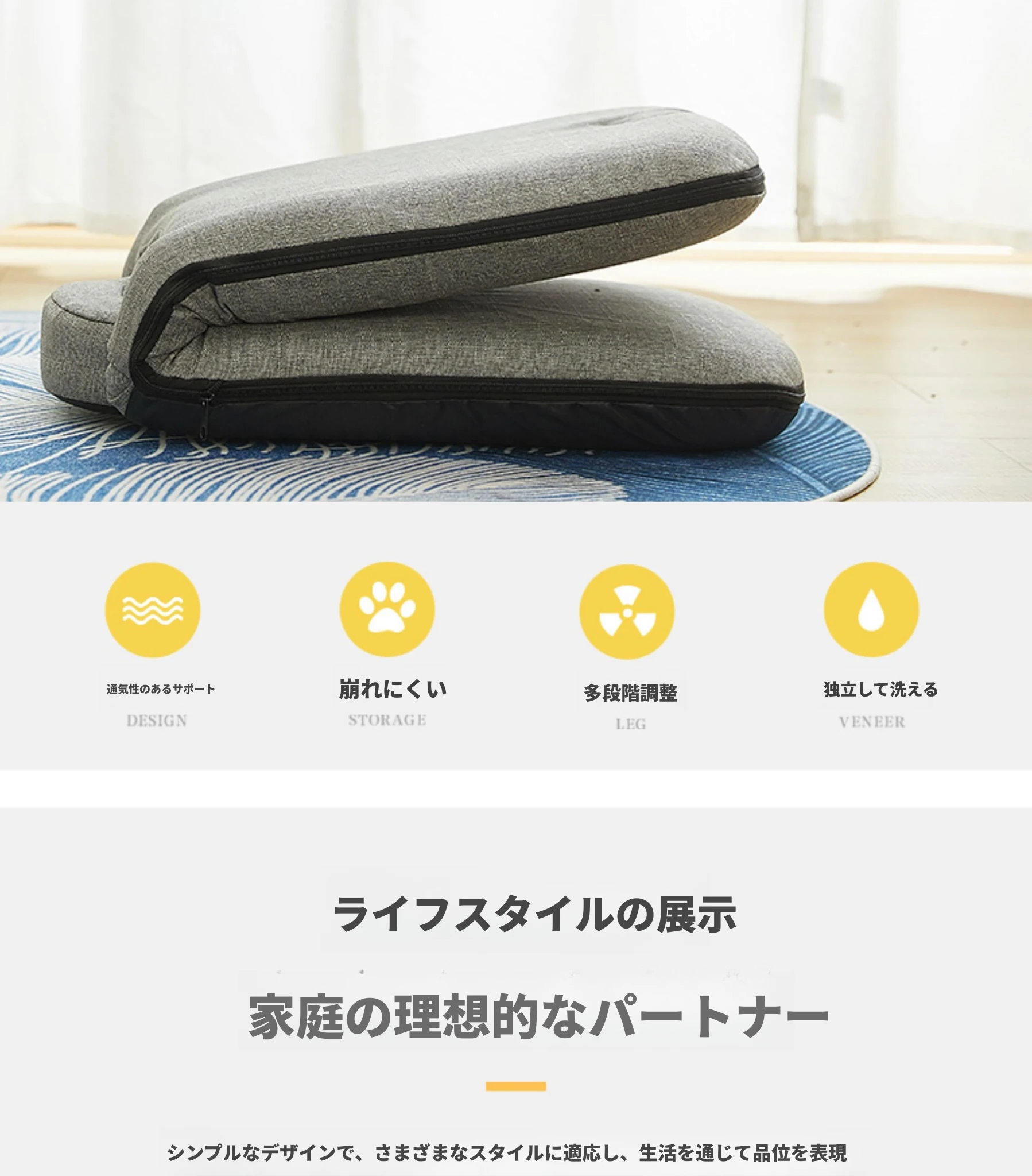折りたたみ式畳座椅子 - ベッドサイドや窓際に最適!快適なクッションと背もたれが一体化した一人用ソファ。リラックスしたい時にぴったりの多機能デザイン!