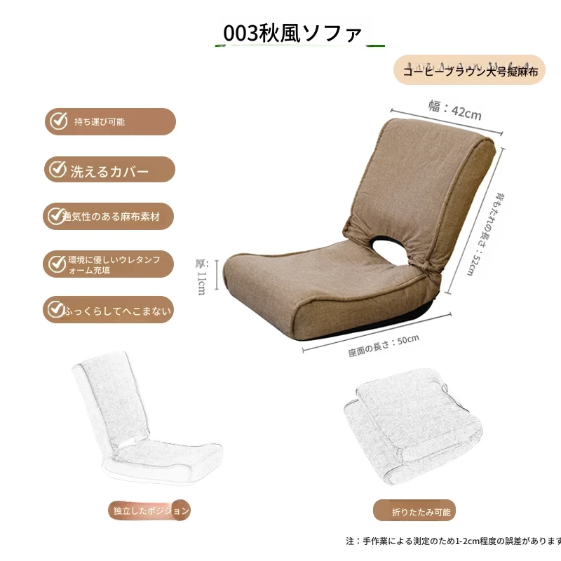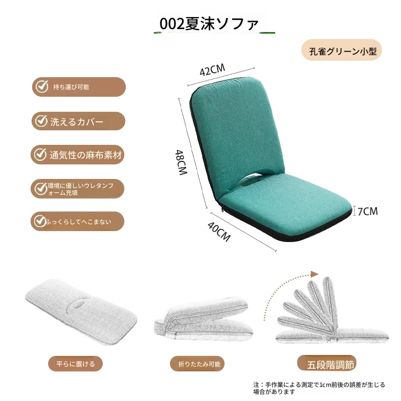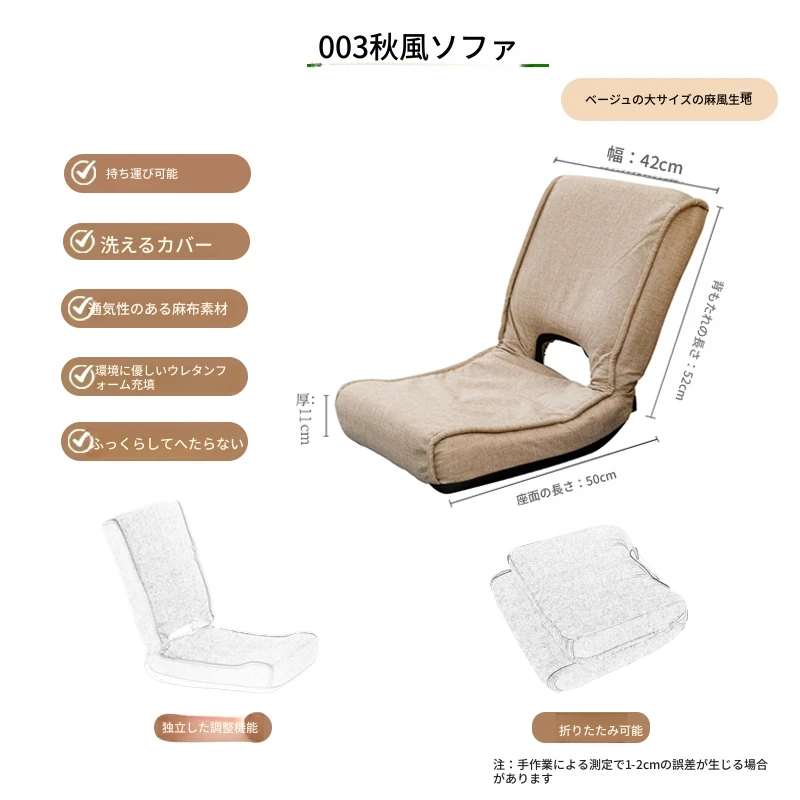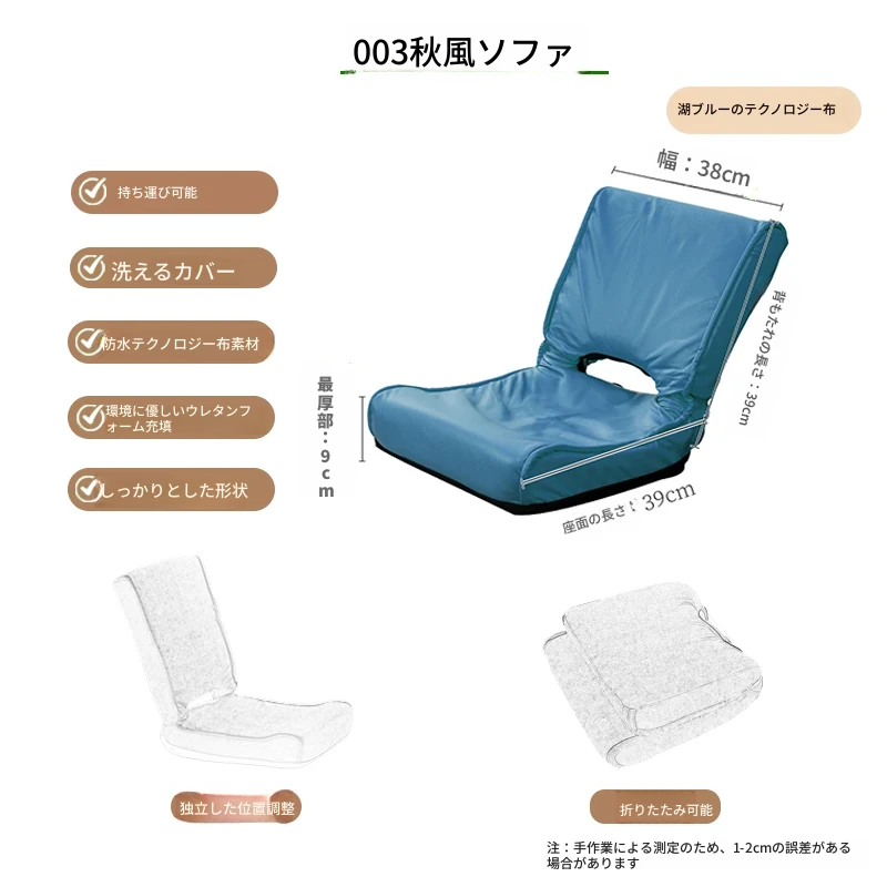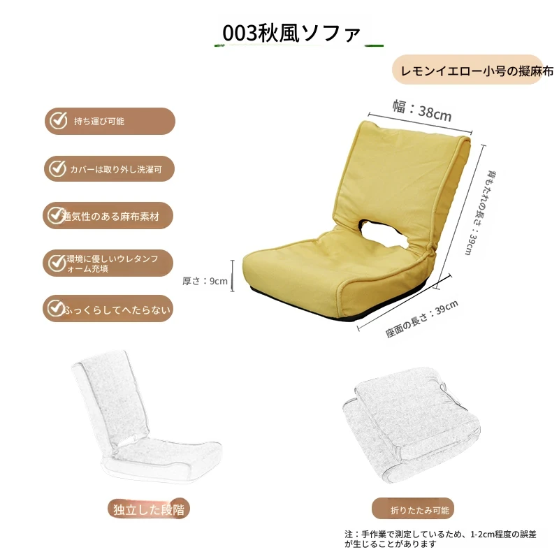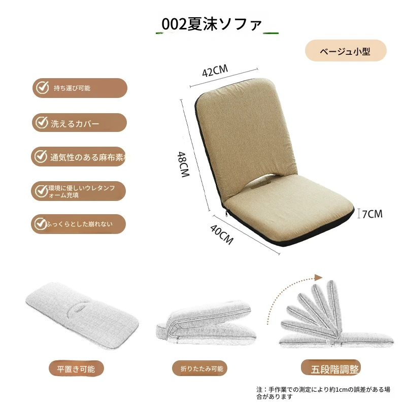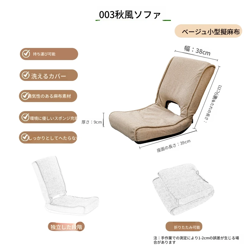 折りたたみ式畳座椅子 - ベッドサイドや窓際に最適!快適なクッションと背もたれが一体化した一人用ソファ。リラックスしたい時にぴったりの多機能デザイン!