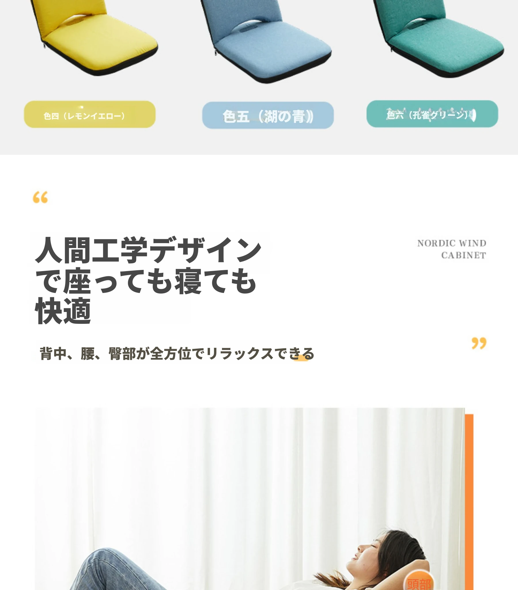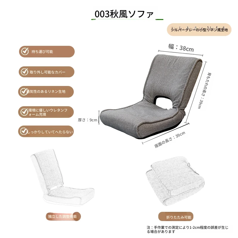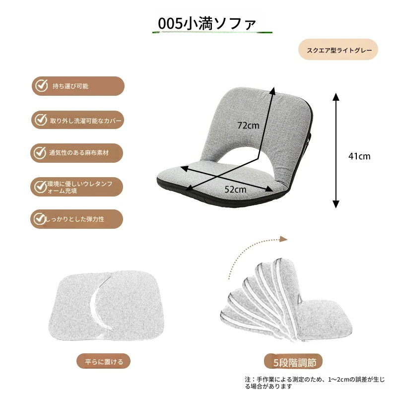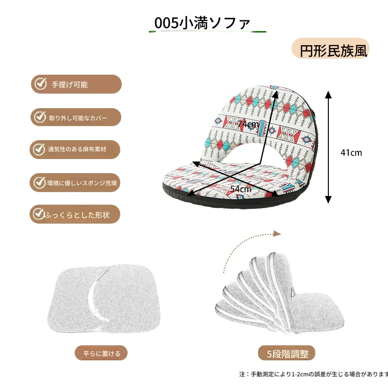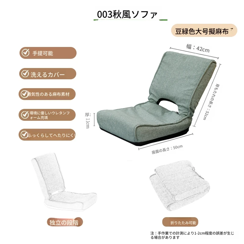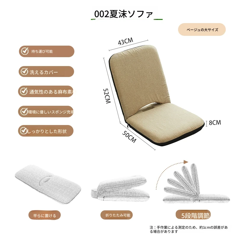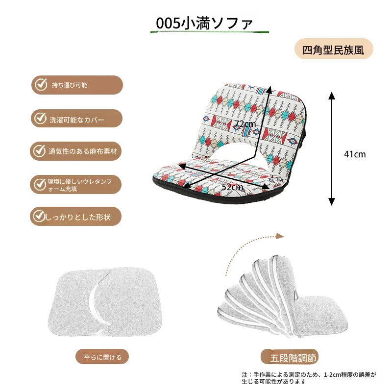 折りたたみ式畳座椅子 - ベッドサイドや窓際に最適!快適なクッションと背もたれが一体化した一人用ソファ。リラックスしたい時にぴったりの多機能デザイン!