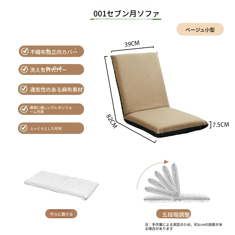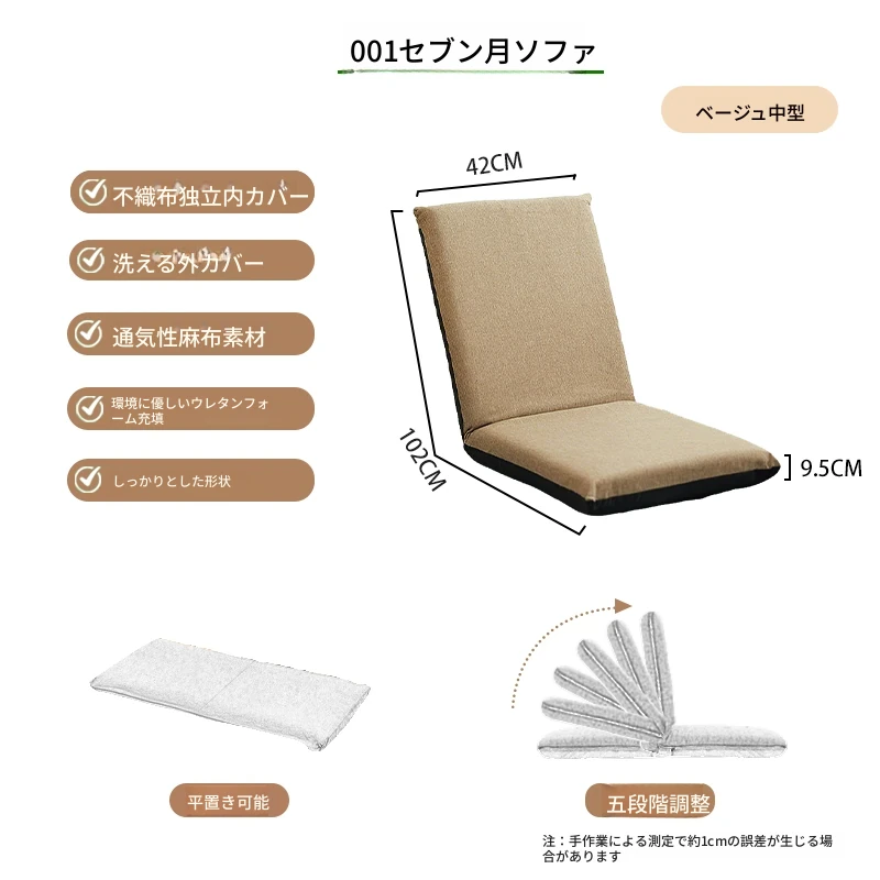 001セブンマンスソファー ベージュ 小サイズ - 腰5段調整可