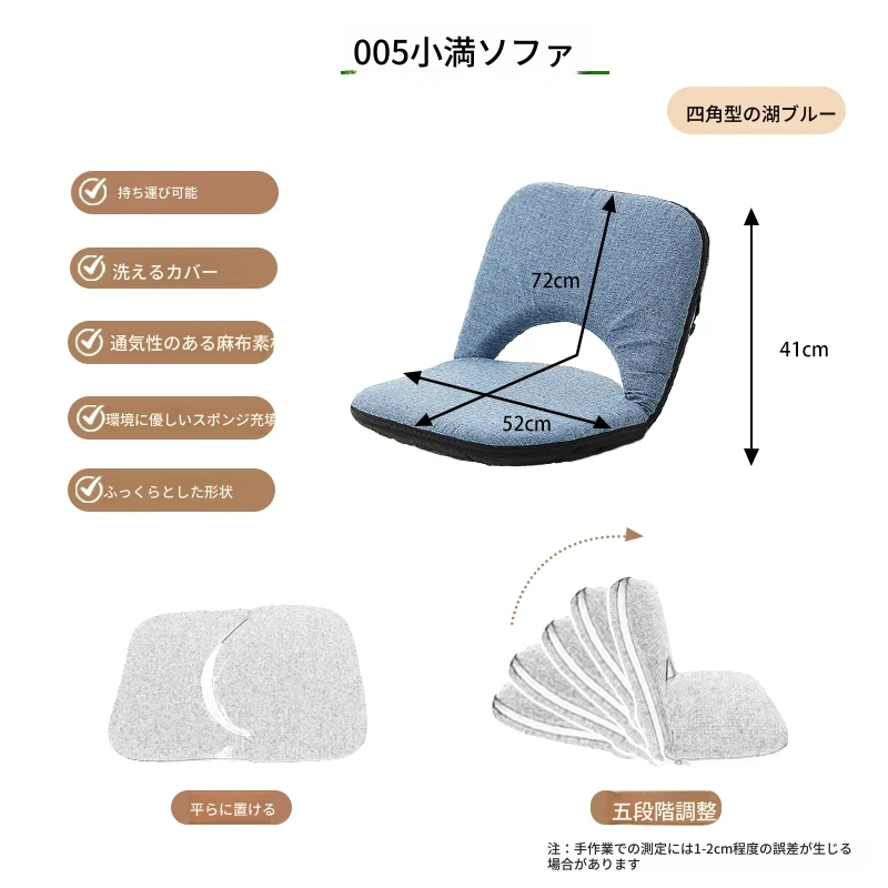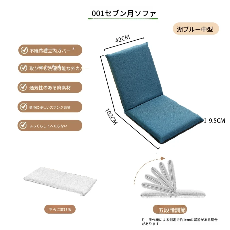 001セブンマンスソファー ライトブルー 小サイズ - 腰5段調整可