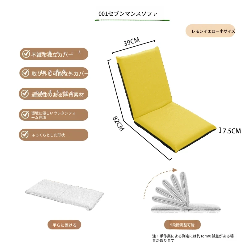 001セブンマンスソファー レモンイエロー 小サイズ - 腰5段調整