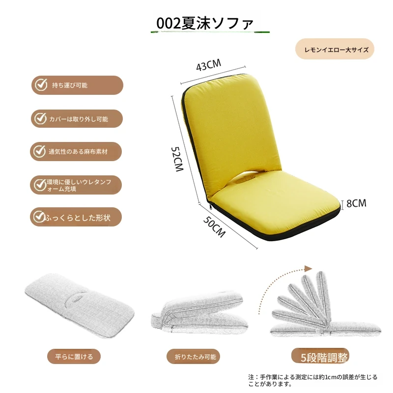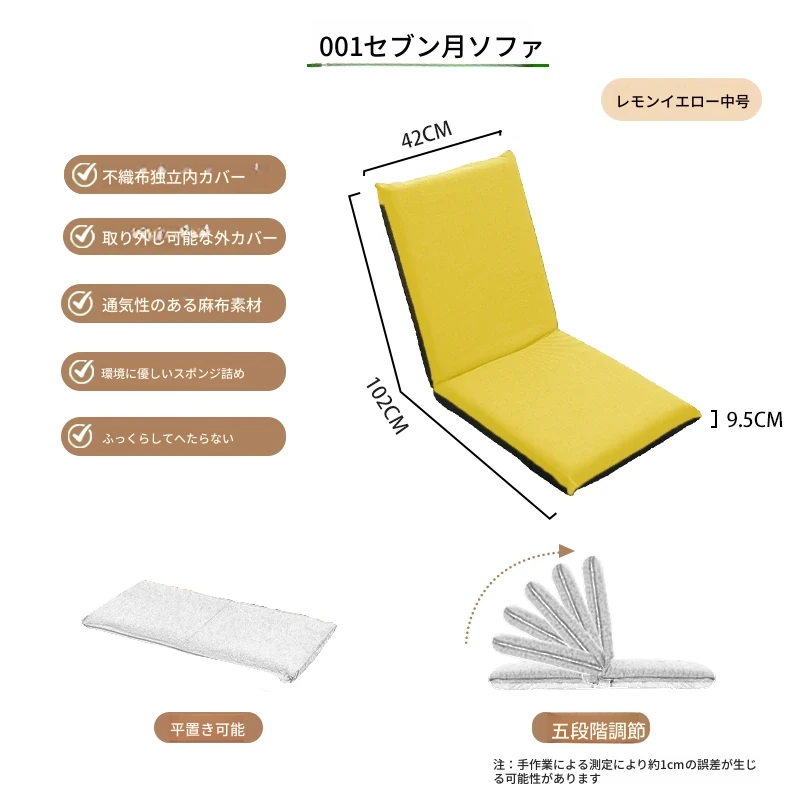 001セブンマンスソファー レモンイエロー 中サイズ - 腰5段調整