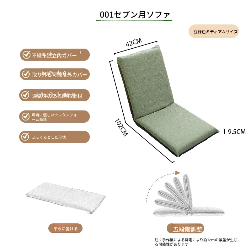 001セブンマンスソファー ダークグリーン 中サイズ - 腰5段調整