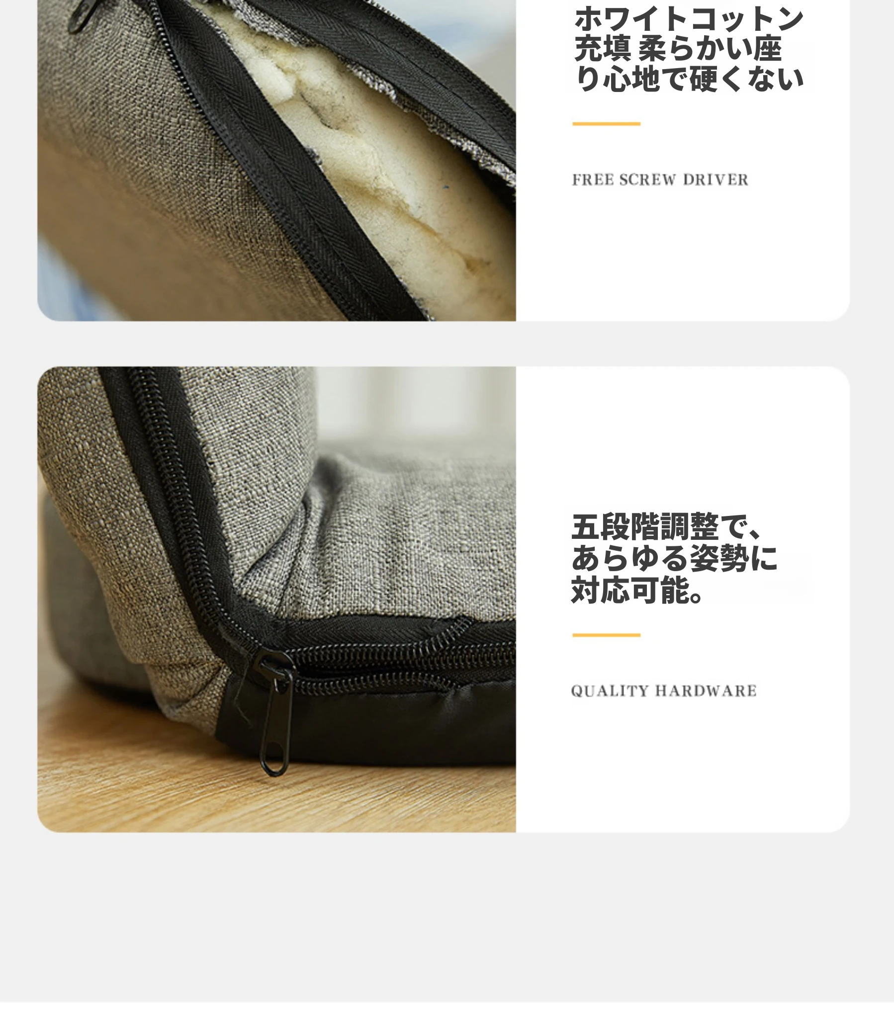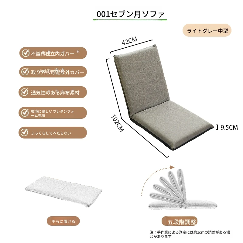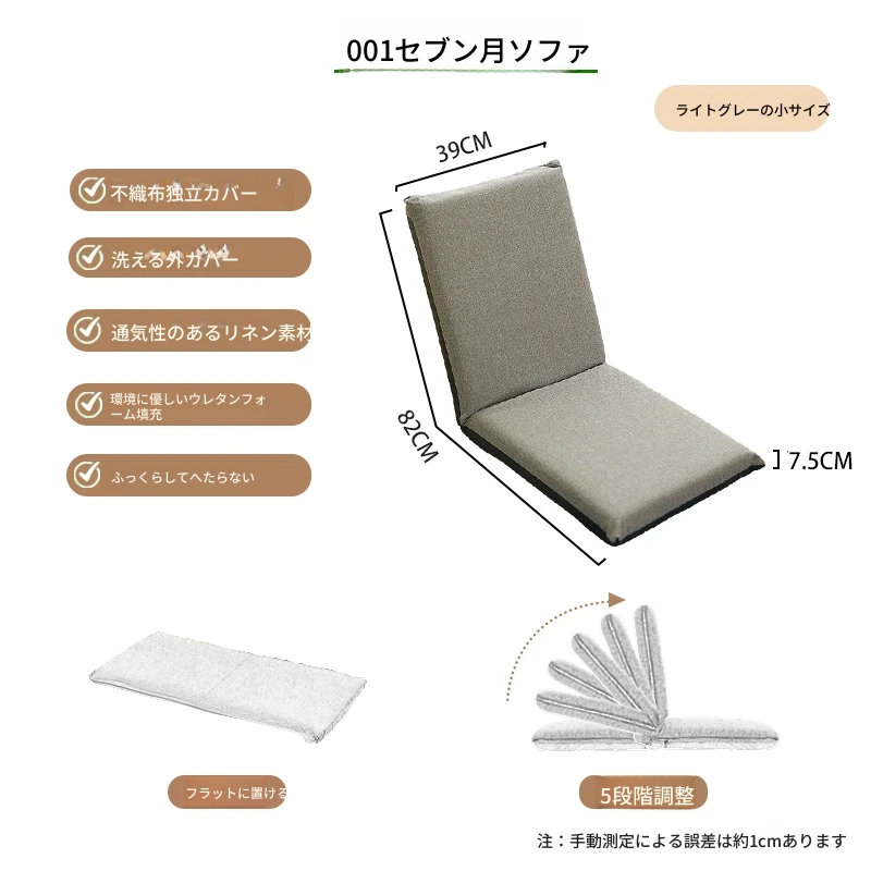 001セブンマンスソファー ライトグレー 小サイズ - 腰5段調整可