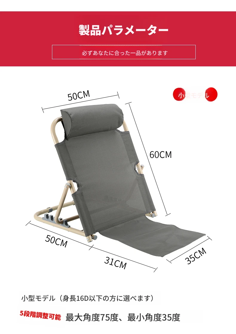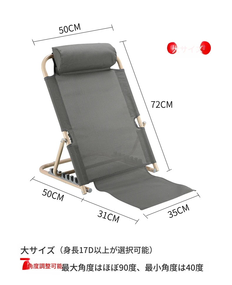 大学生必見!折りたたみ式ベッドサポートチェア - 寝ながらリラックスできる、疲れた体を優しく支える!高齢者や宿舎に最適な快適な背もたれ椅子。簡単に収納できるので、スペースも取りません。