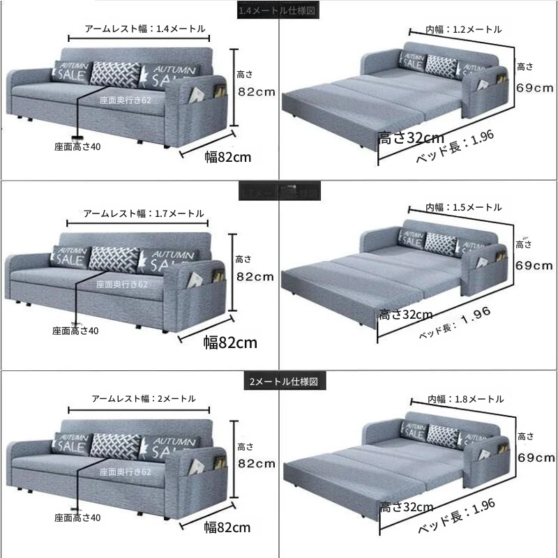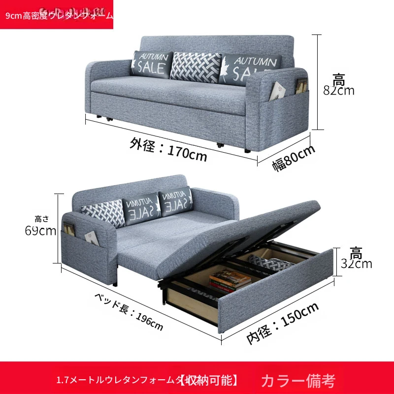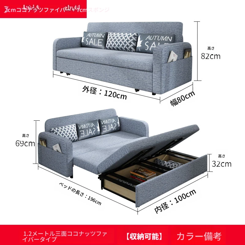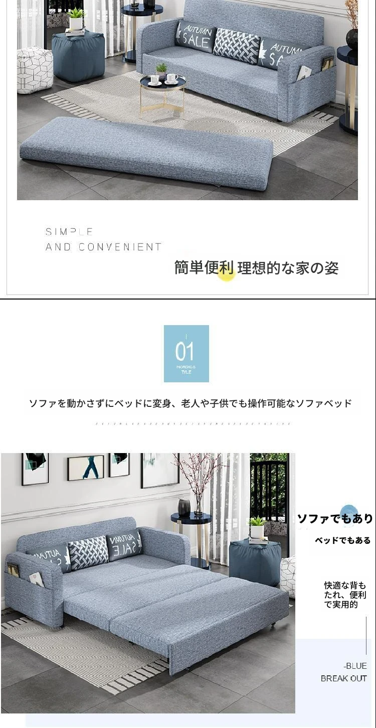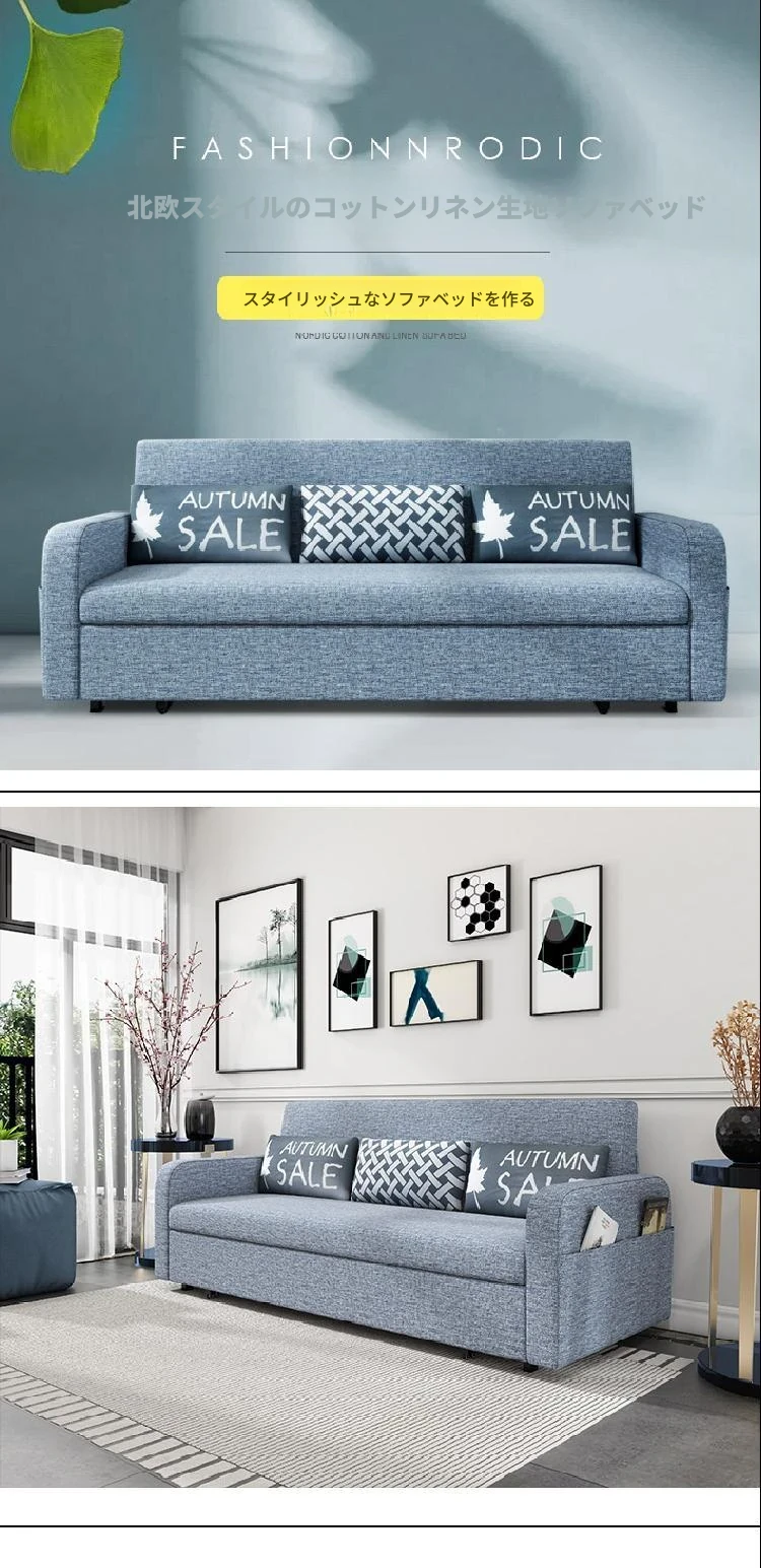 【香港送料無料】折りたたみ収納ソファベッド!小型リビングに最適な布製、寝心地抜群の2WAYソファベッド!限られたスペースでも快適に使える!
