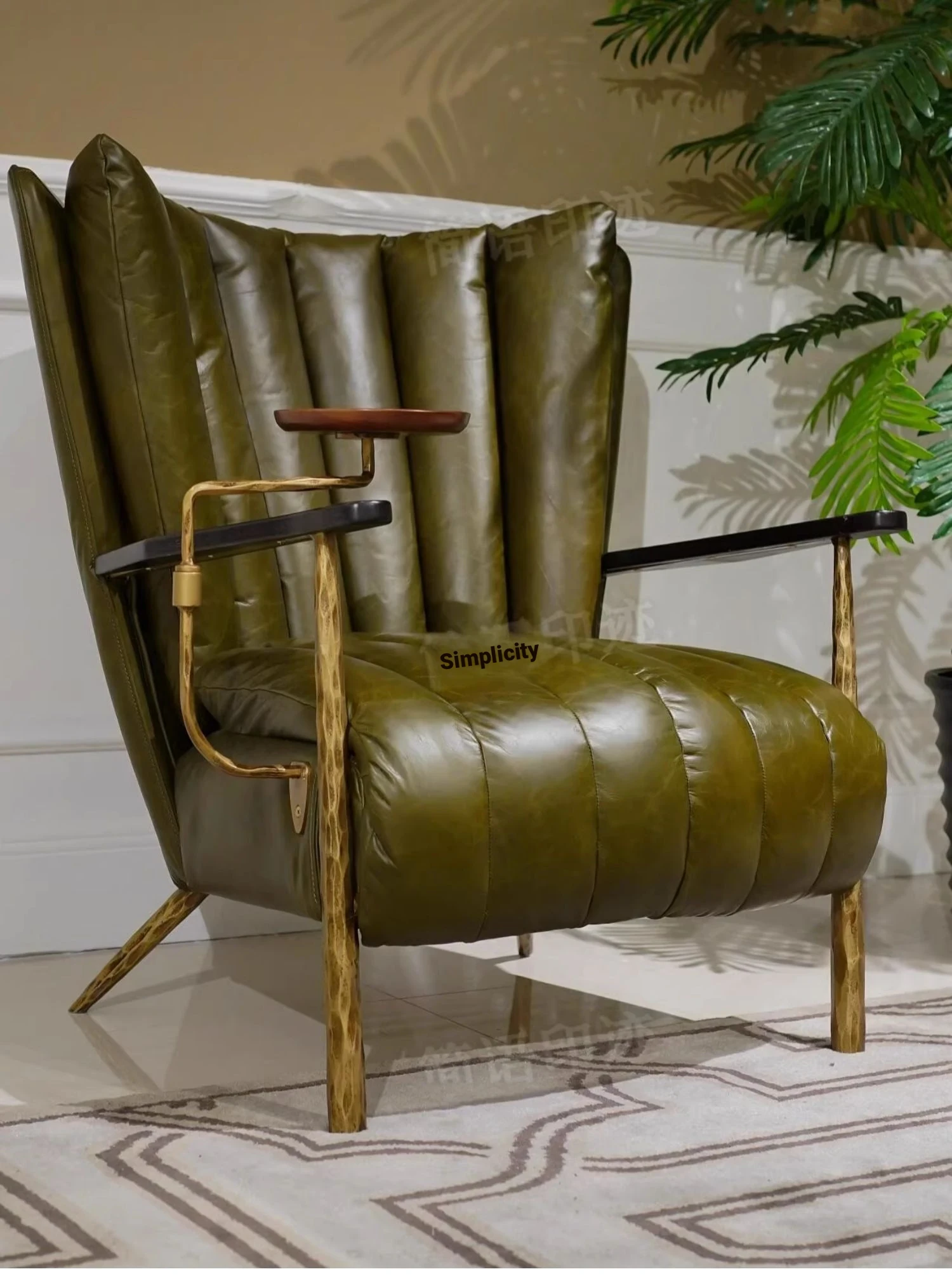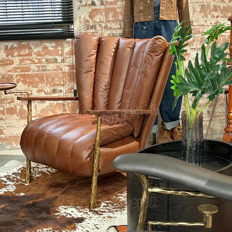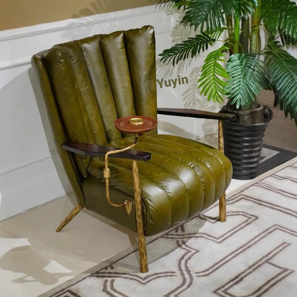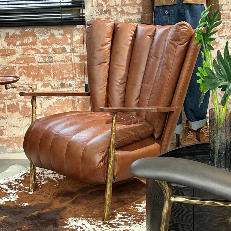 リビング用一人掛けバルコニーリクライニングチェア フレンチアンティークオイルワックスレザー 鉄製鍛造シガーチェア トラチェア おしゃれなリラックスチェアで優雅なひとときを!
