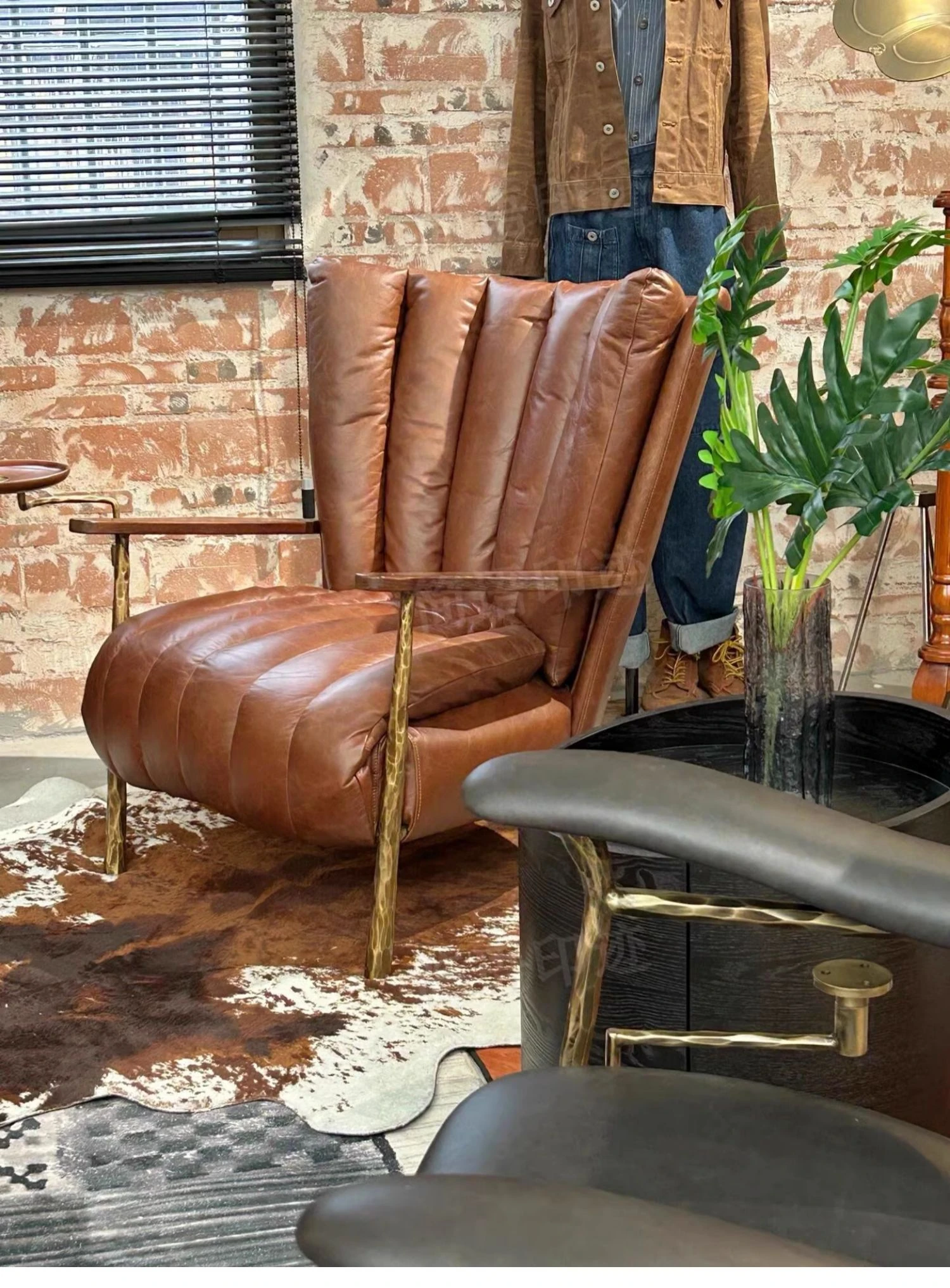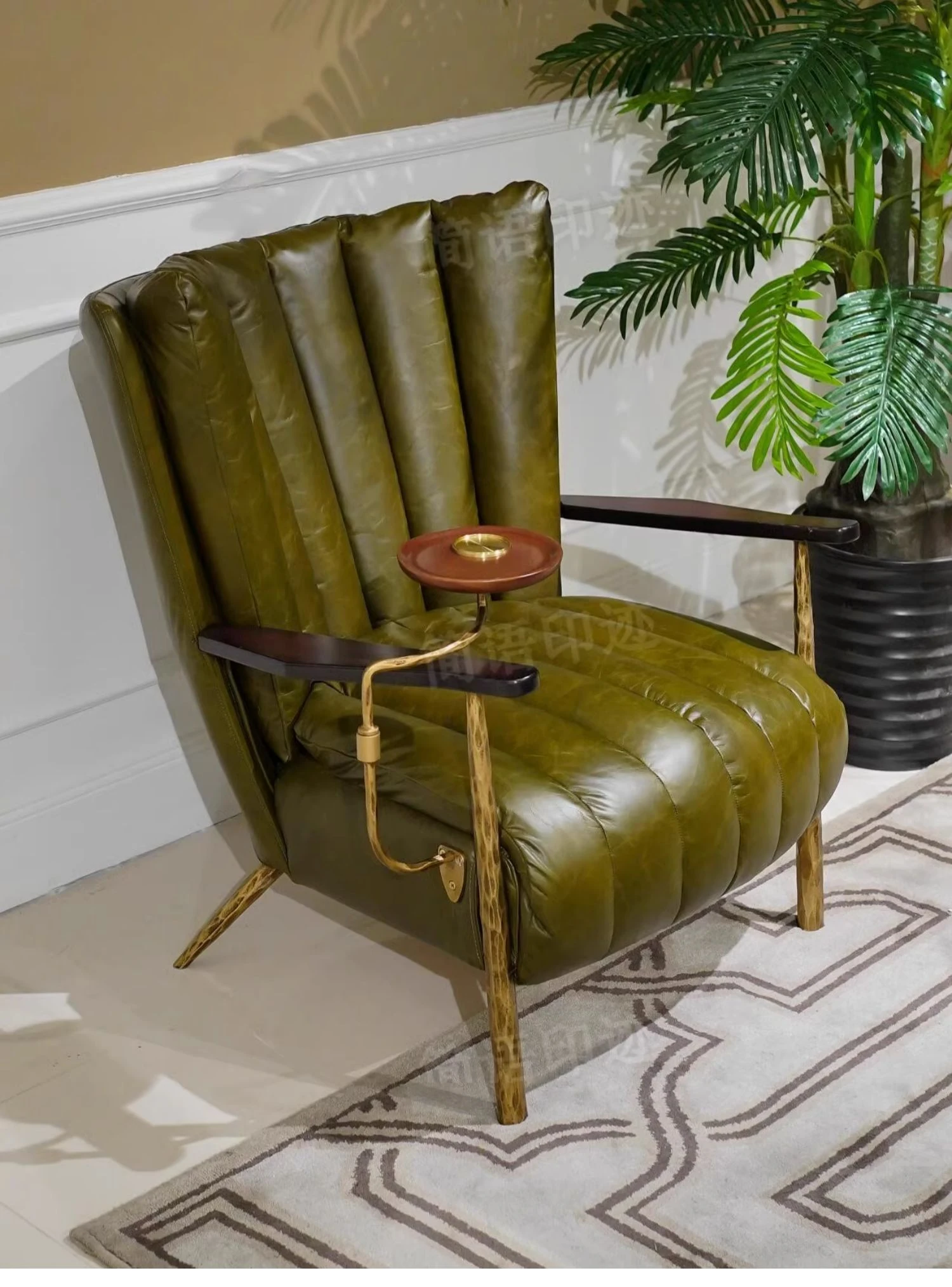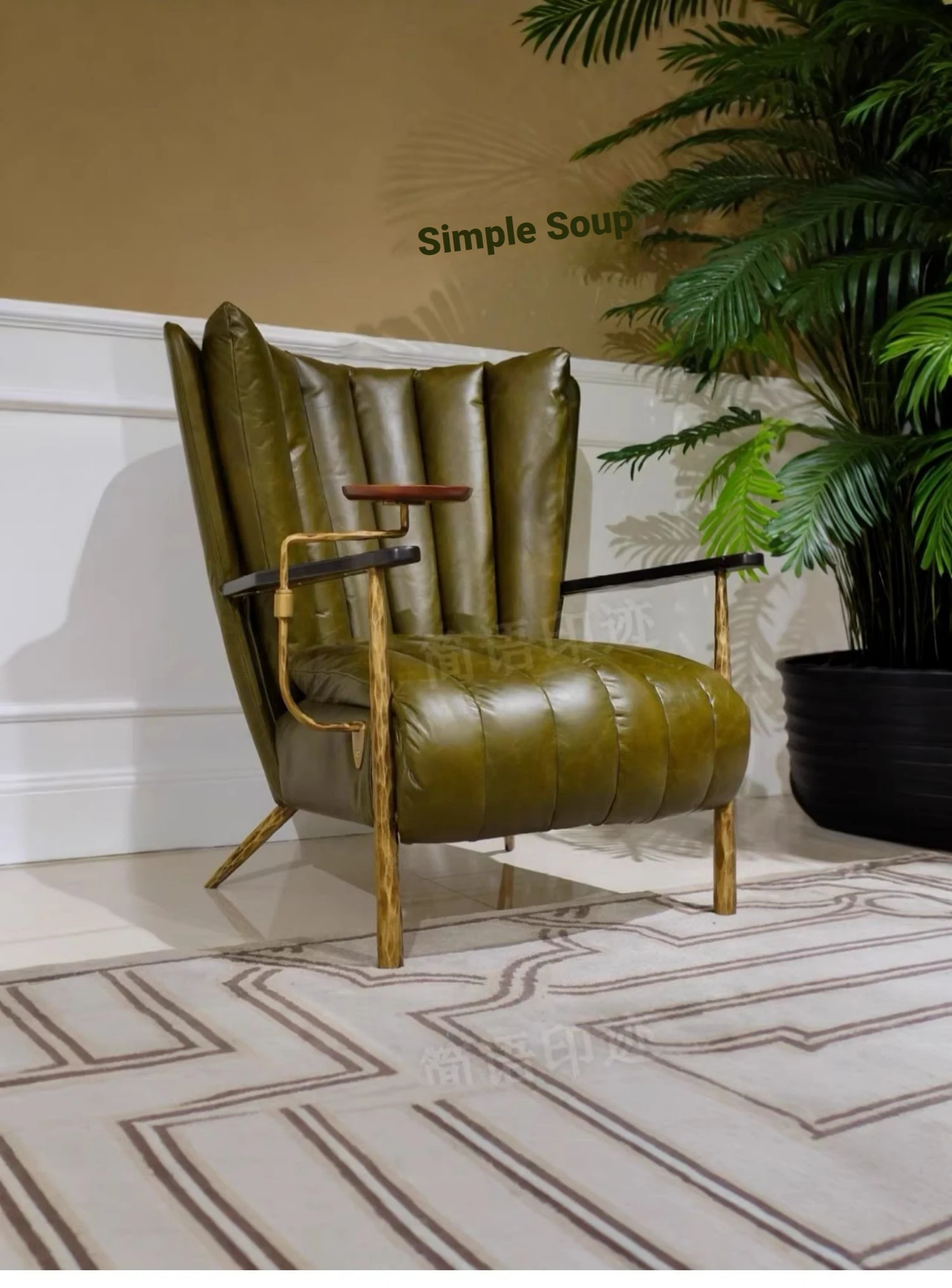 リビング用一人掛けバルコニーリクライニングチェア フレンチアンティークオイルワックスレザー 鉄製鍛造シガーチェア トラチェア おしゃれなリラックスチェアで優雅なひとときを!