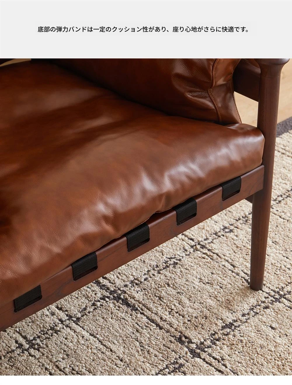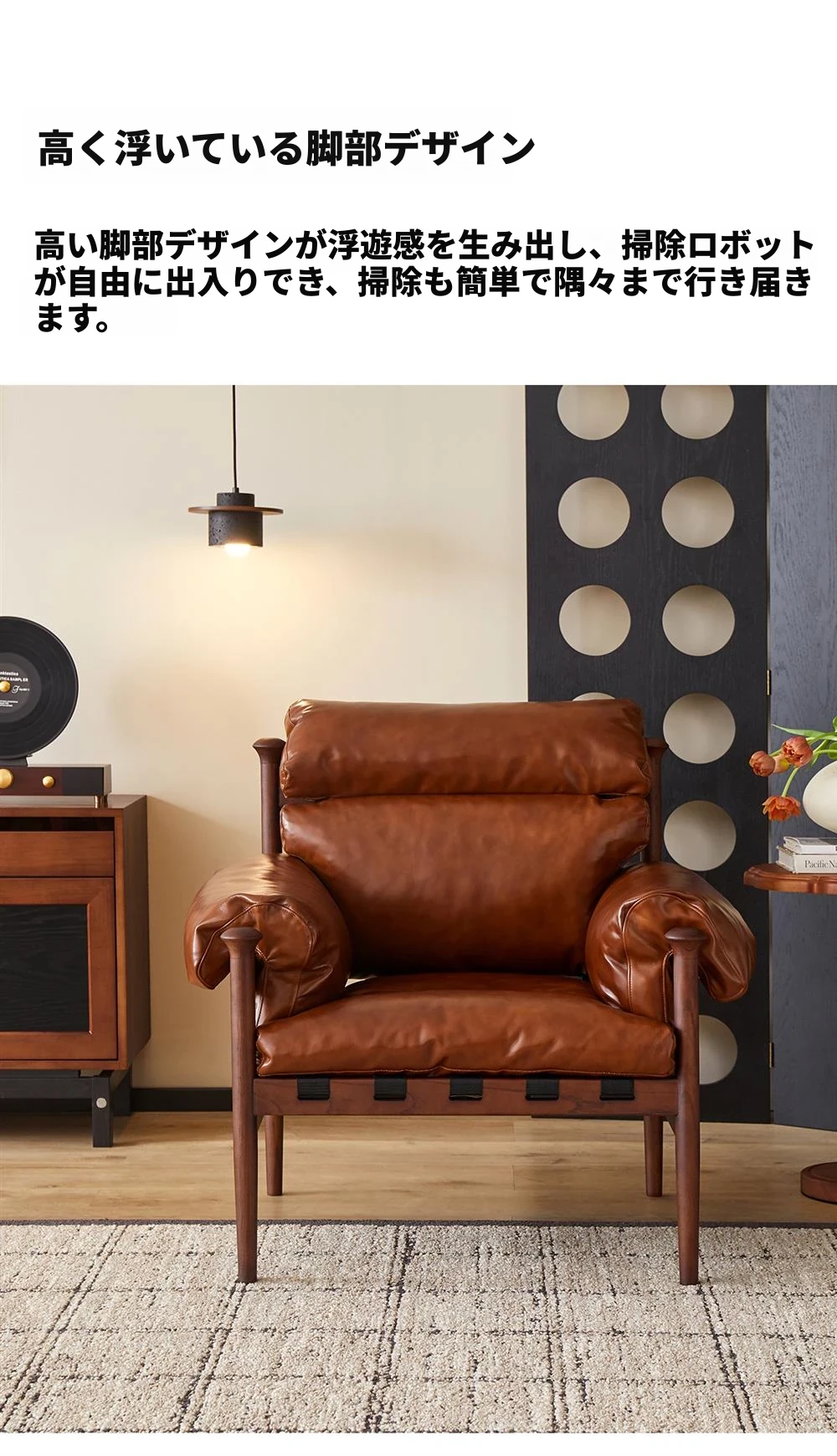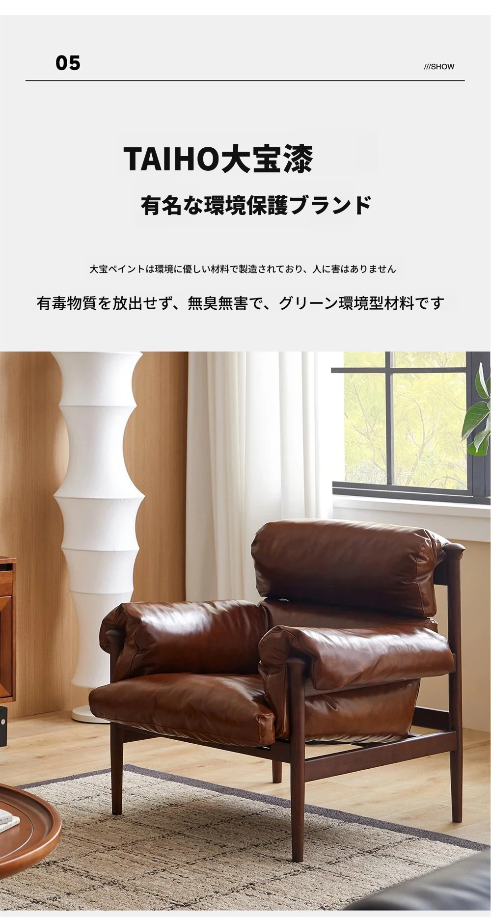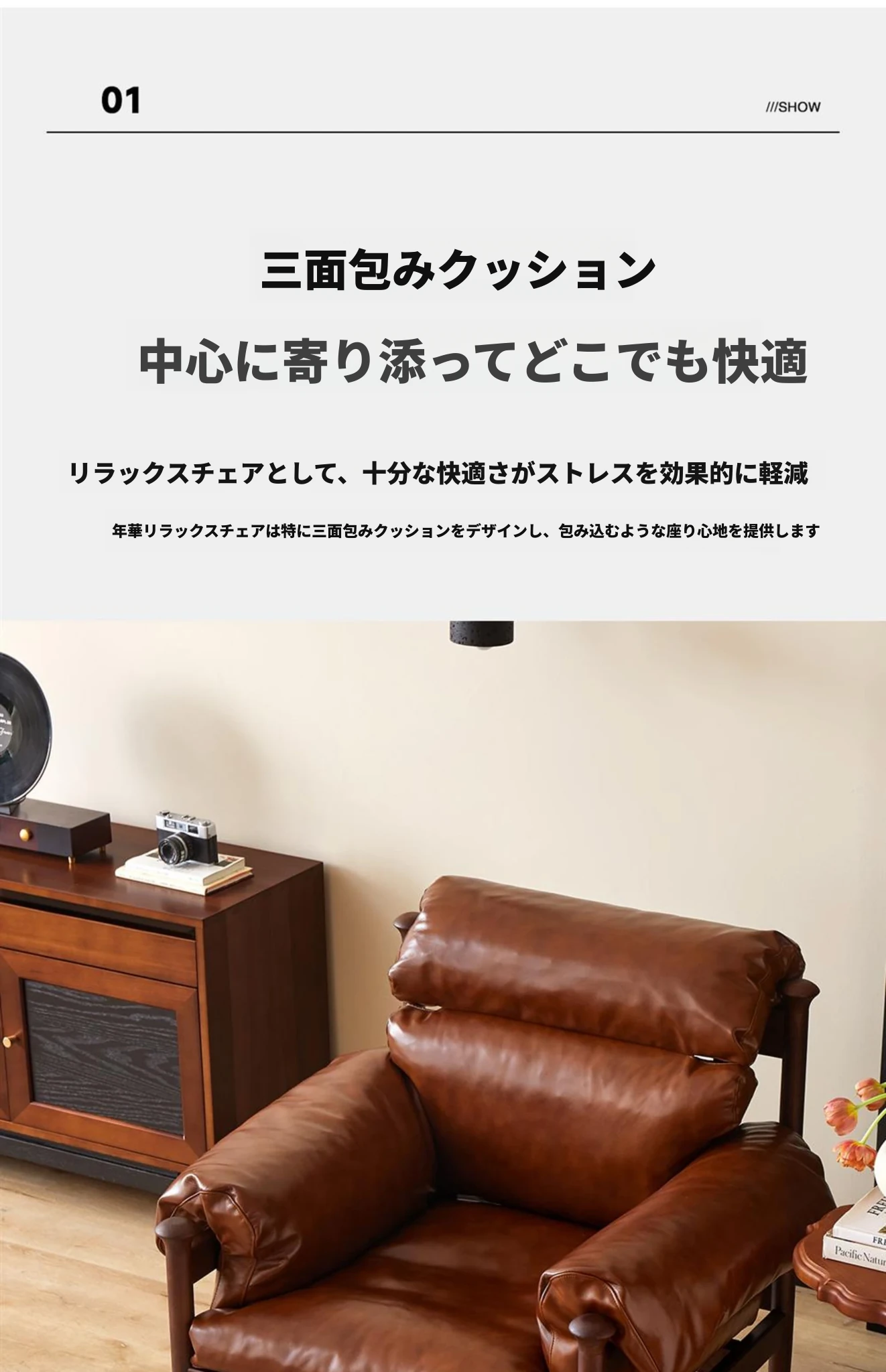 フレンチビンテージ一人掛けソファチェア|小さなリビングに最適な高級本革アートチェア|木製フレームで軽やかな贅沢感を演出!