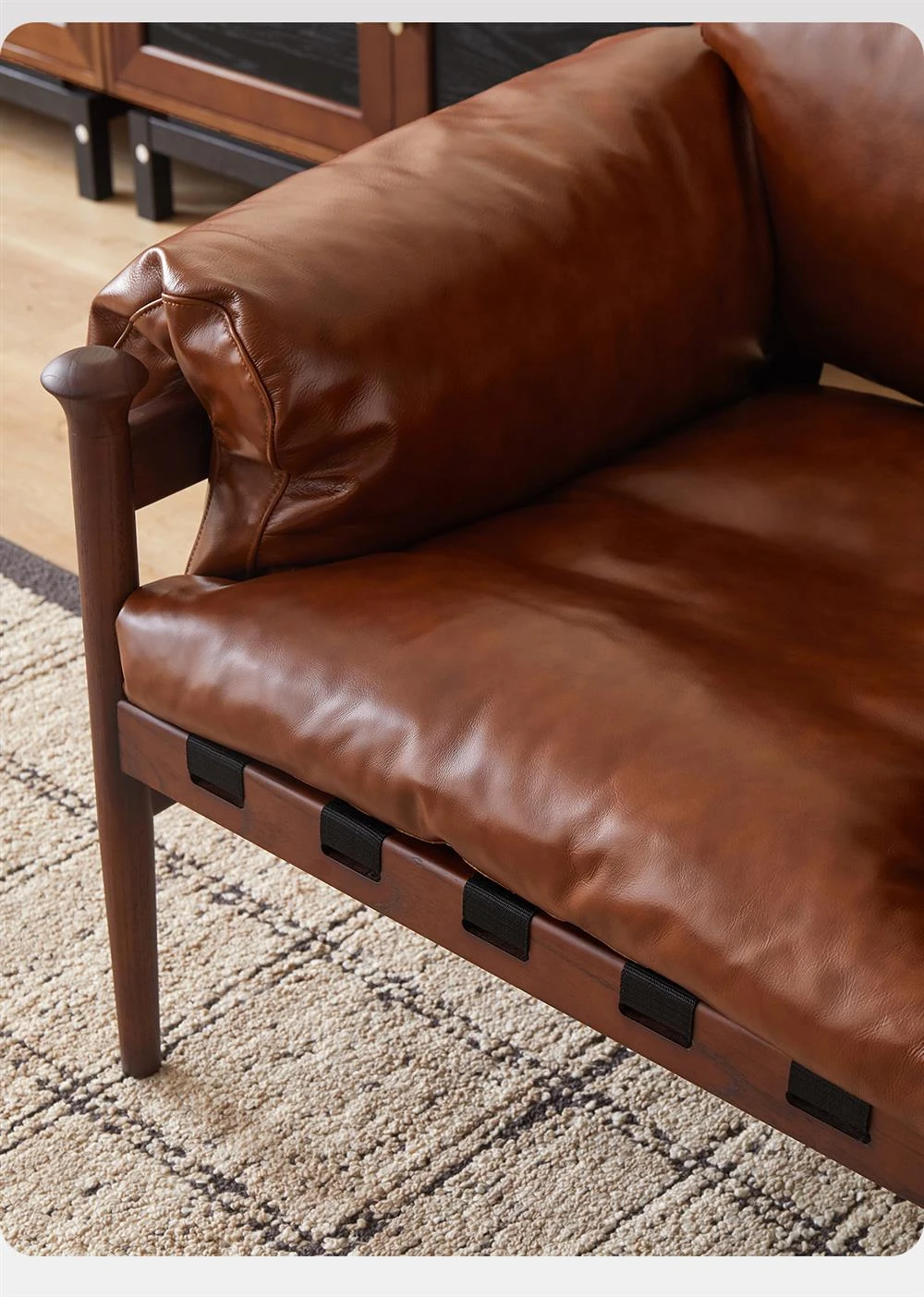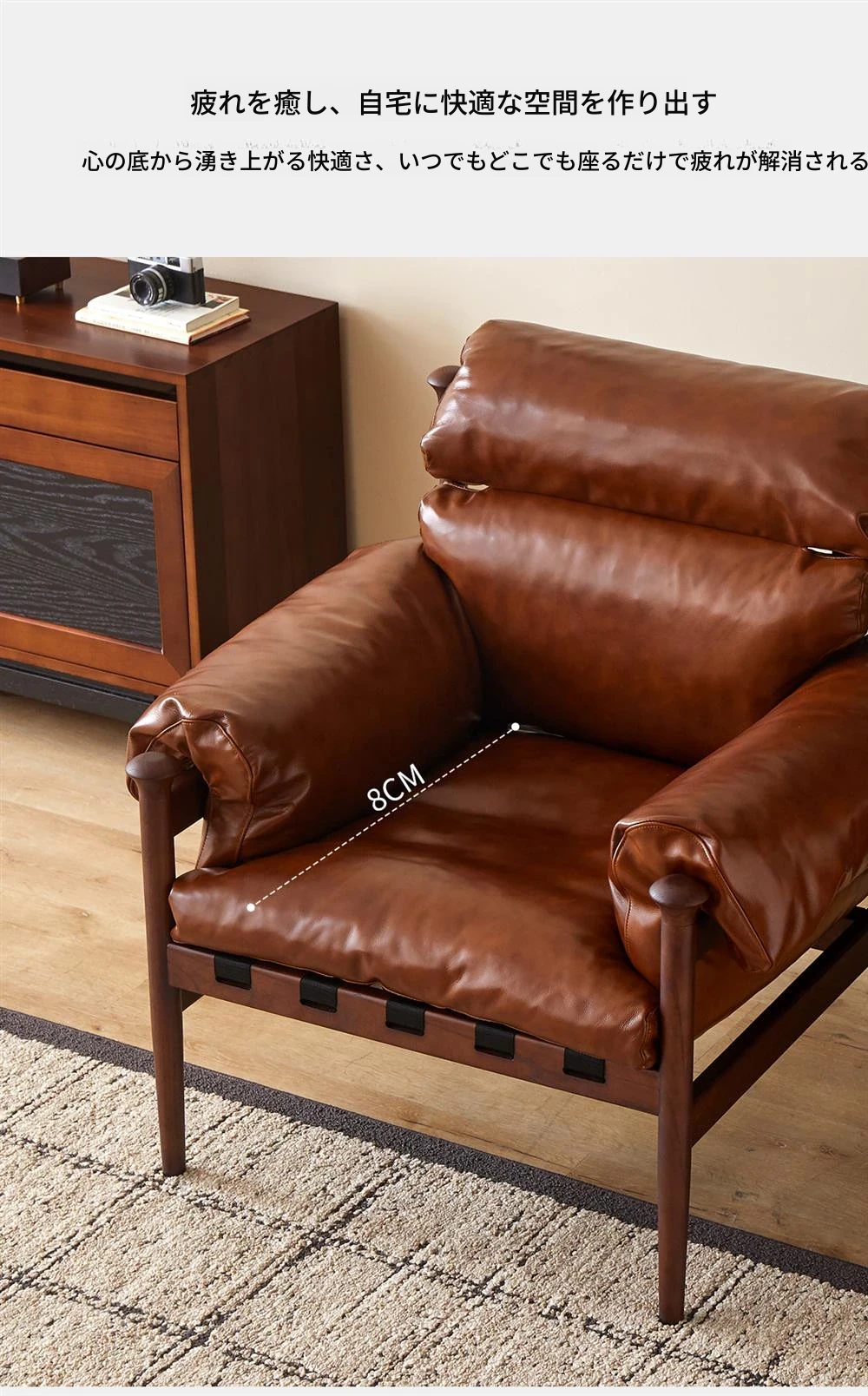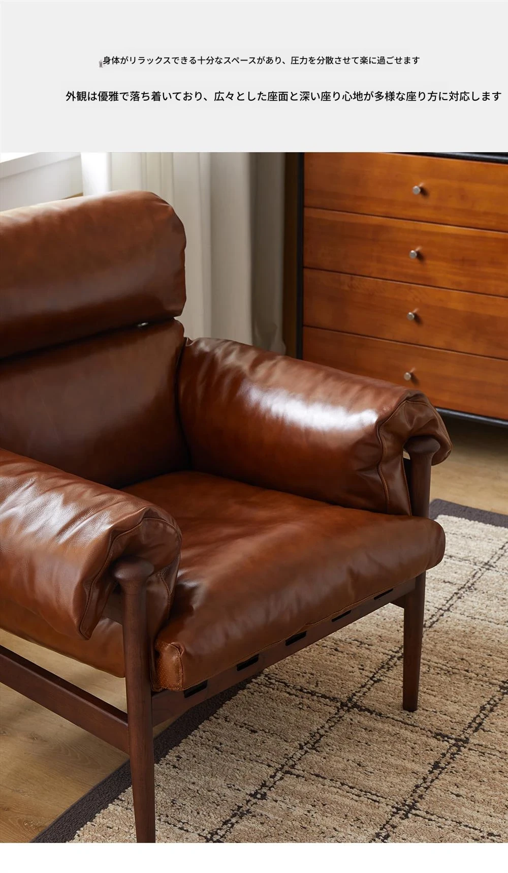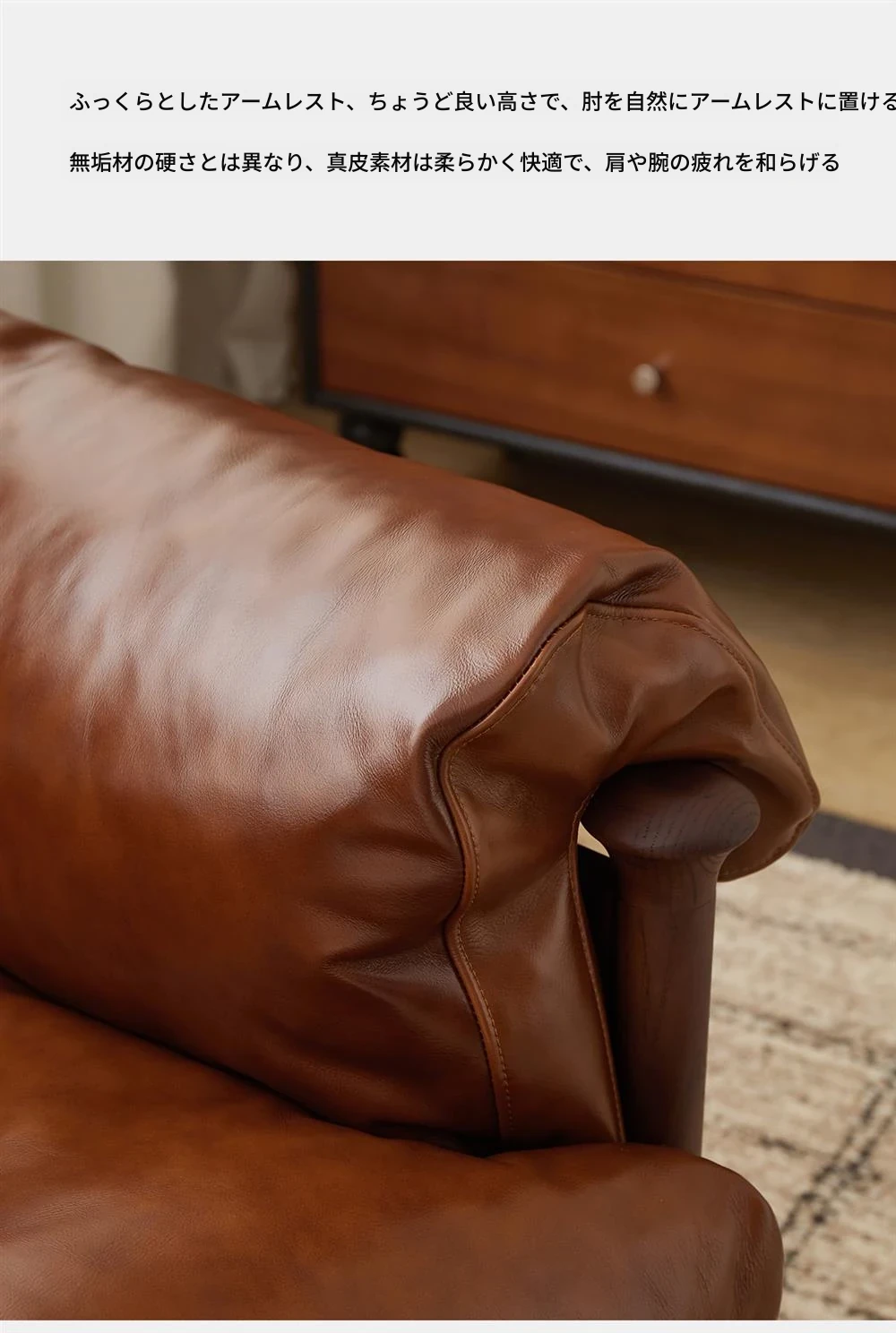 フレンチビンテージ一人掛けソファチェア|小さなリビングに最適な高級本革アートチェア|木製フレームで軽やかな贅沢感を演出!