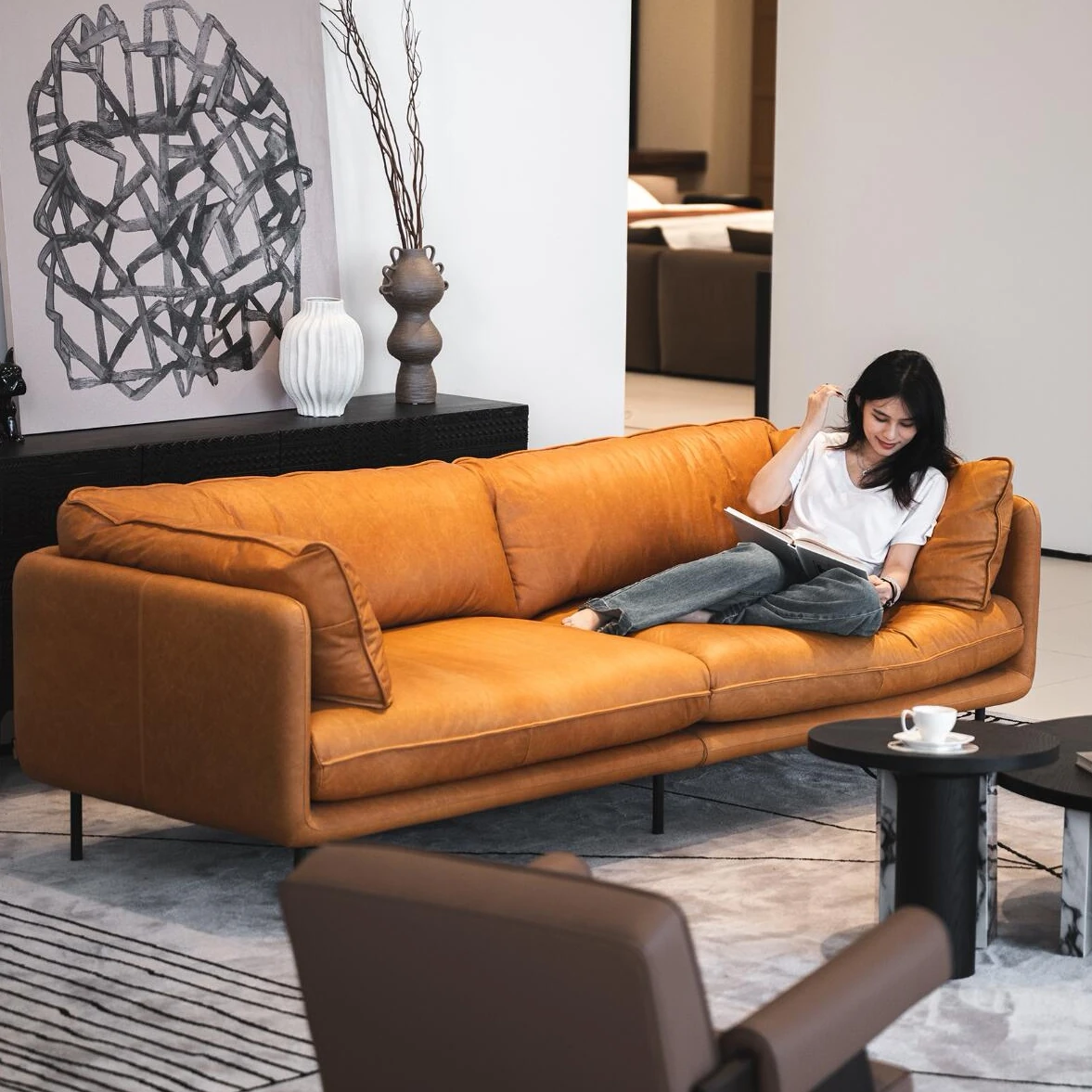 Prem 86.61in*39.37in*31.50in-Import full leather [For Home luxury]]