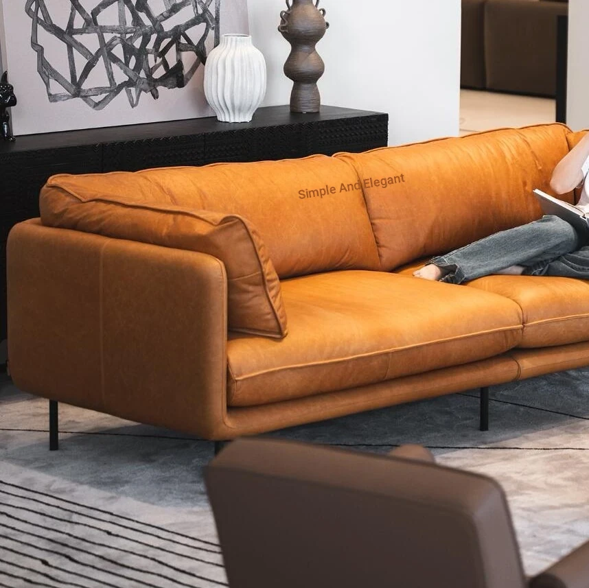 French Vintage Waxed Leather Embrace Sofa - Designer Three-Seat for Living Rooms and Small Spaces, Perfect for Villas and Modern Homes