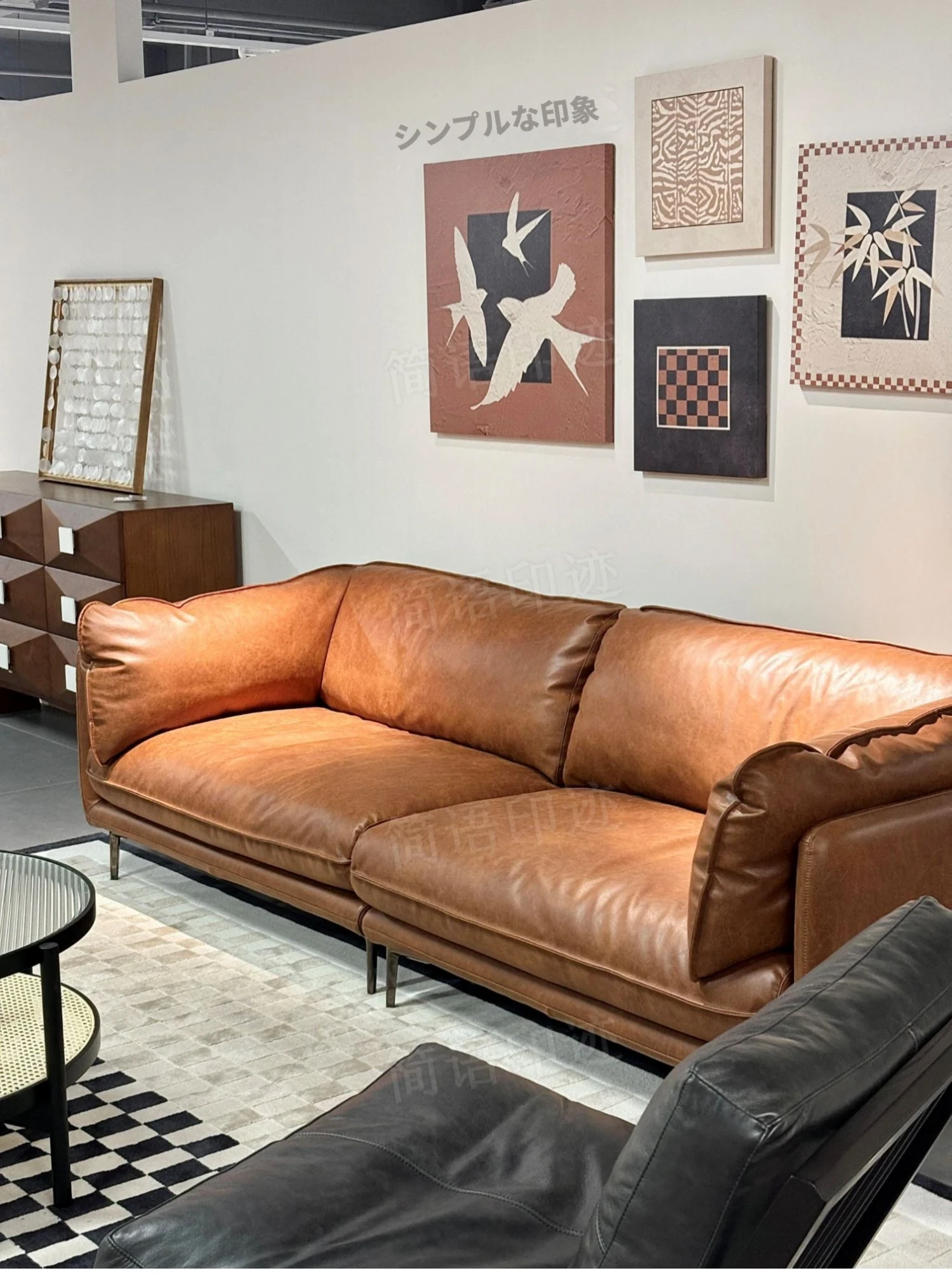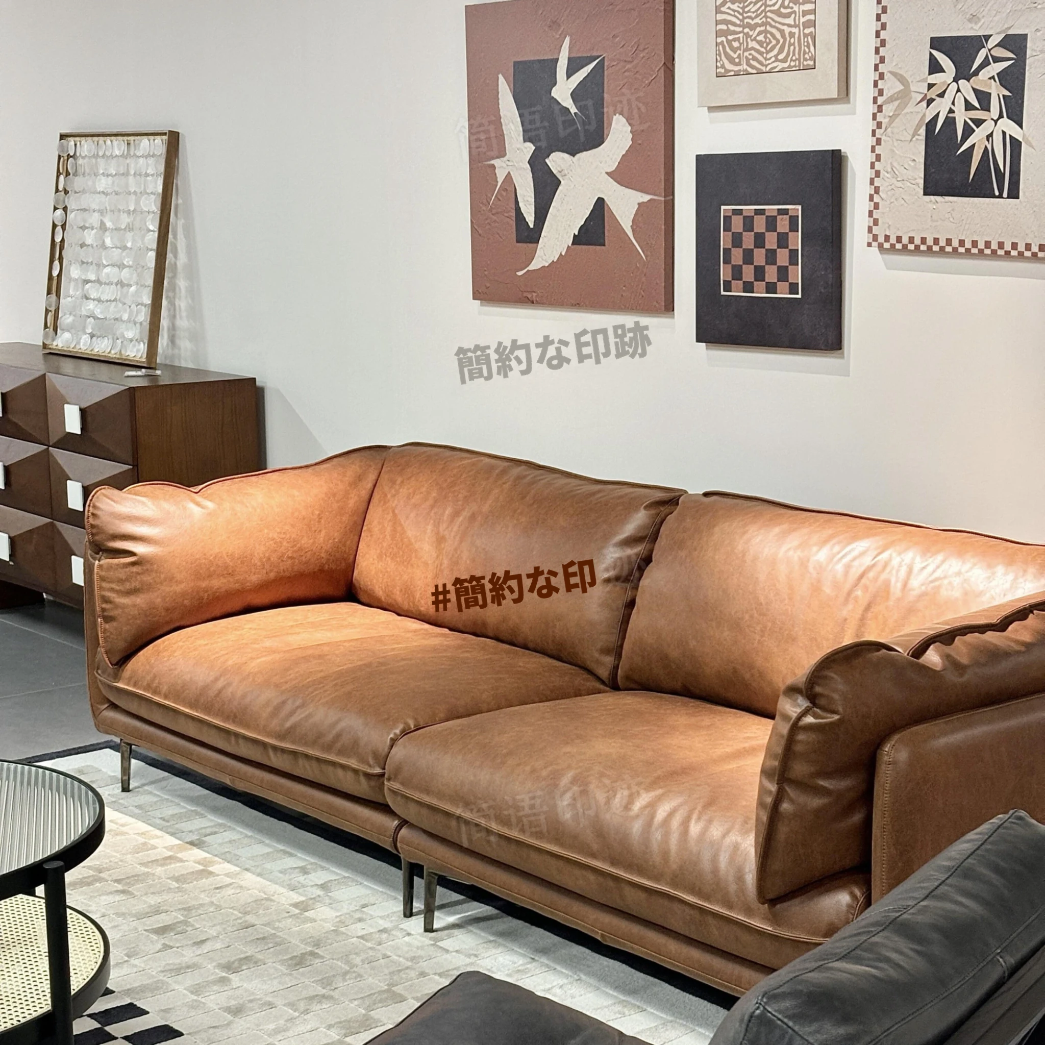 フランス風レトロオイルワックスレザー抱きソファ|小型リビングに最適なデザイン性抜群の3人掛けソファ|別荘やおしゃれなインテリアにぴったり!