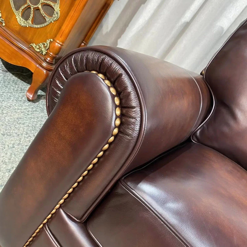 本革使用!手作仕上げの高級ダウンリクライナー、レトロなバートンスタイルのシガールームにぴったり。最高級の牛革を使用した、贅沢な座り心地をお楽しみください。