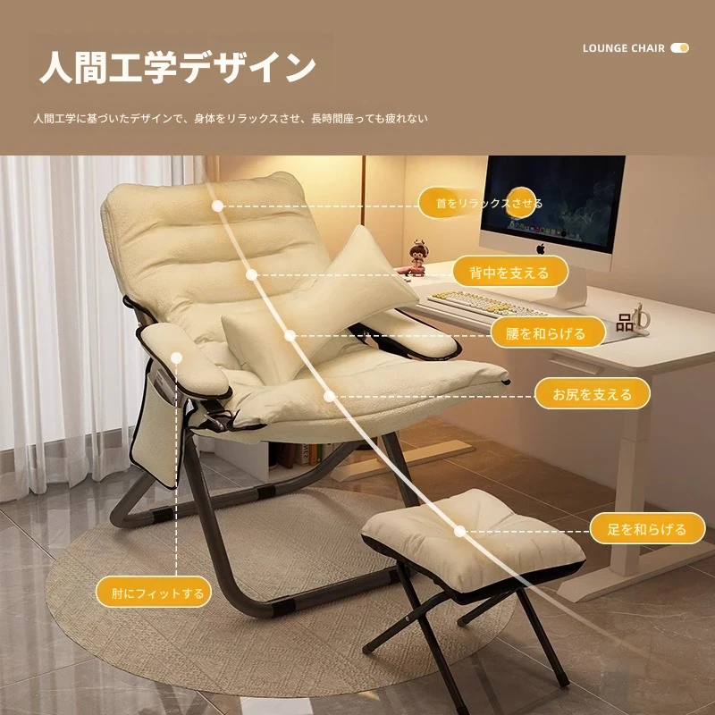スタンダードチェア+オットマン+アイボリー⭐【ポータブル収納バッグ付き】【3段階調整】
