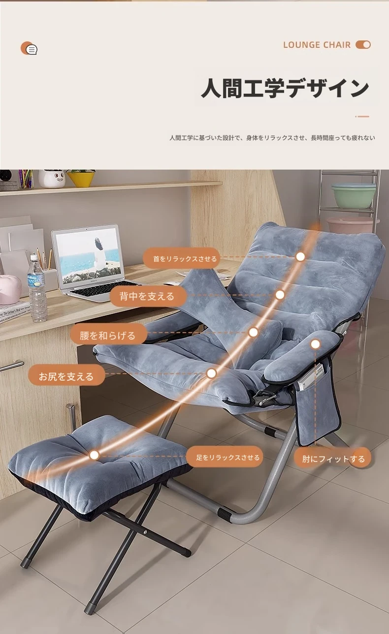ドイツ製ENF折りたたみリクライニングチェア - 快適な家庭用、寝室やバルコニーにぴったりのリラックスソファ!一人用で、ゆったりとした背もたれで至福のひとときをお楽しみください。