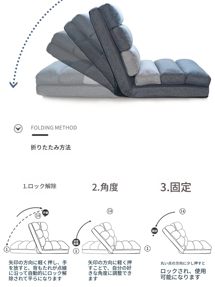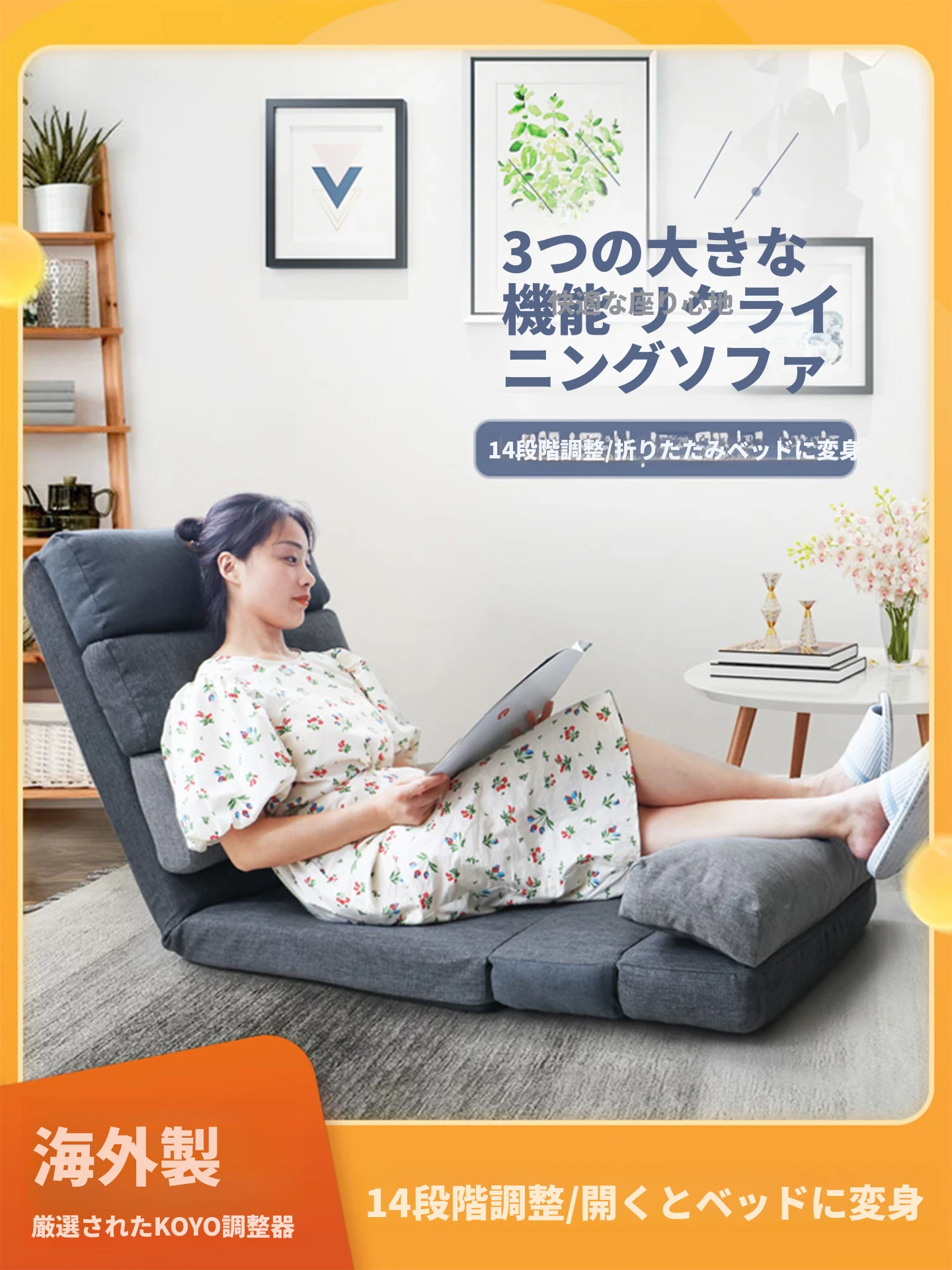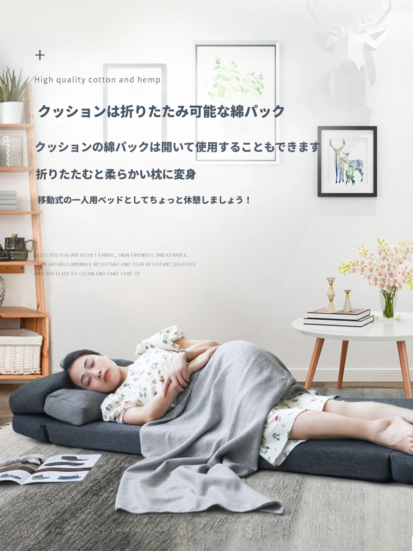 【新登場】リラックスできる一人用ソファ!畳スタイルのフロアチェアで、読書や昼寝に最適。折りたたみ式で、寝ることもできる多機能デザイン。あなたのくつろぎタイムをさらに特別に!