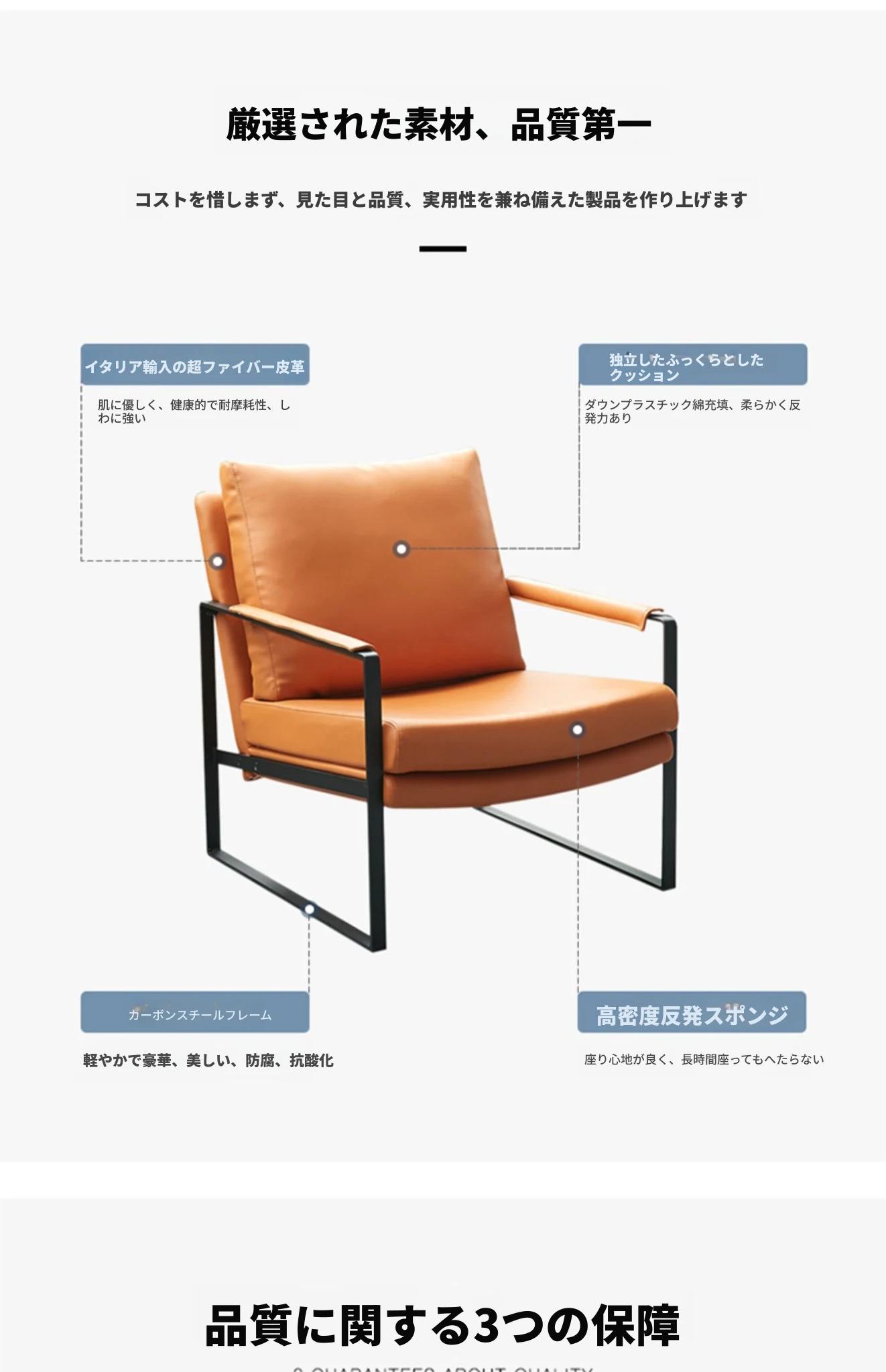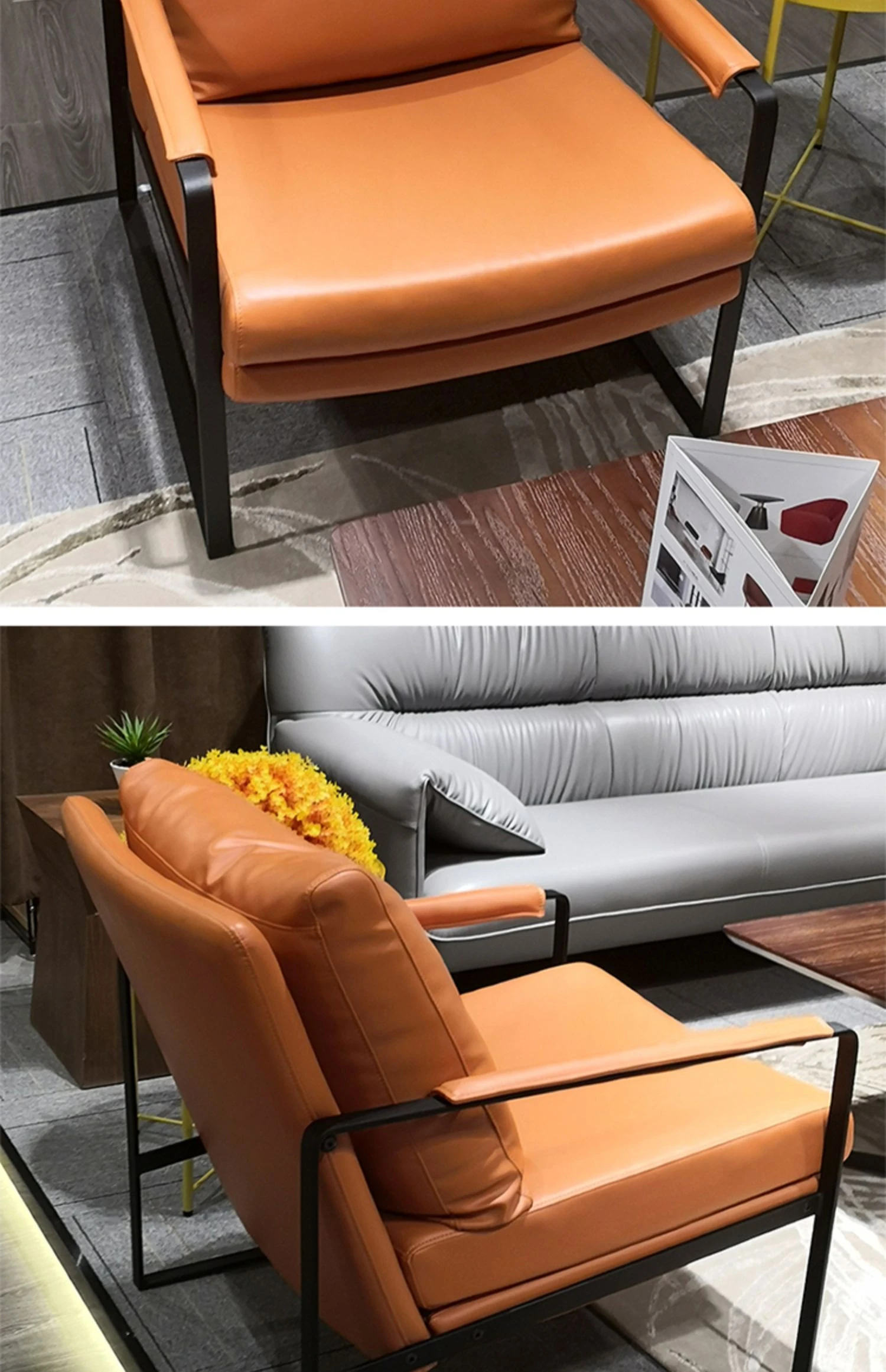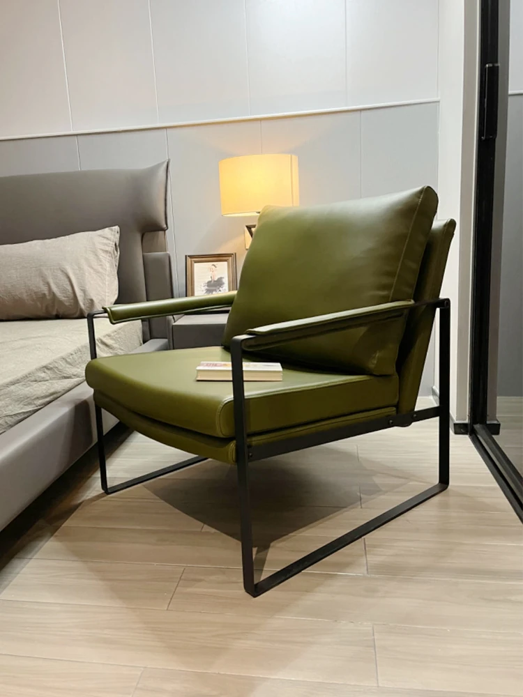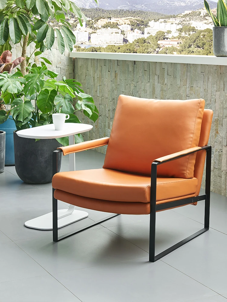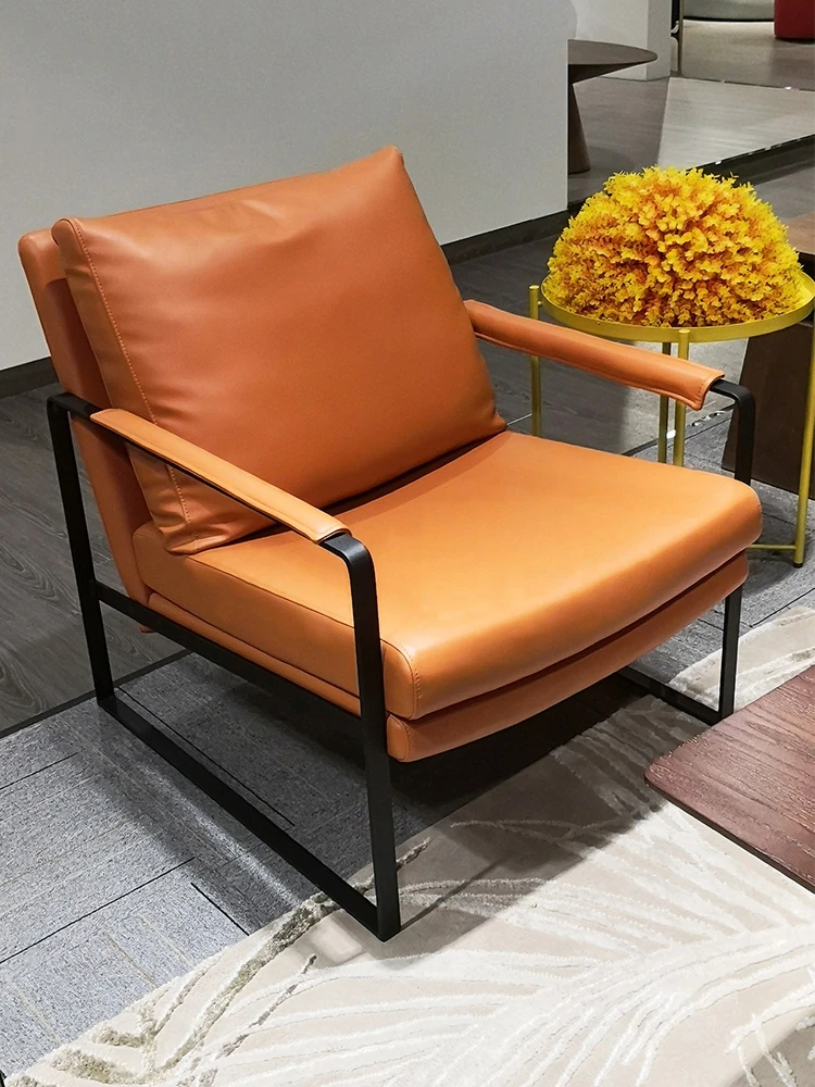 一人掛けソファチェア 本革 イタリアンデザイン 小型リビング・バルコニー用 おしゃれなリラックスチェア 家庭用 軽奢華トラチェアで、スタイリッシュな空間を演出!