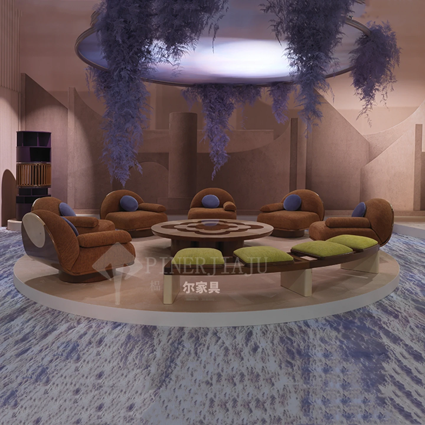 イタリアンラグジュアリーな雰囲気のホテル・クラブ用接客ソファ。ヴィラや広々としたリビングに最適な高級無垢材製の椅子で、洗練されたデザインが魅力です。お客様を心地よくお迎えするための最適な選択肢です。