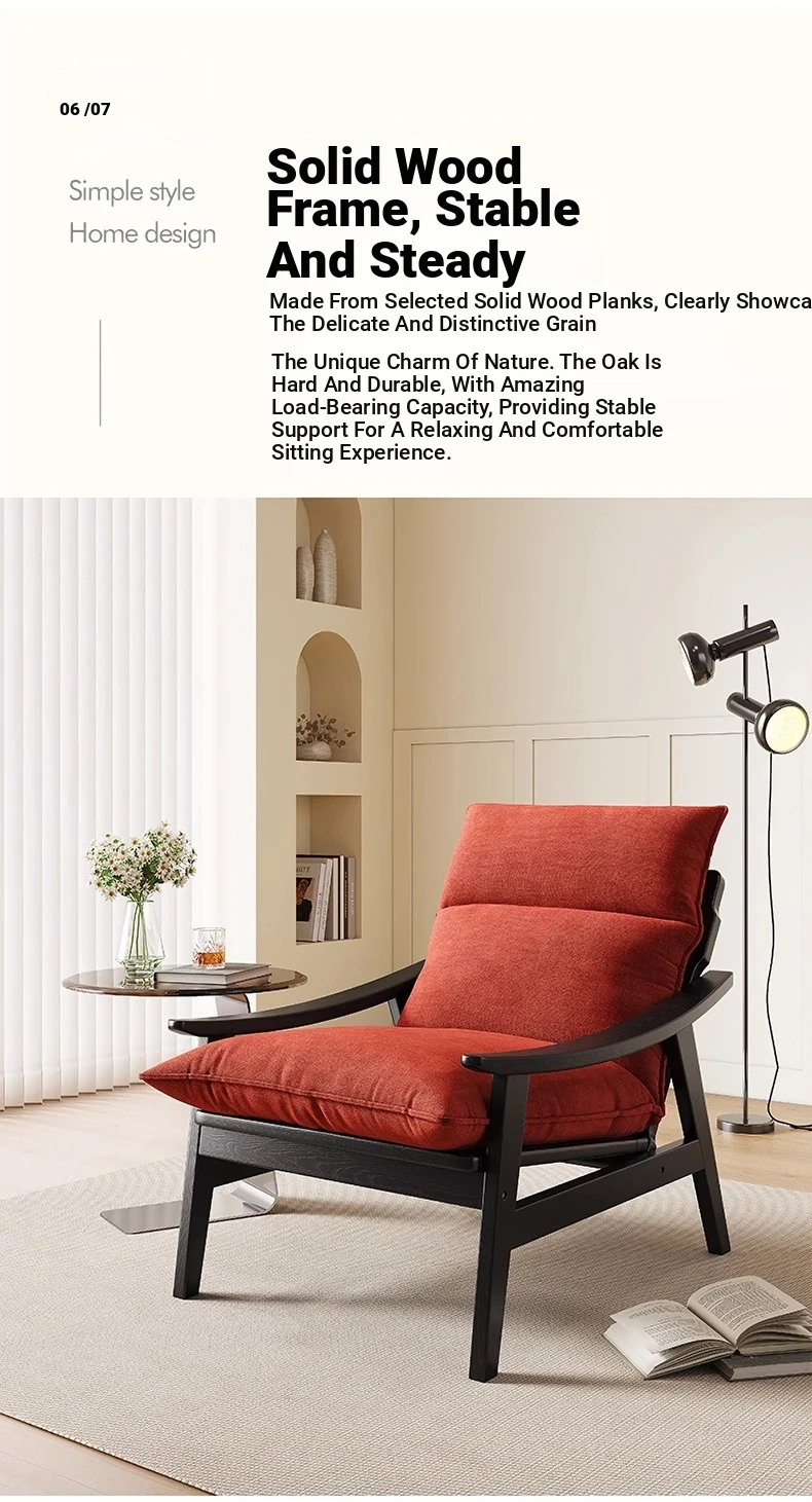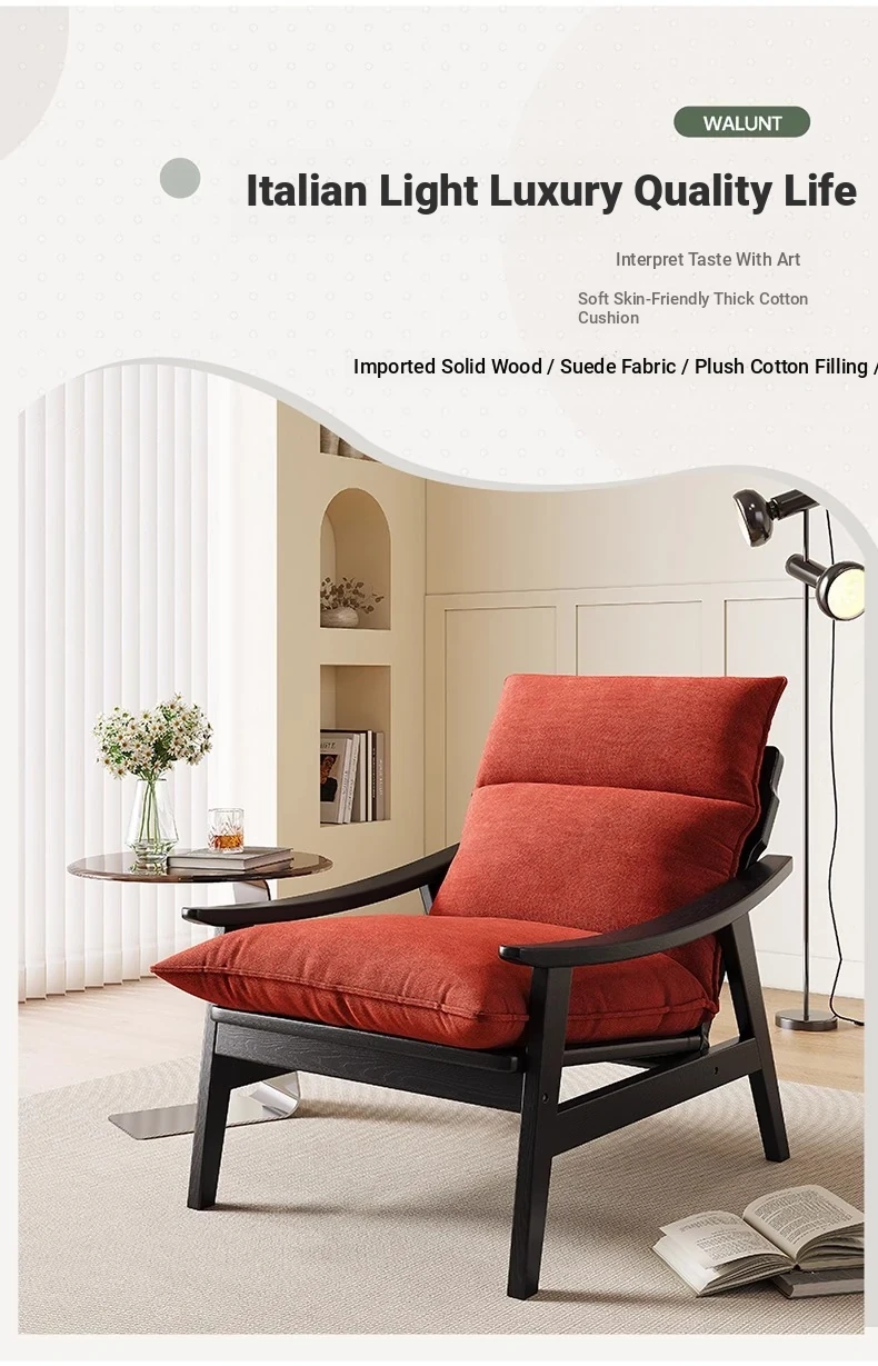 Italian Minimalist Designer Armchair - Stylish and Comfortable Single Sofa Chair for Home, Living Room, and Balcony - Soft Upholstered Seat with Solid Wood Frame, Perfect for Relaxation and Modern Decor