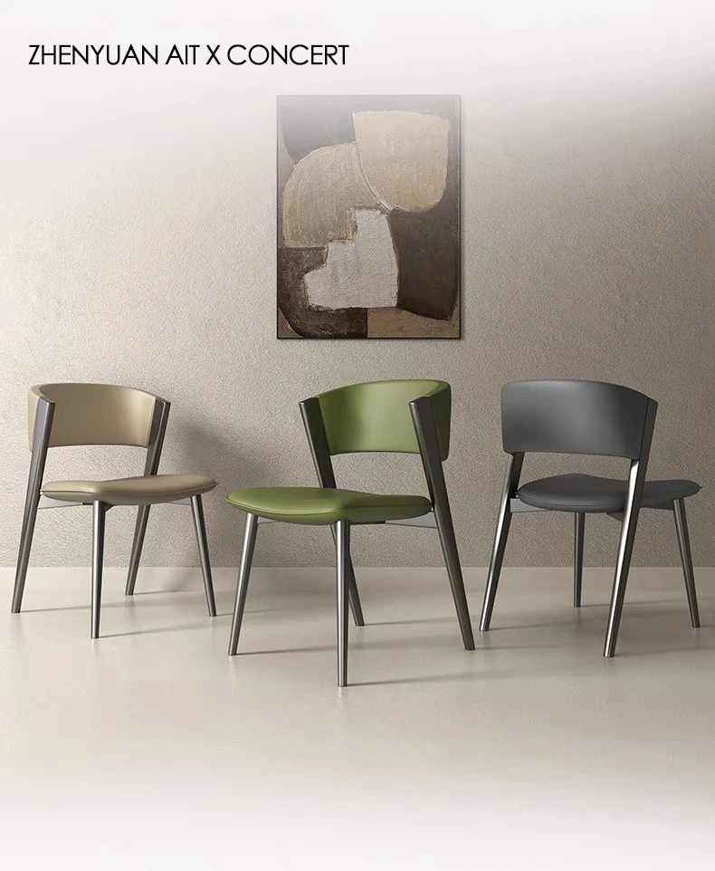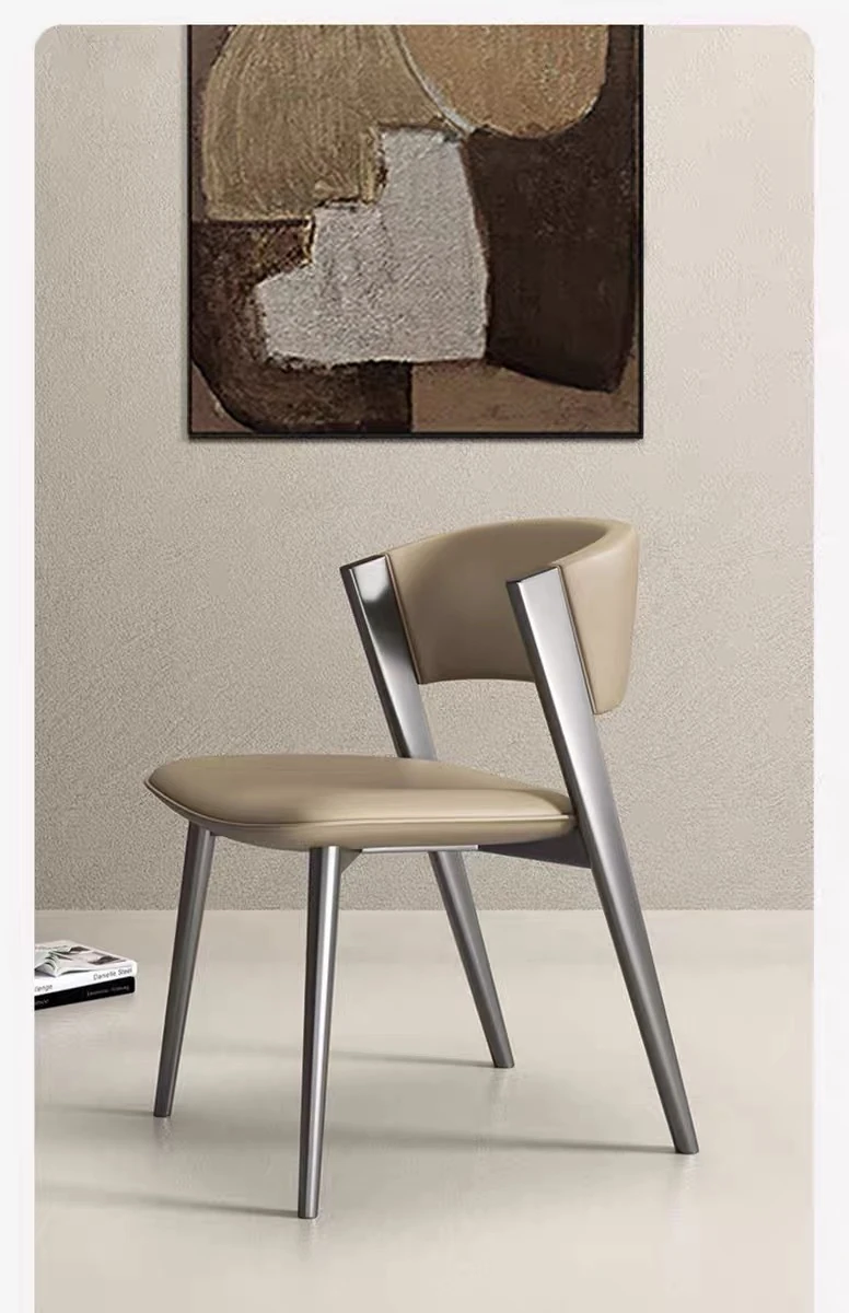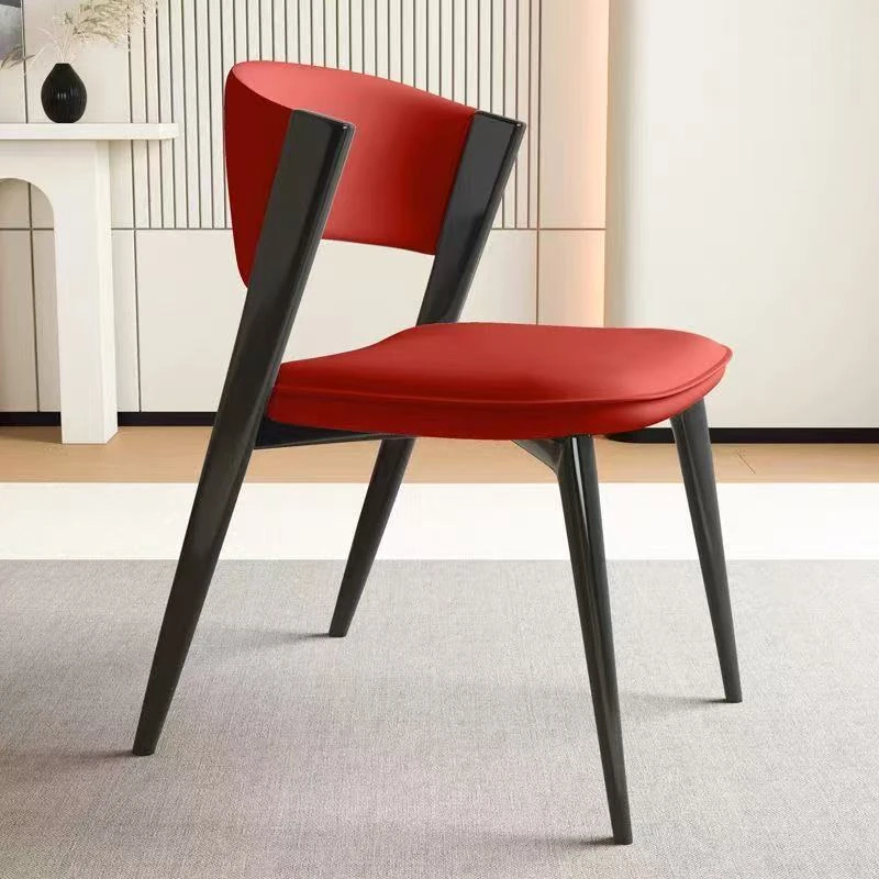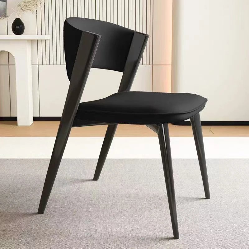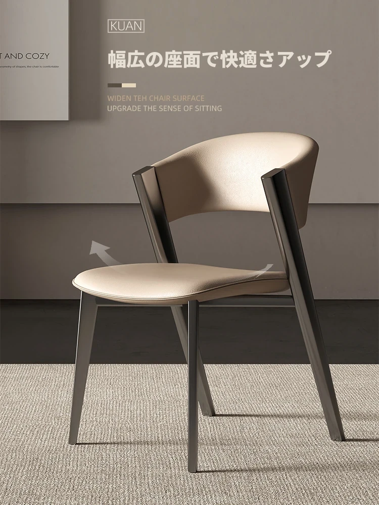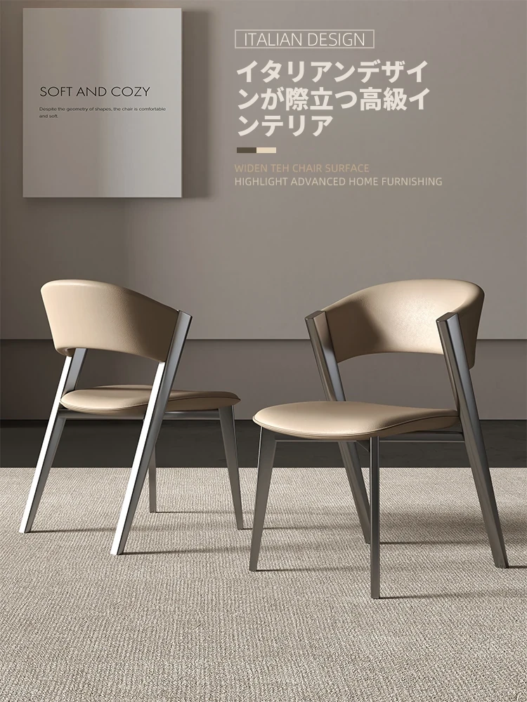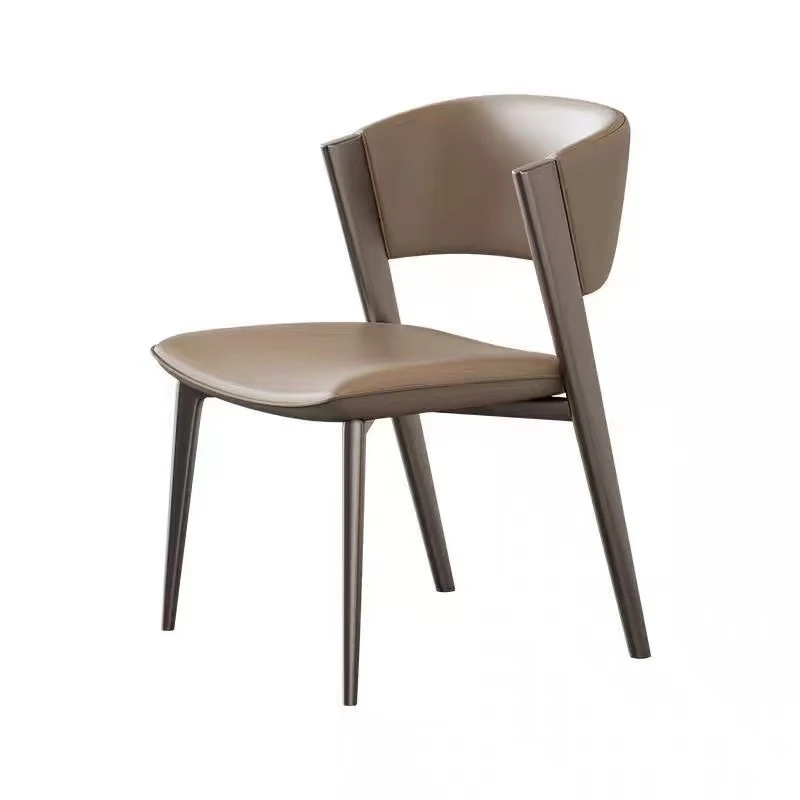 イタリアンミニマルデザインの高級レザー食卓椅子 - 小スペースに最適!シンプルでスタイリッシュな背もたれ付き、2025年の新作。家庭用やレストランにぴったりな一品!
