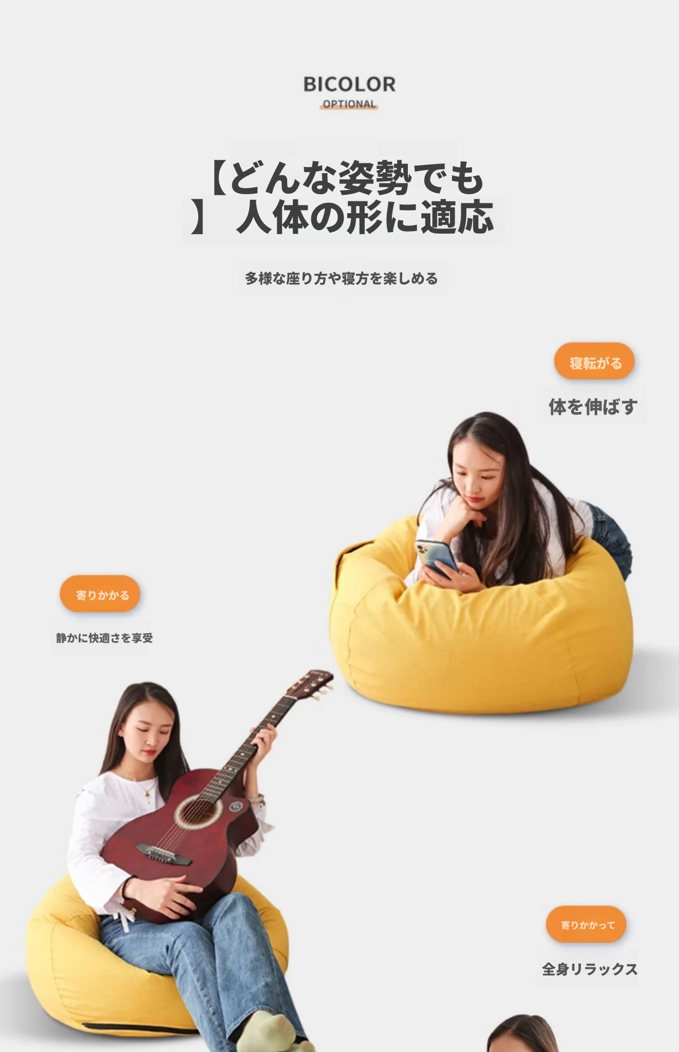 日本直輸入 無印良品のリラックスソファー!寝ても座ってもOKな豆袋タイプ、畳スタイルで小さな部屋やバルコニーにもぴったりの快適な休憩スペースを実現!