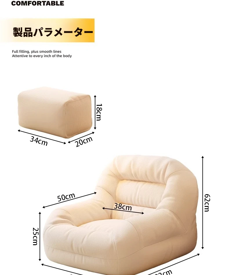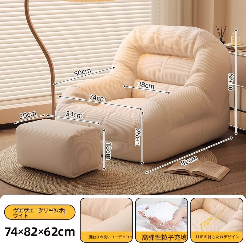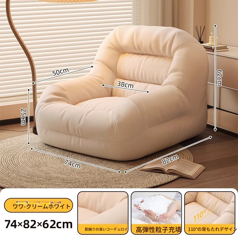 白色+脚踏【コーデュロイ】長時間座ってもへたらない