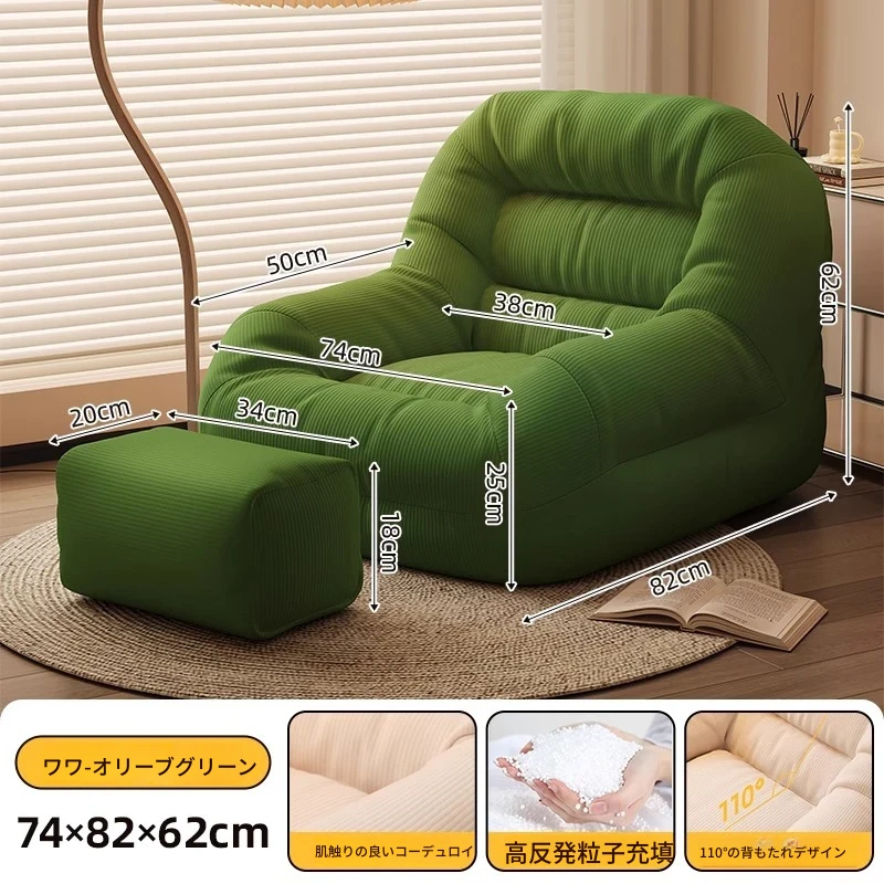 緑色+脚踏【コーデュロイ】長時間座ってもへたらない
