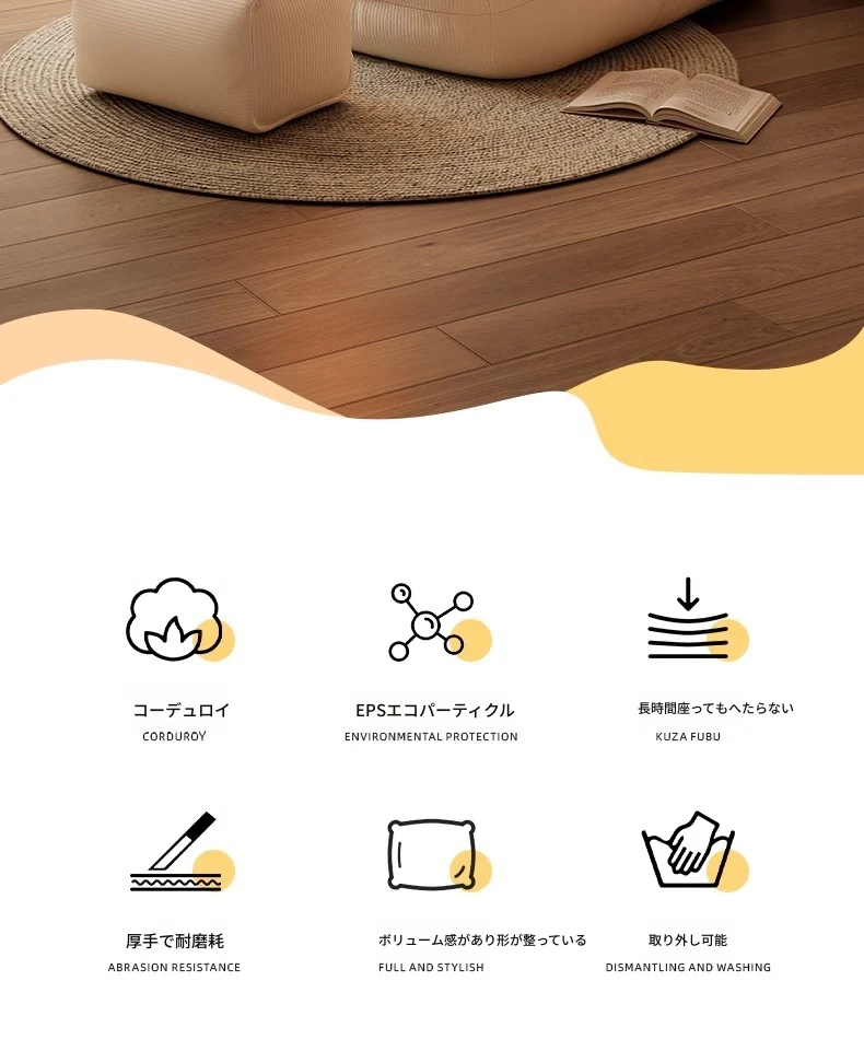 日本MUJ無印良品のリラックスソファ!寝られてくつろげる一人用小型ソファ、畳スタイル。人間も犬も大満足の豆袋ソファで、心地よいひとときをお楽しみください!