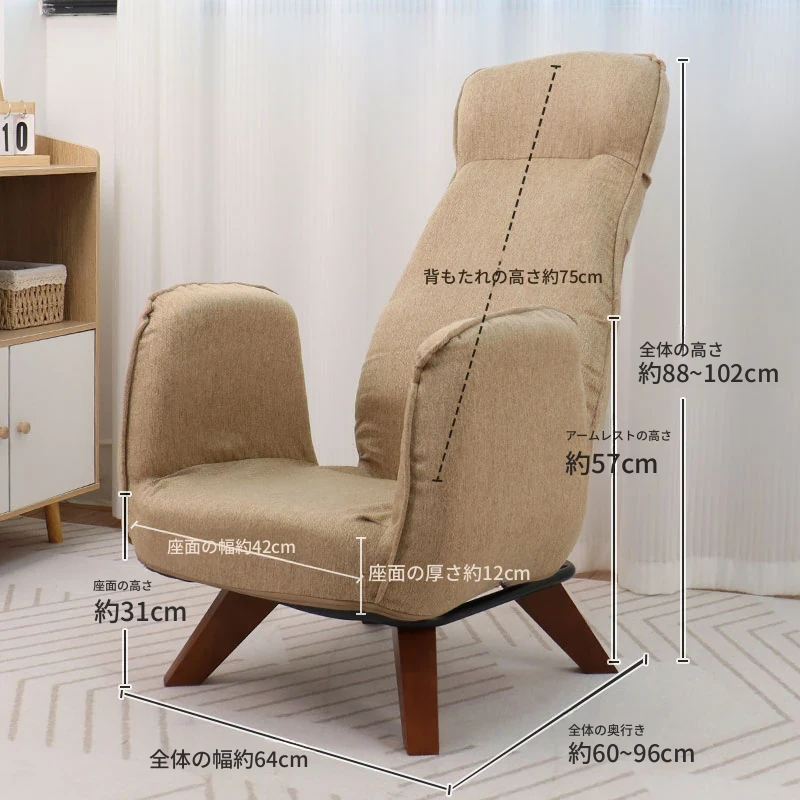 浅カフェ色(アップグレード高脚LRT) 座高約40cm