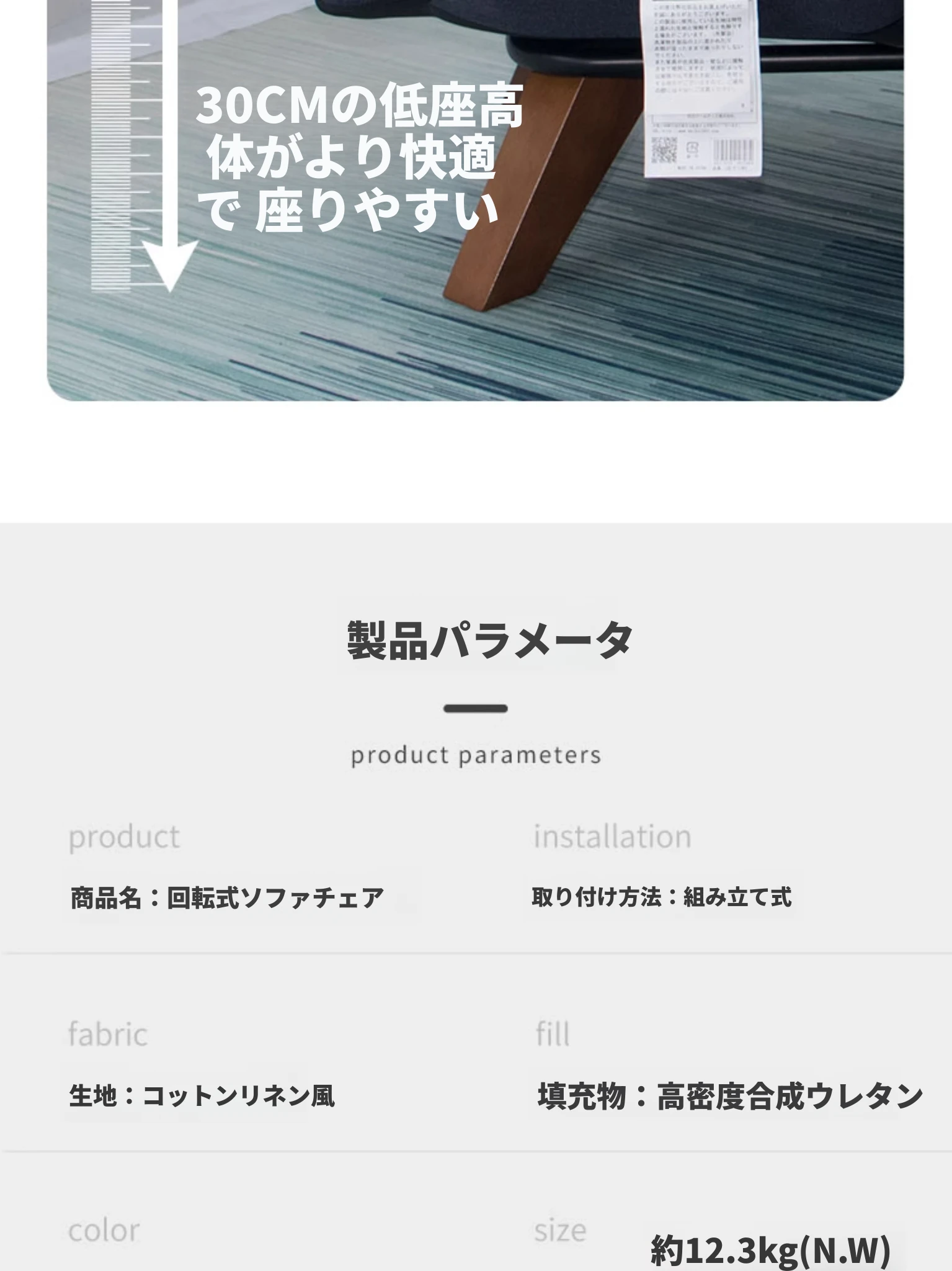 和風回転チェアー!リラックスできる一人用ソファー、バルコニーやリビング、寝室に最適。読書やくつろぎの時間をおしゃれに演出するコンパクトなデザイン。あなたの空間にぴったりのリラックス空間を作ります!